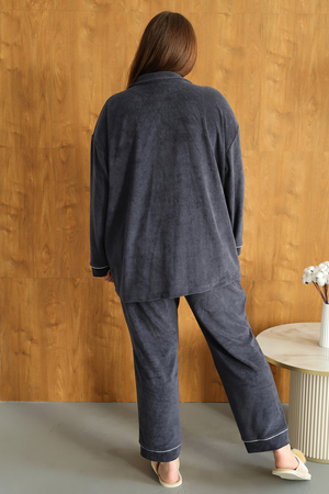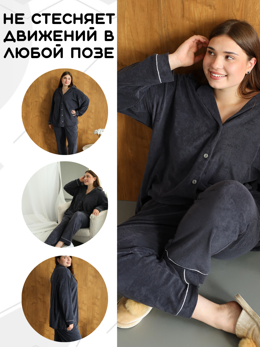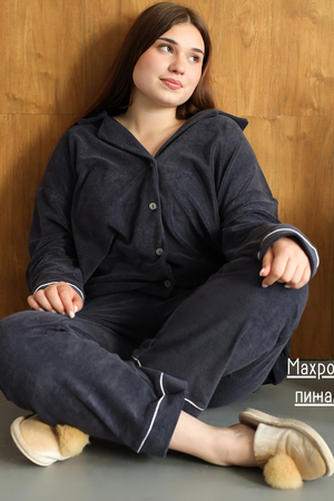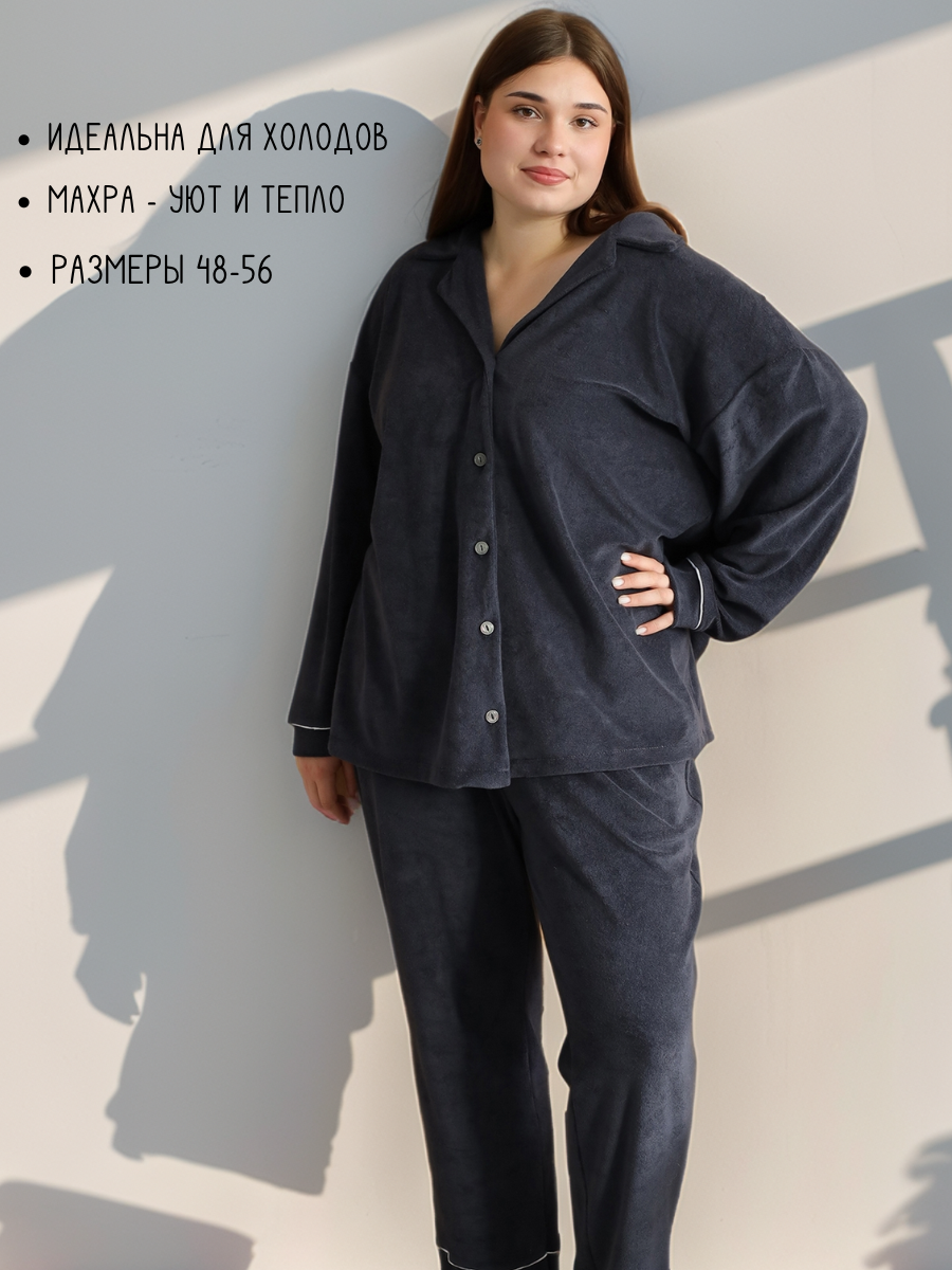 Модель: Теплая махровая пижама с брюками однотонная 48-56
