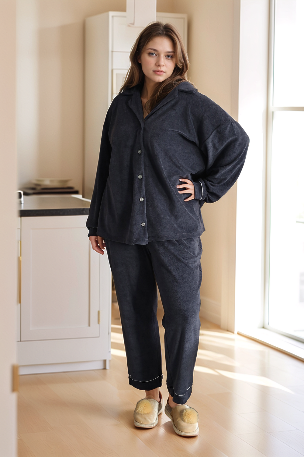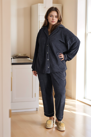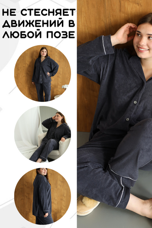 Представляем вам невероятно уютную и теплую пижаму, созданную для комфортного отдыха дома. Эта пижама женская со штанами станет вашим любимым нарядом в прохладные вечера. Мягкая махровая ткань из хлопка с добавлением полиэстера подарит вам приятные тактильные ощущения, а свободный крой позволит чувствовать себя комфортно даже в течение всего дня. Теплая пижама больших размеров идеально подойдет для женщин, которые ценят уют и комфорт.