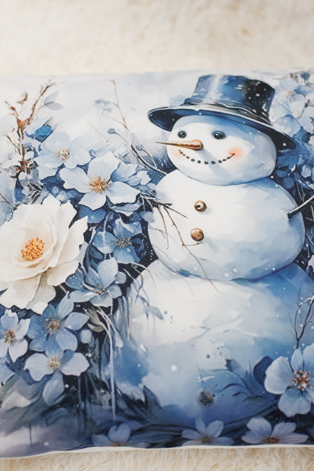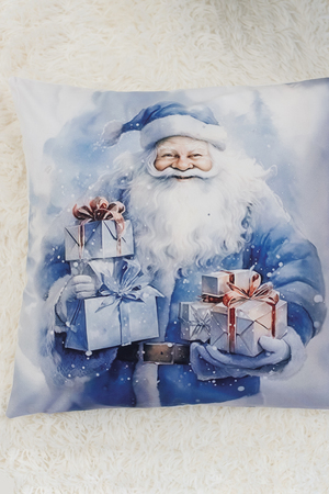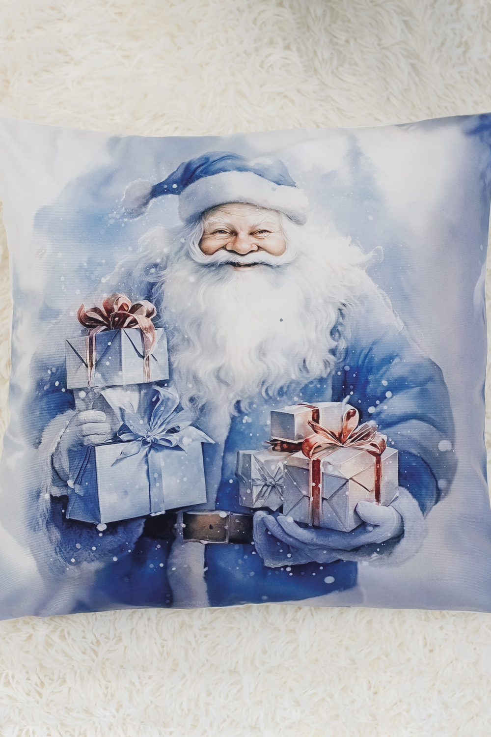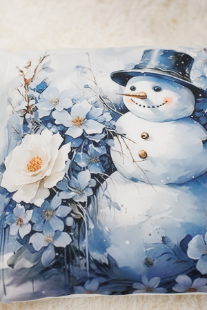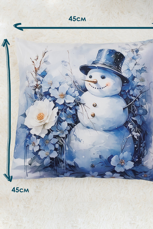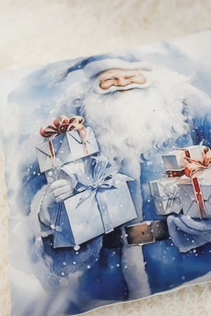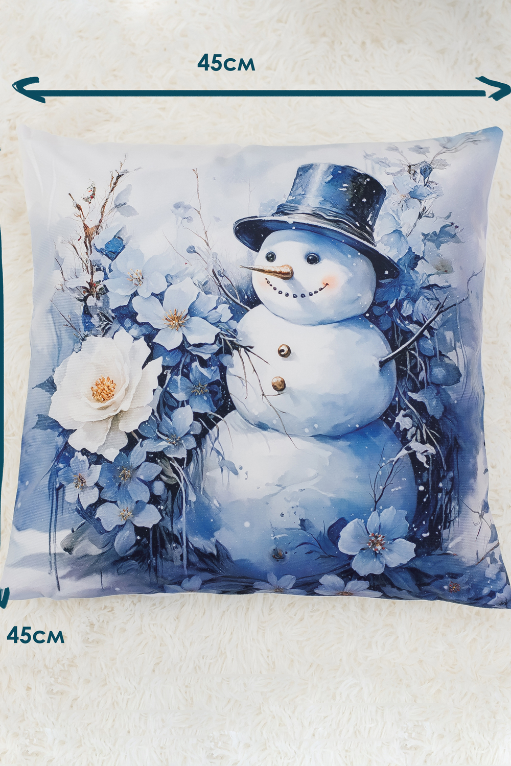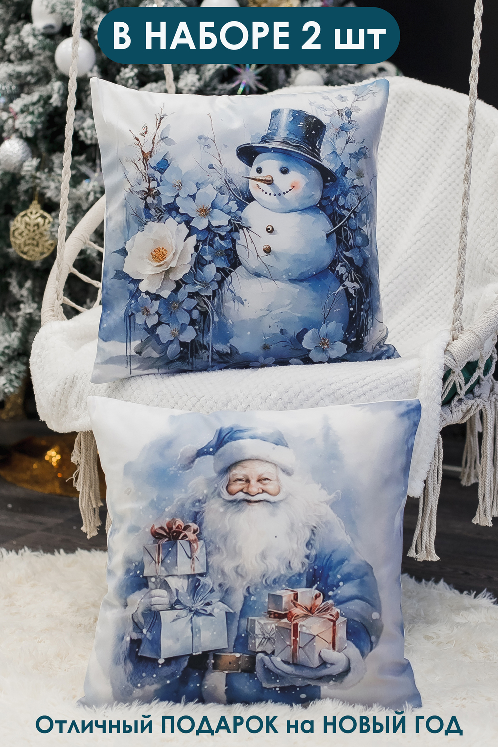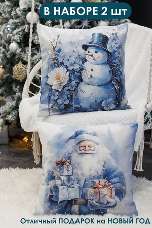 Наволочка декоративная Дед мороз и снеговик синий 2 шт велюр
