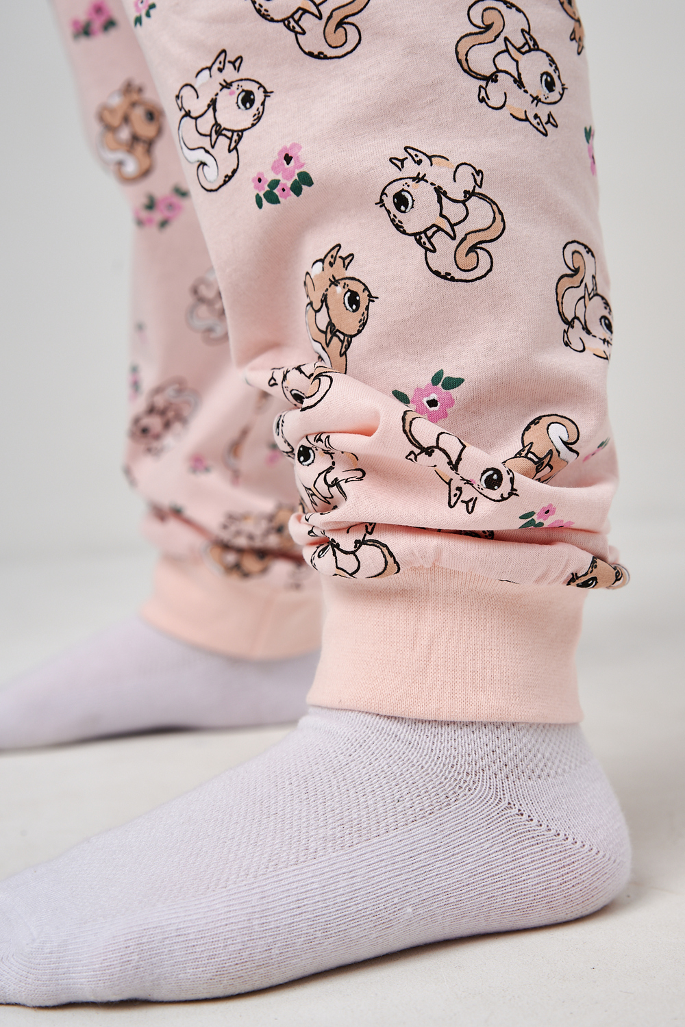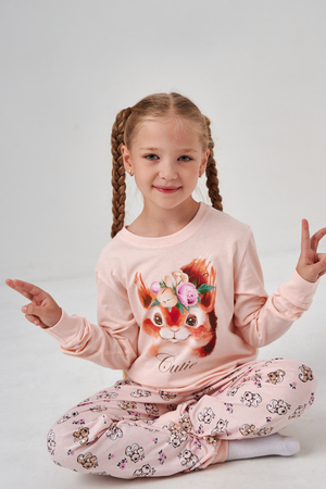 Пижама для девочки подростка со штанами и кофтой из трикотажа будет идеальным выбором для дома и детского сада. Резинка не вшита, поэтому ее можно убавить. Манжеты на пижаме смогут отрегулировать длину кофты и брюк.