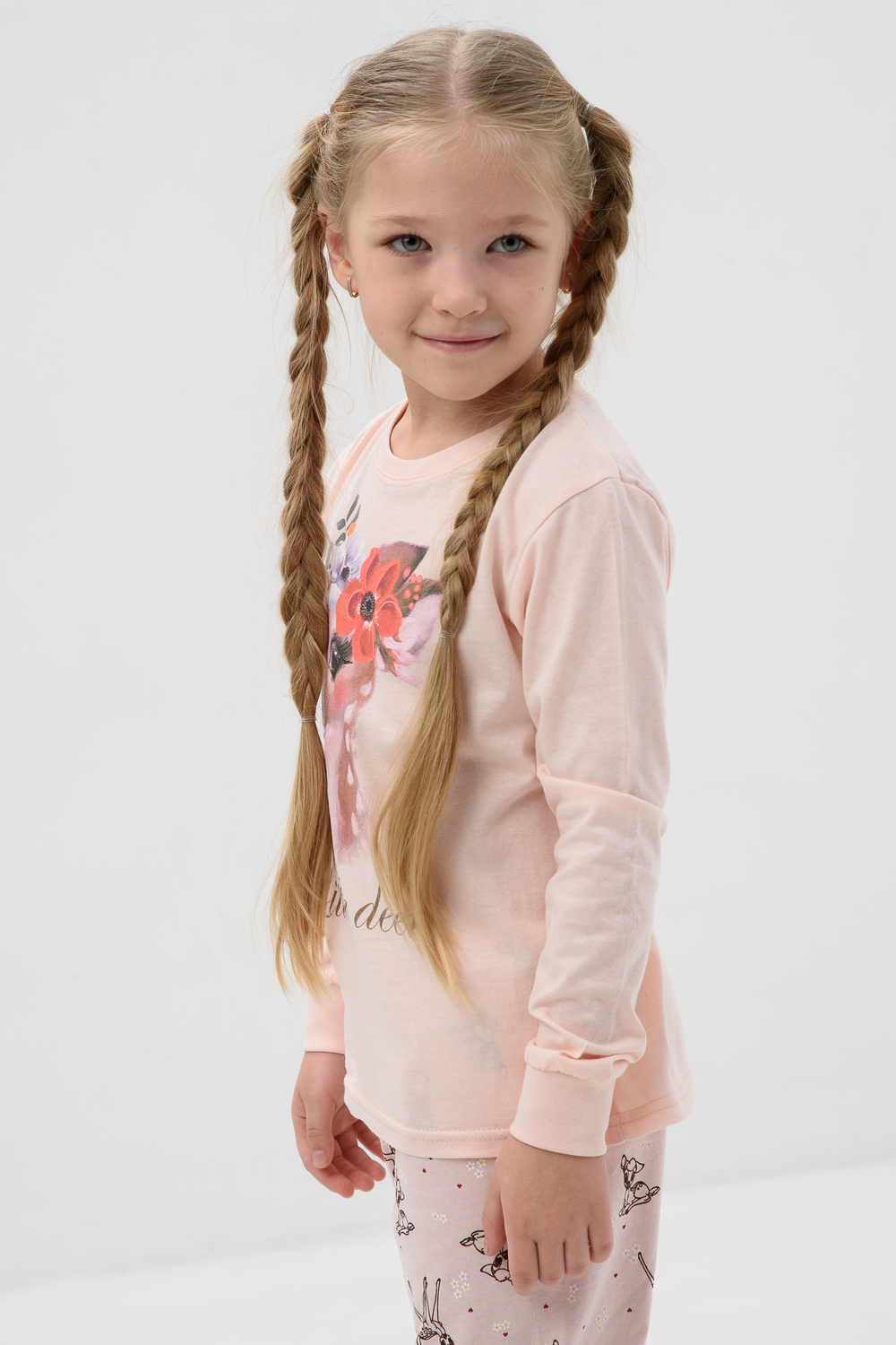 Пижама с брюками для девочки Кулирка с рибаной длинный рукав