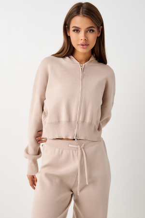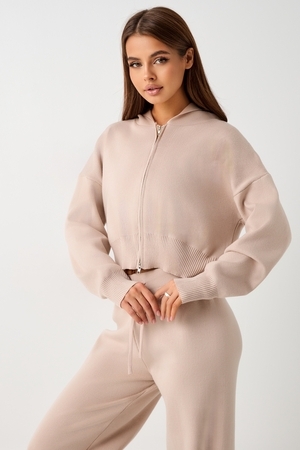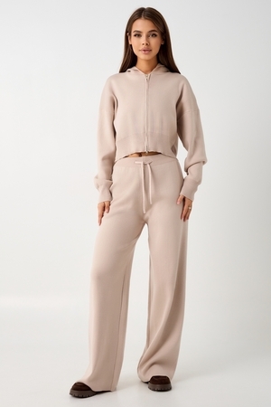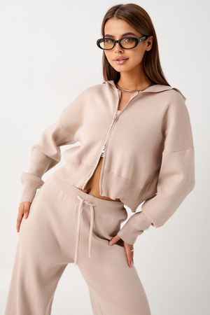 Вязаный костюм станет незаменимой основой женского гардероба для прохладной погоды, комфортным способом утепления. Он сшит из мягкой, приятной к телу пряжи с шерстяными волокнами, которая надолго сохраняет насыщенность цвета и свою форму, выдерживая интенсивное ношение и частые стирки. Стильный дизайнерский комплект отличается продуманным дизайном: кофточка - оверсайз со спущенным плечом, V-образным вырезом горловины и отложным воротником обеспечивает комфорт, а брюки - спортивки с широким поясом - резинкой, длинными штанинами с манжетами и удобными карманами подчеркивают силуэт, не сковывая движений. Универсальность классической пастельной палитры и лаконичного дизайна позволяет легко включать комплект в коллекцию вещей для осенне - весеннего демисезонного и зимнего периода. Он идеально сочетается с однотонными вариантами обуви и нарядными праздничными аксессуарами для создания элегантного и собранного образа.