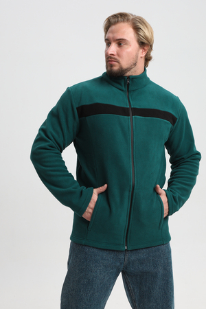 Мужской флисовый джемпер, идеальная посадка и комфорт при активных движениях. Воротник - стойка, два удобных кармана.