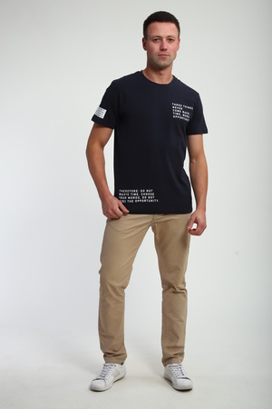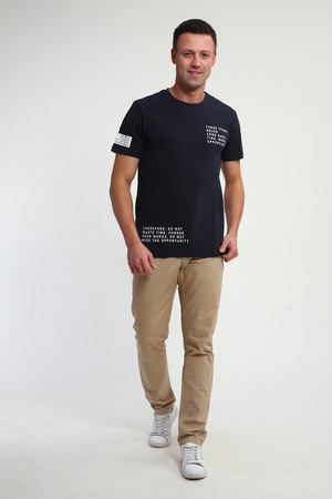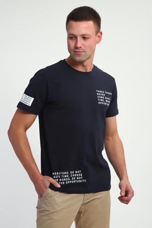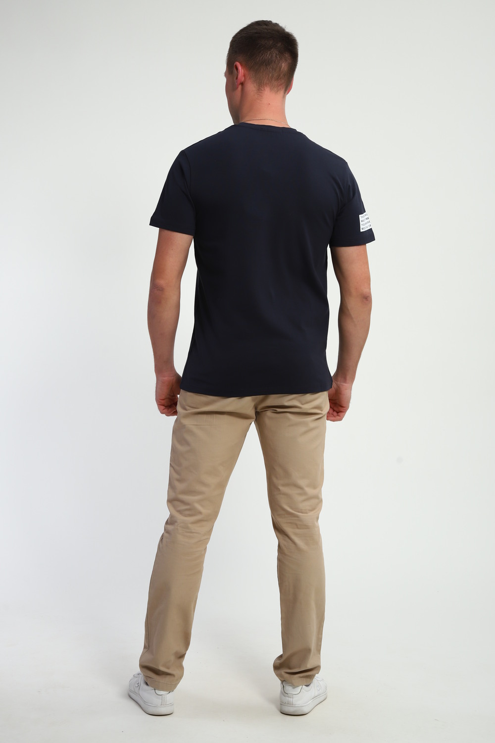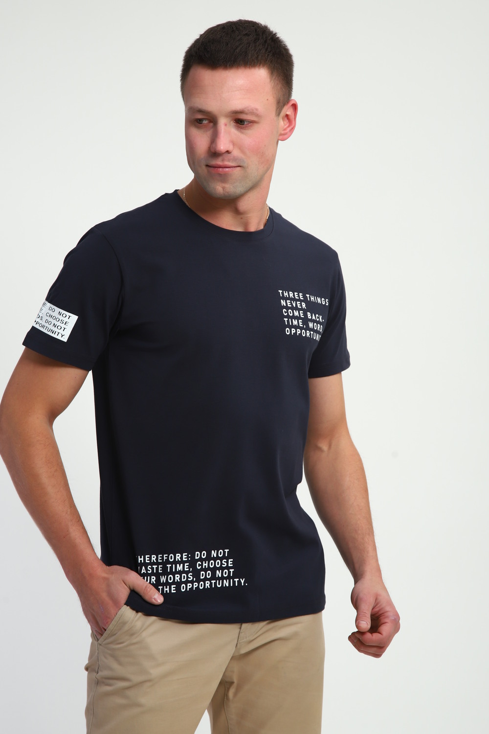Базовая мужская футболка. Оформлена традиционным круглым неглубоким вырезом, с коротким рукавом. На футболке так же присутствует печать. Стильная футболка займет достойное место в вашем гардеробе: просто выберите ваш цвет.