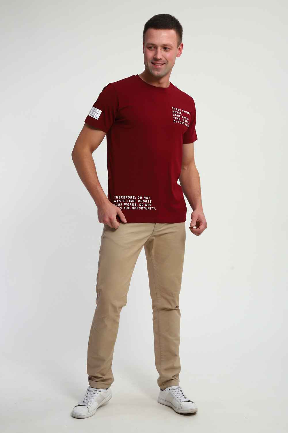 Базовая мужская футболка. Оформлена традиционным круглым неглубоким вырезом, с коротким рукавом. На футболке так же присутствует печать. Стильная футболка займет достойное место в вашем гардеробе: просто выберите ваш цвет.