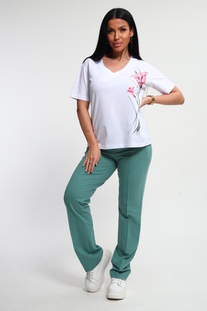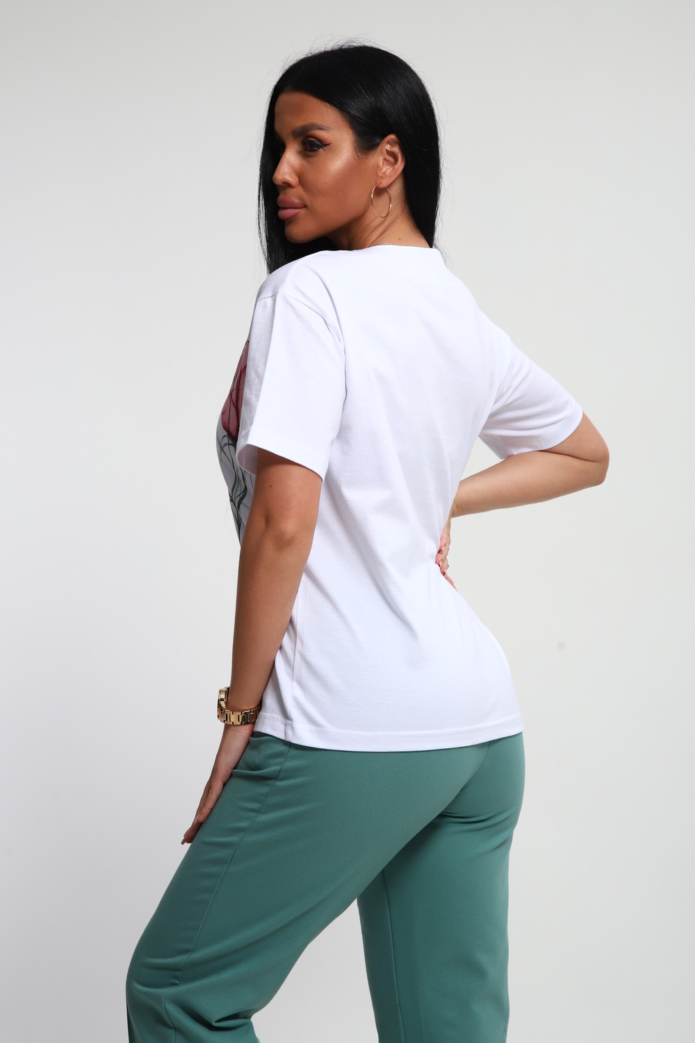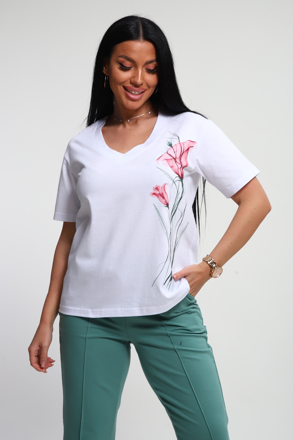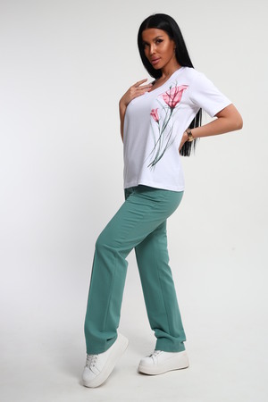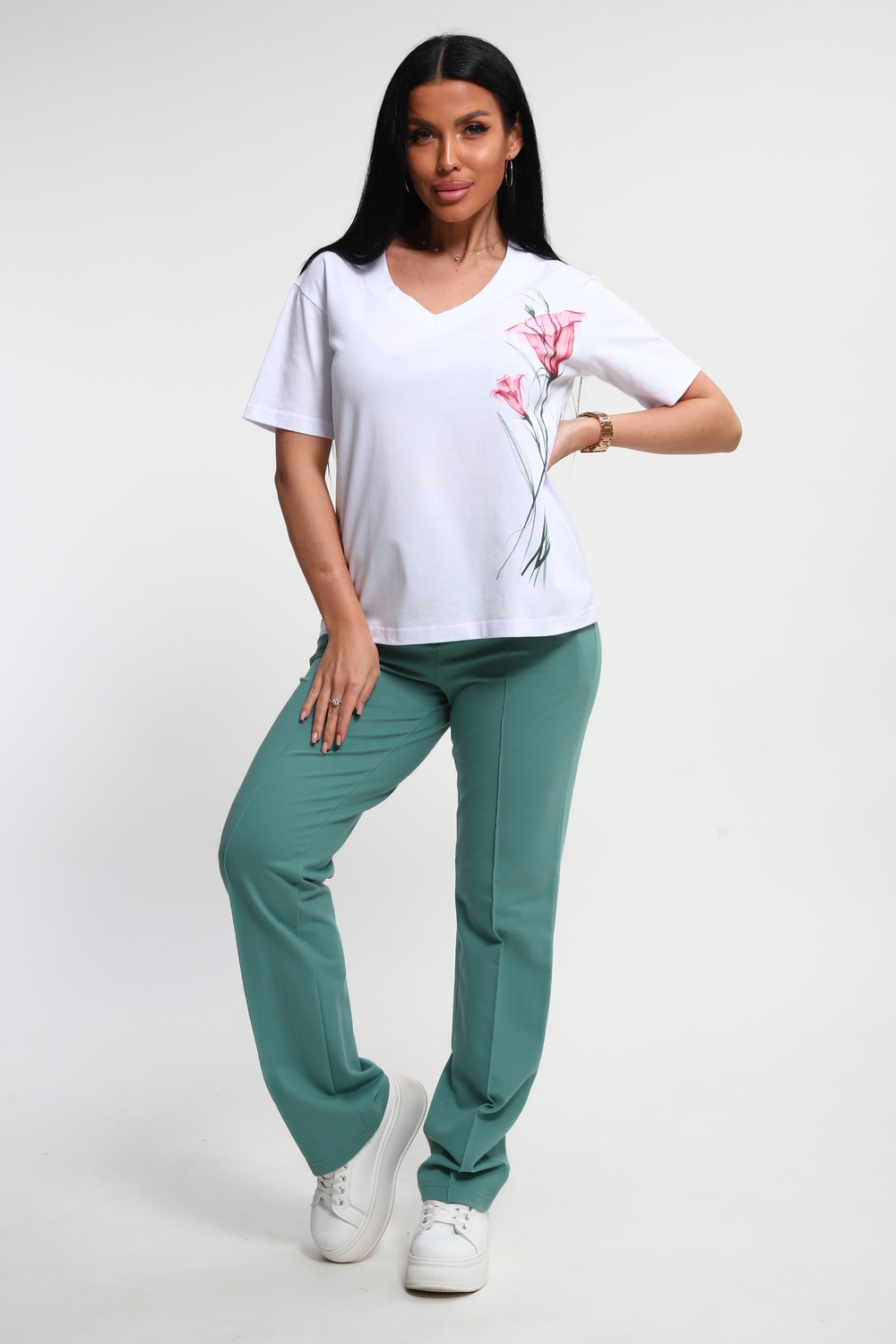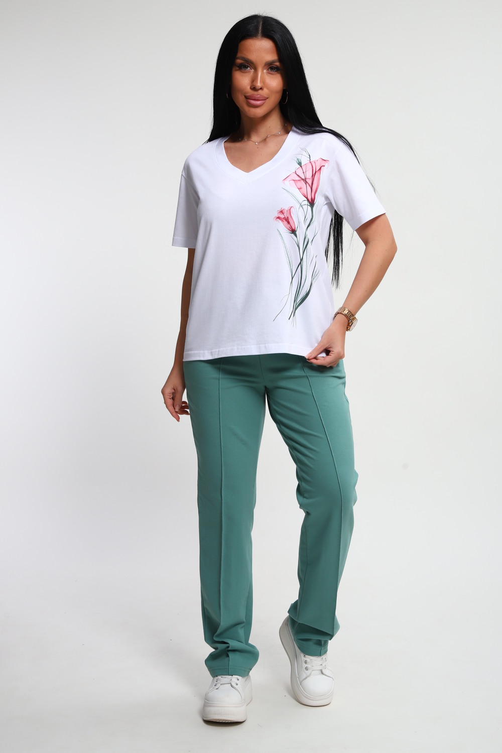Костюм женский – это стильный и идеальный предмет гардероба ,идеально подходящий для дома и отдыха на любой период :весенний ,осенний, летний и зимний . Комплект состоит из футболки с красочным принтом и брюки в контрастном цвете. В составе ткани 100% хлопок . Хлопковый материал очень комфортный и лёгкий в носке . Брюки с удобной посадкой придадут вашему образу стильный и модный вид . Базовый современный костюмчик – популярный повседневный выбор на каждый день : на работу , для прогулок , праздников и на дачу . Универсальный стиль позволит вам создавать разнообразные образы , подходящие для любого события.