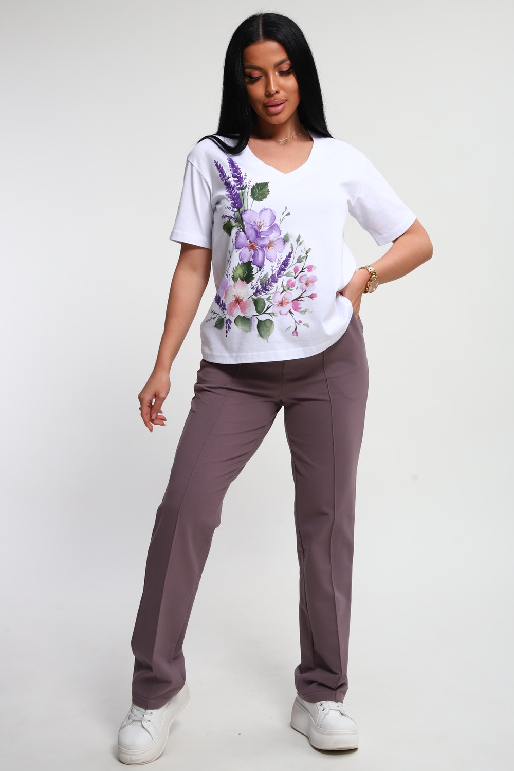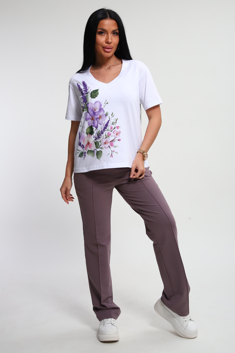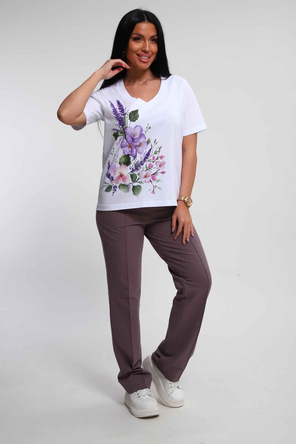 Костюм женский – это стильный и идеальный предмет гардероба ,идеально подходящий для дома и отдыха на любой период :весенний ,осенний, летний и зимний . Комплект состоит из футболки с красочным принтом и брюки в контрастном цвете. В составе ткани 100% хлопок . Хлопковый материал очень комфортный и лёгкий в носке . Брюки с удобной посадкой придадут вашему образу стильный и модный вид . Базовый современный костюмчик – популярный повседневный выбор на каждый день : на работу , для прогулок , праздников и на дачу . Универсальный стиль позволит вам создавать разнообразные образы , подходящие для любого события.