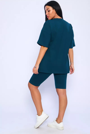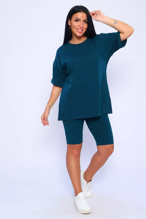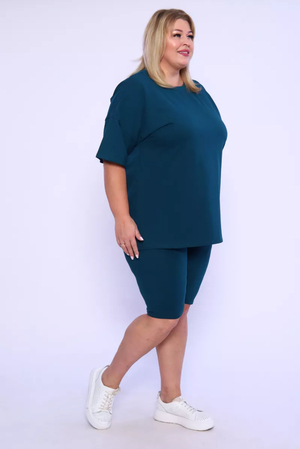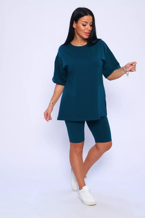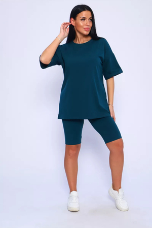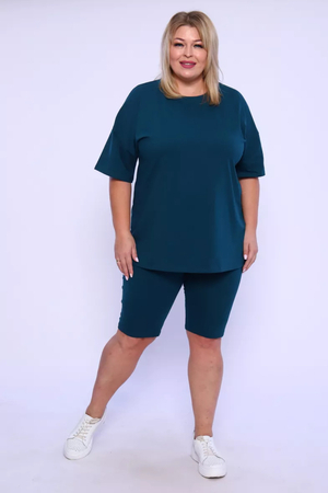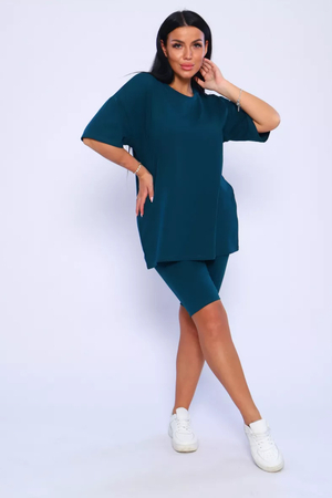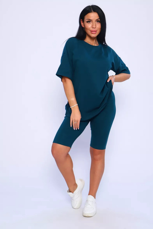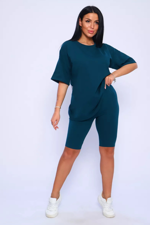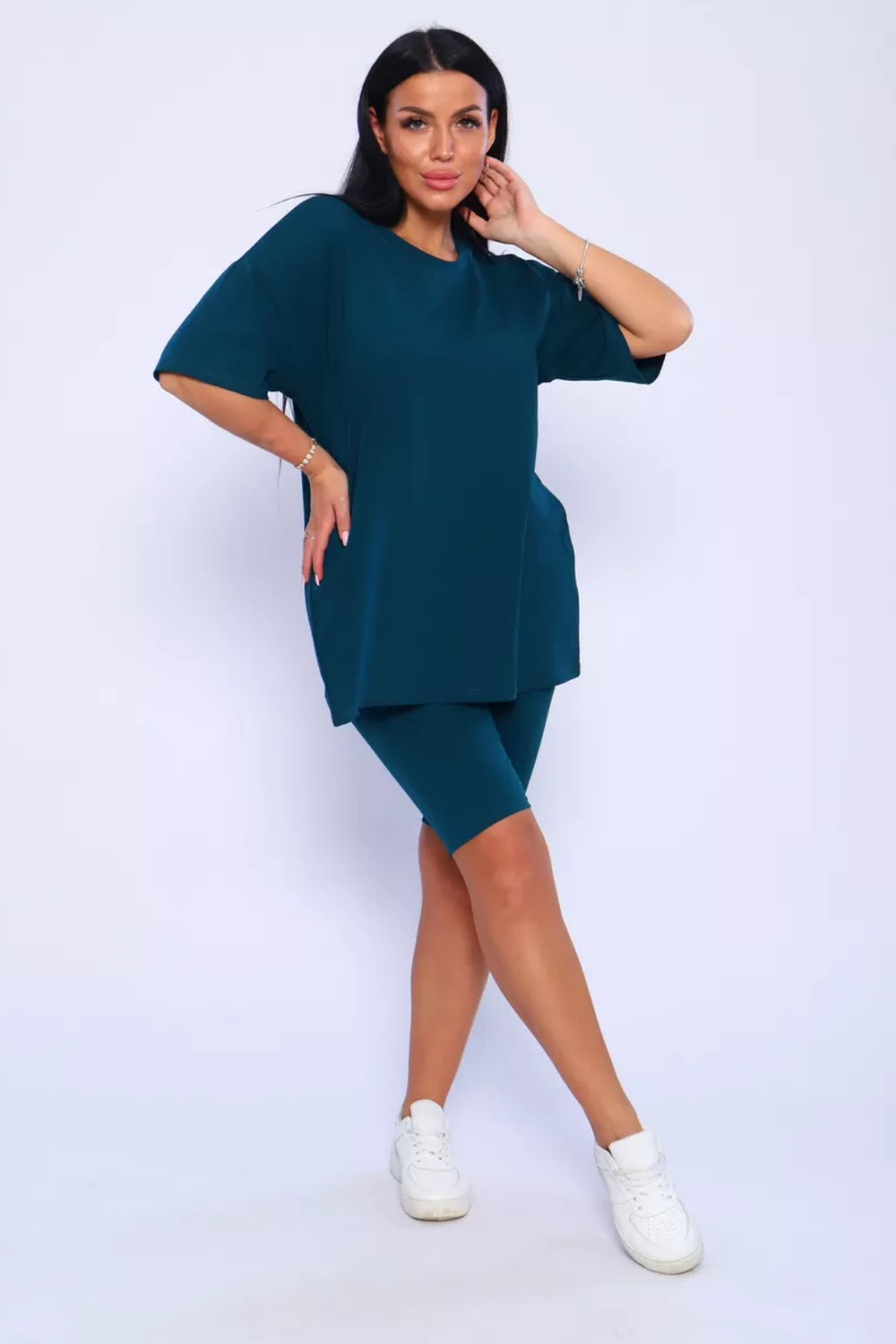 Представляем вам нашу эксклюзивную новинку - потрясающий женский костюм, идеальный для любых теплых дней! Этот великолепный комплект из двух предметов сочетает в себе современный дизайн и исключительный комфорт. Свободная футболка оверсайз с коротким рукавом создает непринужденный силуэт, позволяя вам двигаться легко и непринужденно. Сочетающиеся с ней велосипедки с высокой талией подчеркнут ваши изящные ноги, обеспечивая максимальную свободу движений. Этот универсальный костюм с легинсами подходит для множества случаев. Отправляетесь на пробежку в парк? Спортивный стиль сделает вашу тренировку комфортной. Собираетесь на дачу? Легкая и дышащая ткань обеспечит прохладу и удобство. Ищете стильный наряд для прогулки по городу или отдыха на море? Яркие цвета и модный дизайн сделают вас центром внимания. Мы верим, что стиль должен быть доступен для всех женщин. Этот костюм представлен в широком диапазоне размеров, от самых маленьких до больших, включая размеры для беременных. Независимо от вашей фигуры, вы найдете идеальную посадку, которая подчеркнет ваши лучшие стороны. Мы знаем, что комфорт - это ключ. Вот почему наш костюм изготовлен из высококачественного трикотажа на основе хлопка. Этот мягкий и приятный для кожи материал обеспечит вам прохладу и сухость в течение всего дня. Гипоаллергенные свойства хлопка делают его идеальным даже для самой чувствительной кожи. Удлиненный крой футболки и облегающий силуэт бридж создают стильный и современный образ. Яркие и модные цвета сделают вас заметной в любой толпе. Дополните образ модными аксессуарами, чтобы создать неповторимый стиль. Этот универсальный костюм подходит не только для занятий фитнесом. Он станет отличным выбором для повседневной носки, отдыха дома или неспешных прогулок с друзьями. Мягкий и дышащий материал обеспечит вам максимальный комфорт в любой ситуации. Наш женский спортивный костюм с футболкой и велосипедками - это идеальный способ добавить стиль и комфорт в свой гардероб.