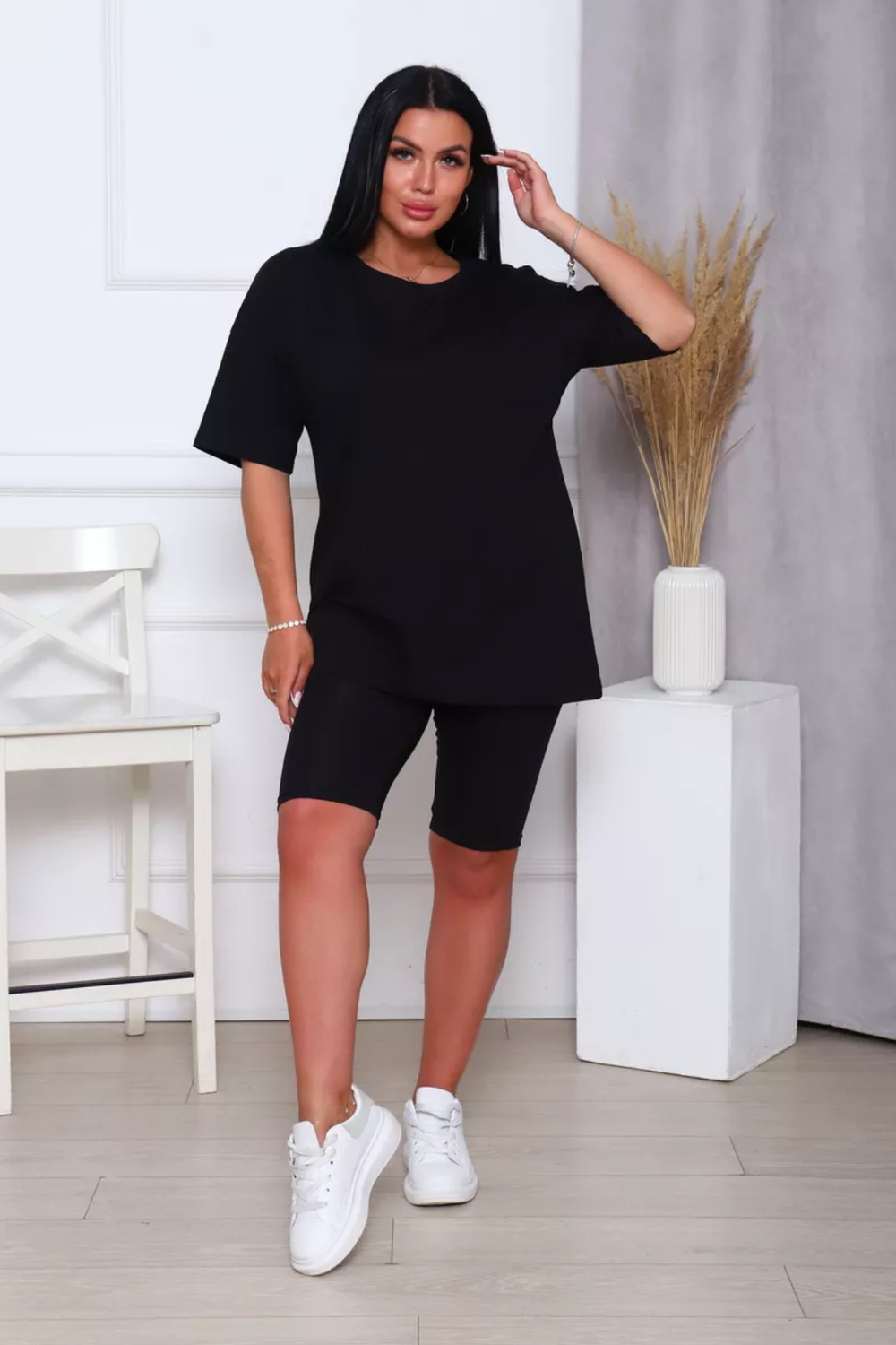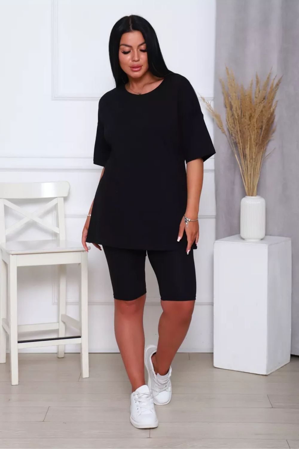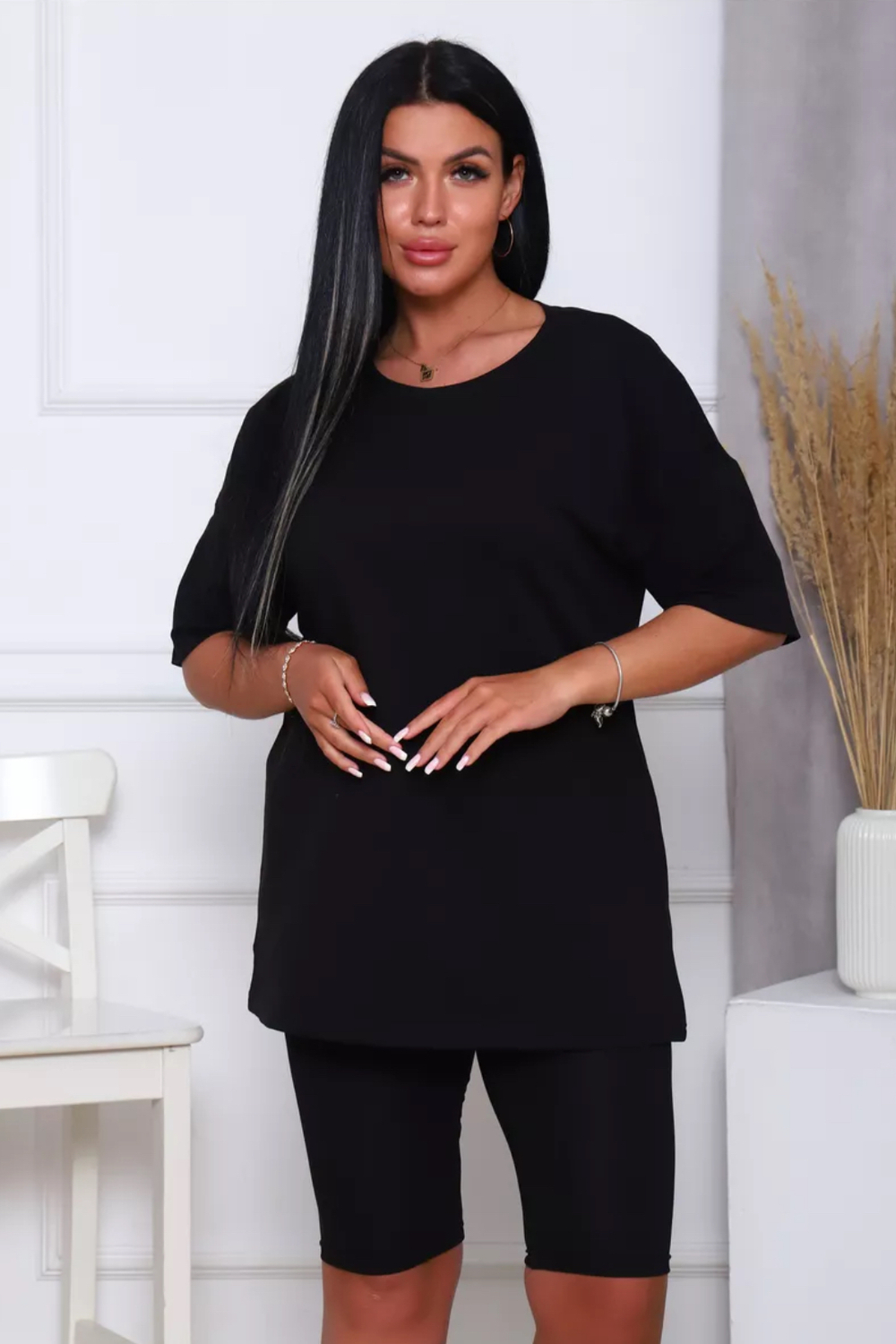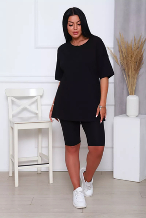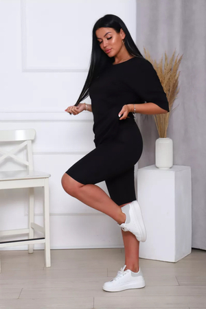 Представляем вам нашу эксклюзивную новинку - потрясающий женский костюм, идеальный для любых теплых дней! Этот великолепный комплект из двух предметов сочетает в себе современный дизайн и исключительный комфорт. Свободная футболка оверсайз с коротким рукавом создает непринужденный силуэт, позволяя вам двигаться легко и непринужденно. Сочетающиеся с ней велосипедки с высокой талией подчеркнут ваши изящные ноги, обеспечивая максимальную свободу движений. Этот универсальный костюм с легинсами подходит для множества случаев. Отправляетесь на пробежку в парк? Спортивный стиль сделает вашу тренировку комфортной. Собираетесь на дачу? Легкая и дышащая ткань обеспечит прохладу и удобство. Ищете стильный наряд для прогулки по городу или отдыха на море? Яркие цвета и модный дизайн сделают вас центром внимания. Мы верим, что стиль должен быть доступен для всех женщин. Этот костюм представлен в широком диапазоне размеров, от самых маленьких до больших, включая размеры для беременных. Независимо от вашей фигуры, вы найдете идеальную посадку, которая подчеркнет ваши лучшие стороны. Мы знаем, что комфорт - это ключ. Вот почему наш костюм изготовлен из высококачественного трикотажа на основе хлопка. Этот мягкий и приятный для кожи материал обеспечит вам прохладу и сухость в течение всего дня. Гипоаллергенные свойства хлопка делают его идеальным даже для самой чувствительной кожи. Удлиненный крой футболки и облегающий силуэт бридж создают стильный и современный образ. Яркие и модные цвета сделают вас заметной в любой толпе. Дополните образ модными аксессуарами, чтобы создать неповторимый стиль. Этот универсальный костюм подходит не только для занятий фитнесом. Он станет отличным выбором для повседневной носки, отдыха дома или неспешных прогулок с друзьями. Мягкий и дышащий материал обеспечит вам максимальный комфорт в любой ситуации. Наш женский спортивный костюм с футболкой и велосипедками - это идеальный способ добавить стиль и комфорт в свой гардероб.