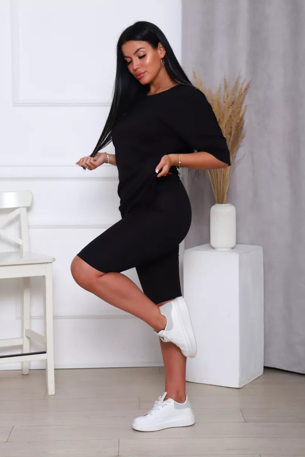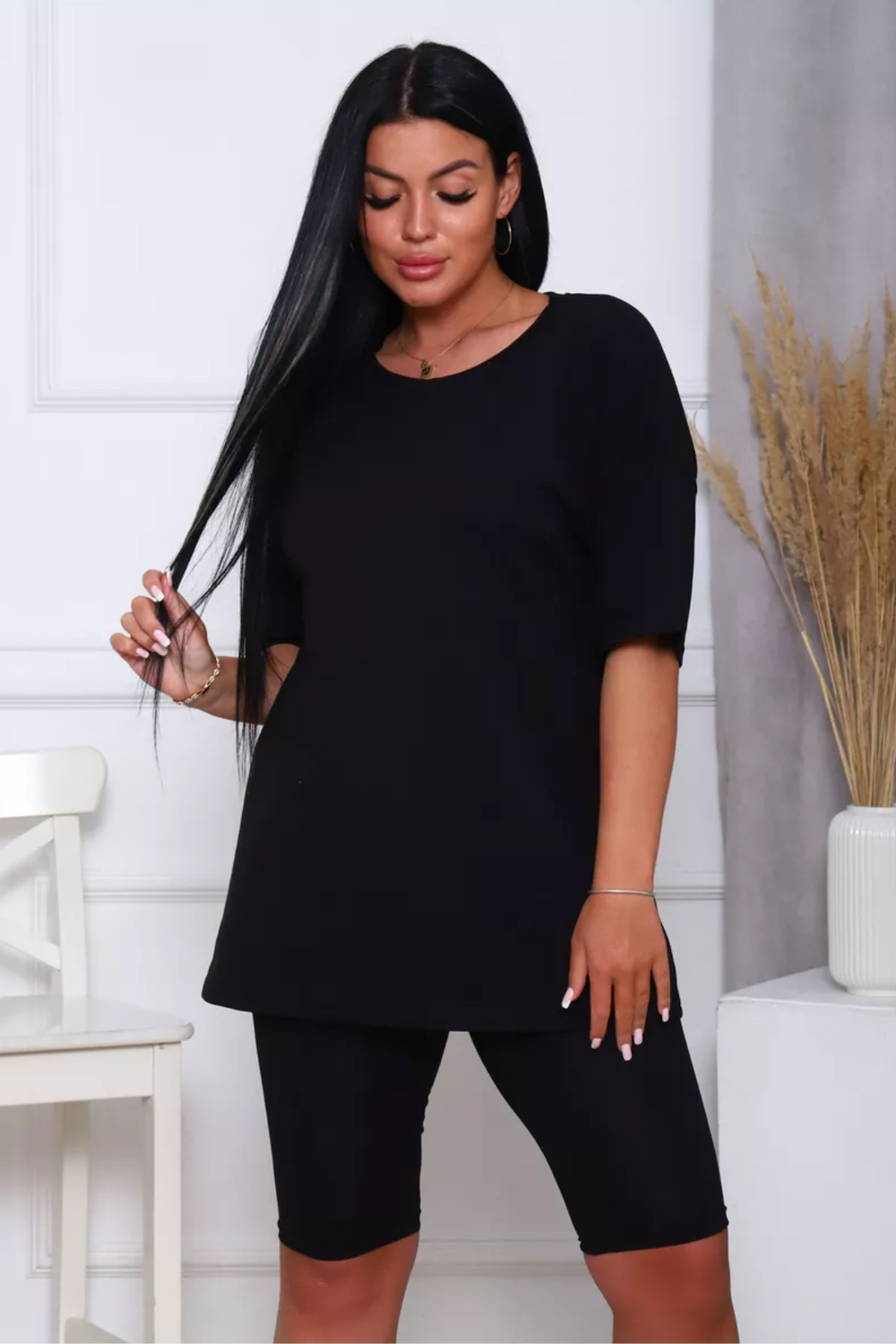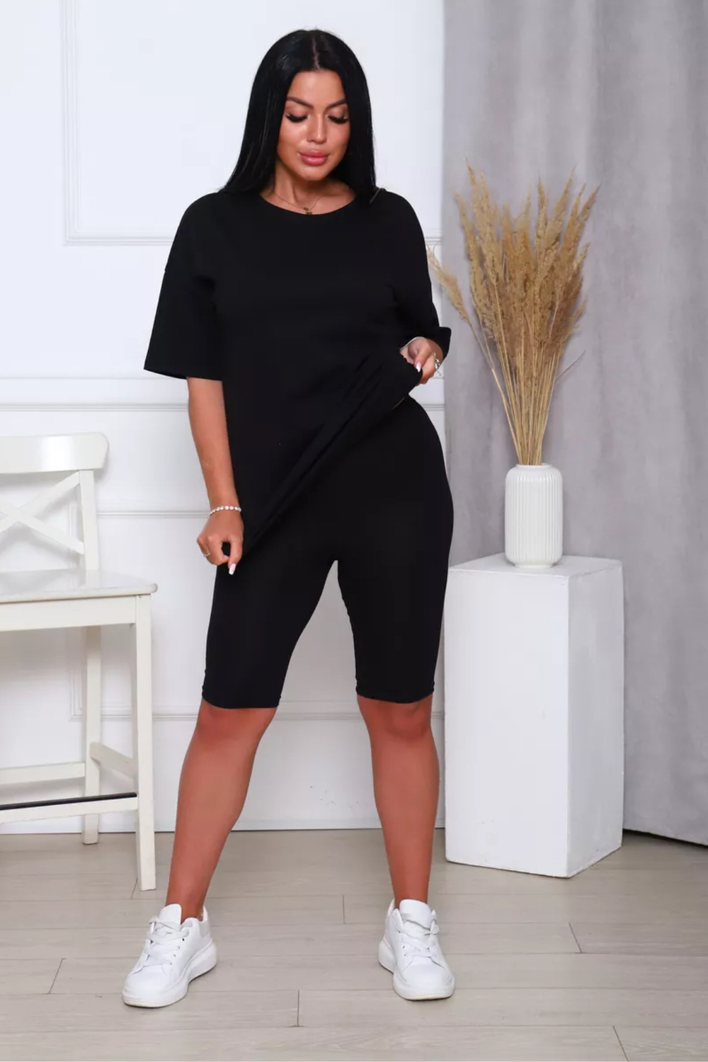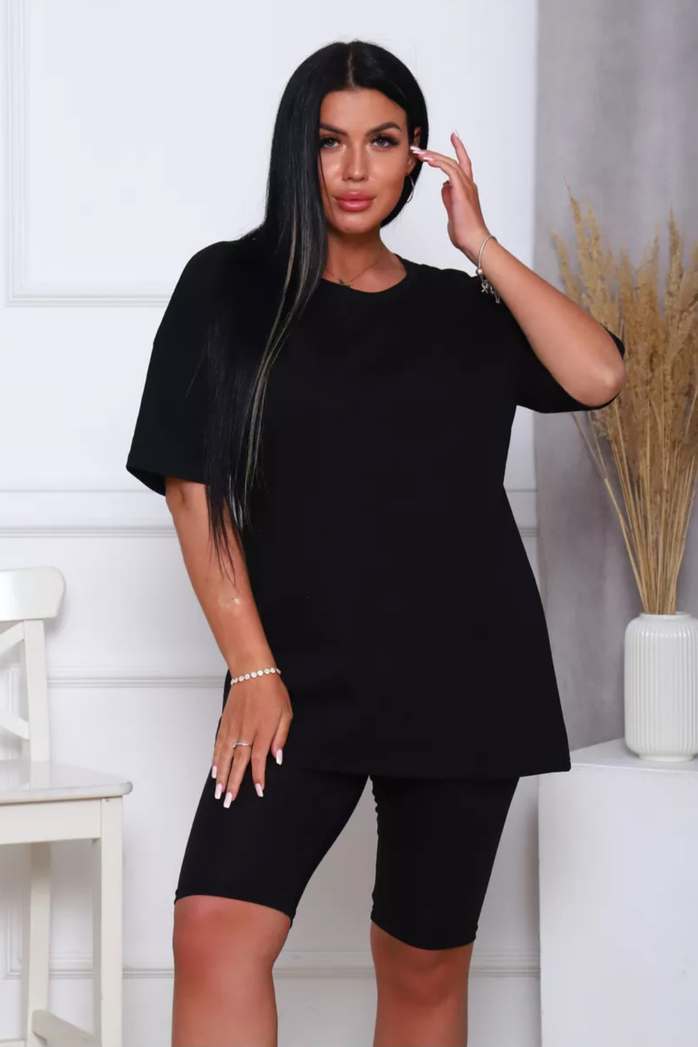 Представляем вам нашу эксклюзивную новинку - потрясающий женский костюм, идеальный для любых теплых дней! Этот великолепный комплект из двух предметов сочетает в себе современный дизайн и исключительный комфорт. Свободная футболка оверсайз с коротким рукавом создает непринужденный силуэт, позволяя вам двигаться легко и непринужденно. Сочетающиеся с ней велосипедки с высокой талией подчеркнут ваши изящные ноги, обеспечивая максимальную свободу движений. Этот универсальный костюм с легинсами подходит для множества случаев. Отправляетесь на пробежку в парк? Спортивный стиль сделает вашу тренировку комфортной. Собираетесь на дачу? Легкая и дышащая ткань обеспечит прохладу и удобство. Ищете стильный наряд для прогулки по городу или отдыха на море? Яркие цвета и модный дизайн сделают вас центром внимания. Мы верим, что стиль должен быть доступен для всех женщин. Этот костюм представлен в широком диапазоне размеров, от самых маленьких до больших, включая размеры для беременных. Независимо от вашей фигуры, вы найдете идеальную посадку, которая подчеркнет ваши лучшие стороны. Мы знаем, что комфорт - это ключ. Вот почему наш костюм изготовлен из высококачественного трикотажа на основе хлопка. Этот мягкий и приятный для кожи материал обеспечит вам прохладу и сухость в течение всего дня. Гипоаллергенные свойства хлопка делают его идеальным даже для самой чувствительной кожи. Удлиненный крой футболки и облегающий силуэт бридж создают стильный и современный образ. Яркие и модные цвета сделают вас заметной в любой толпе. Дополните образ модными аксессуарами, чтобы создать неповторимый стиль. Этот универсальный костюм подходит не только для занятий фитнесом. Он станет отличным выбором для повседневной носки, отдыха дома или неспешных прогулок с друзьями. Мягкий и дышащий материал обеспечит вам максимальный комфорт в любой ситуации. Наш женский спортивный костюм с футболкой и велосипедками - это идеальный способ добавить стиль и комфорт в свой гардероб.