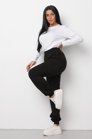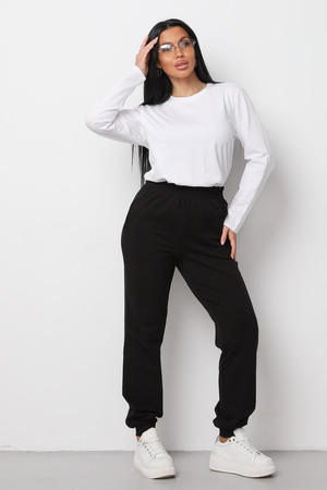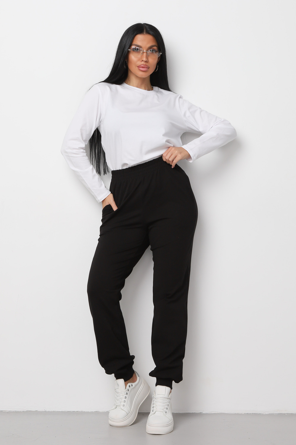 Эти штаны изготовлены из трикотажа без начеса, что делает их универсальными на демисезонную погоду в весенний и летний период. Черный цвет делает их легко сочетаемыми с другими предметами гардероба. Кроме того, они доступны в больших размерах, и даже для беременных - идеальный вариант для похода в роддом.