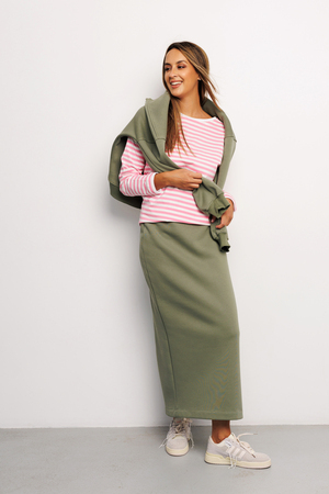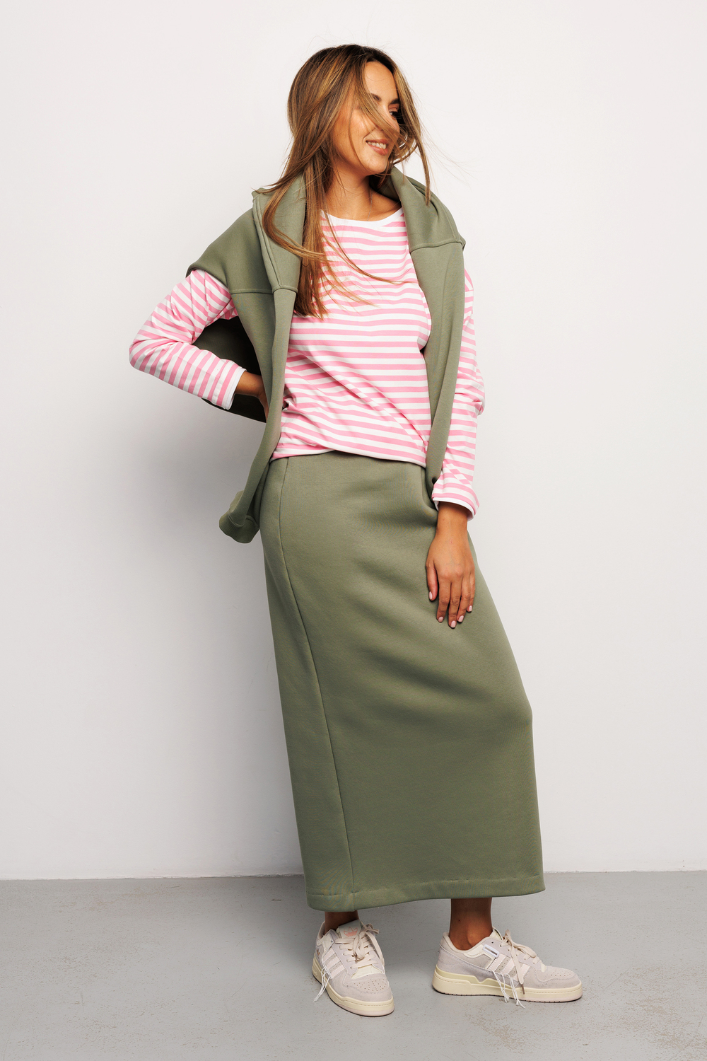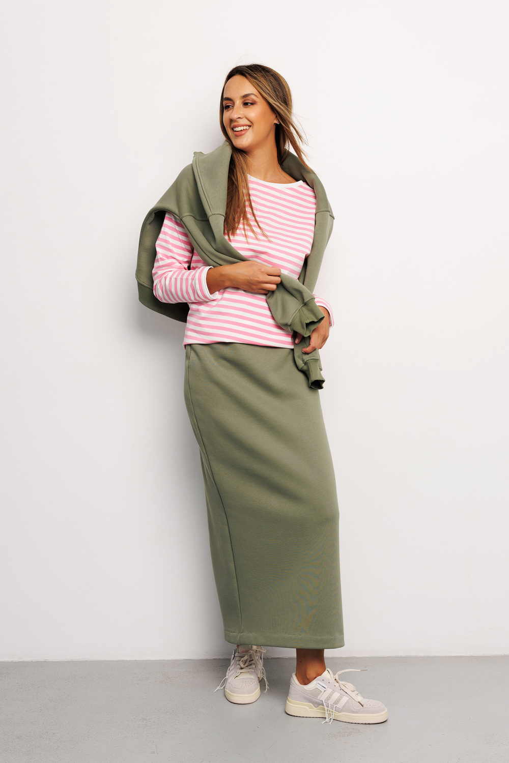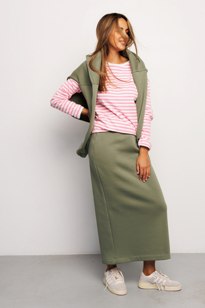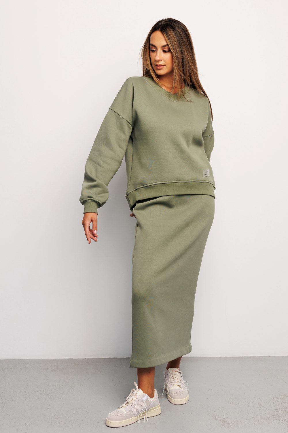 Юбка женская макси из качественного материала футер 3 нитка ткань с начесом от бренда Raposa – базовая модель Вашего гардероба, сочетающая в себе комфорт, функциональность и безупречный стиль. Юбка офисная утепленная на резинке с брендированной нашивкой на поясе, с разрезом сзади не сковывает движения, удобная и женственная. Модель сшита в стиле спортивный шик из качественного трикотажа футера (хлопок 65%). Этот хлопковый материал отлично держит форму, не скатывается и не линяет. Прямой крой и широкая эргономичная резинка на талии обеспечат идеальную посадку, помогут подчеркнуть достоинства и скрыть недостатки Вашей фигуры. Юбка длинная подойдет для самых разных стилей (кэжуал, спорт шик, y2k) и луков, она уместна как в повседневной носке, так и для деловой встречи, для романтического свидания. Юбка в пол представлена в широкой размерной сетке для прекрасных дам больших размеров плюс сайз, в послеродовый период для модных мамочек, для беременных. Эта плотная зимняя модель без принта идеально садится на фигуру и акцентирует внимание на Ваших достоинствах. В сочетании с футболкой, свитшотом, худи и кроссовками можно создать женственный спортивный образ. Юбка хаки или оливкового оттенка соответствует школьному дресс-коду и будет уместна на учебных занятиях для девочки подростка, подойдет как мусульманская или православная одежда, для крещения. Юбка теплая женская подарит уют и комфорт в холодный осенне-зимний период и станет незаменимой вещью в наступающем сезоне! Идеально подойдет для фотосессии family look, для прогулок или отдыха на природе. Предварительно постирайте изделие, чтобы удалить лишний начес с внутренней стороны. Не стоит беспокоиться, если внутри начнут образовываться небольшие "катышки" — это не является дефектом. При соблюдении рекомендаций по уходу он будет выглядеть как новый долгое время, не скатается и не сядет.