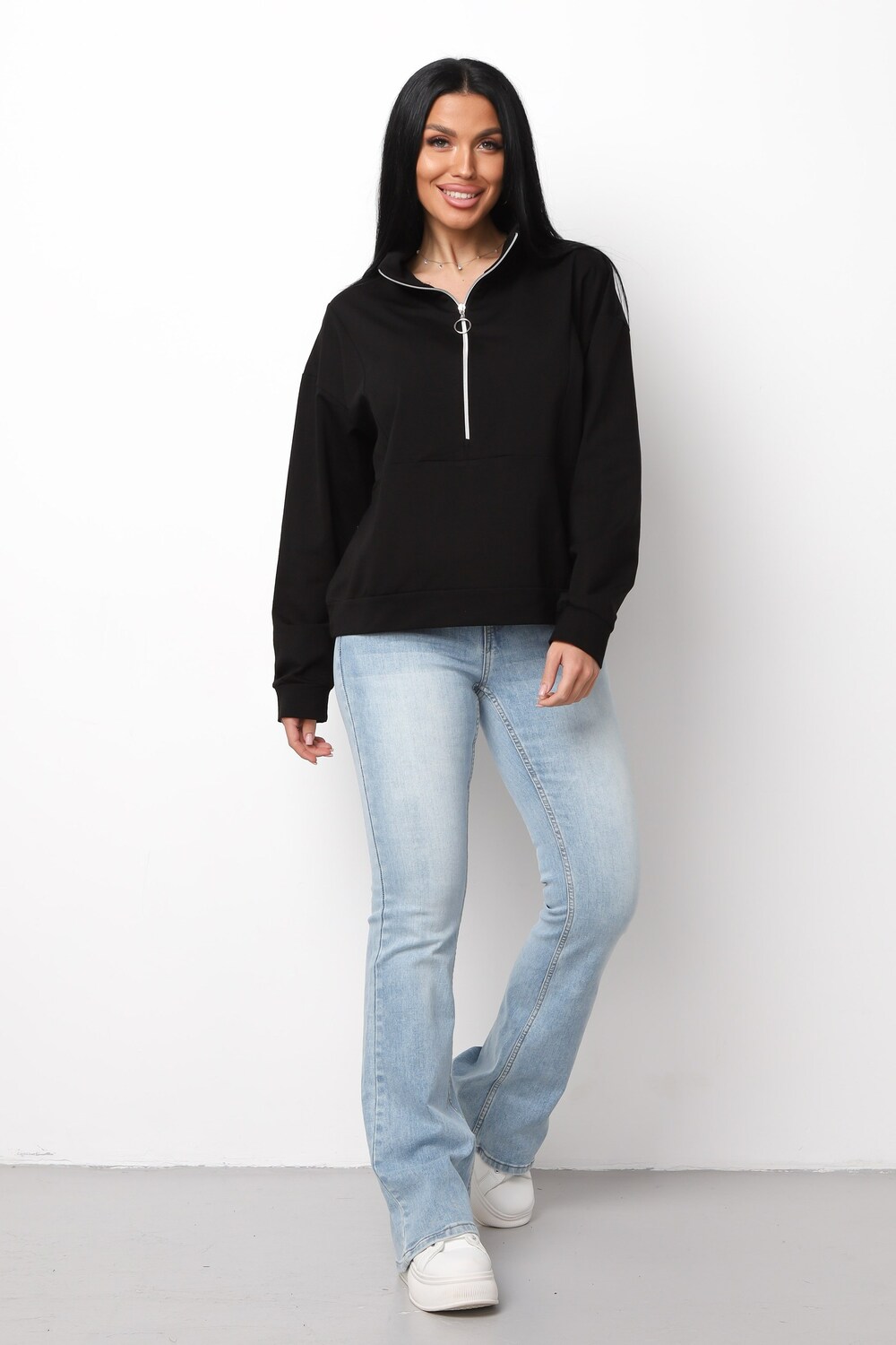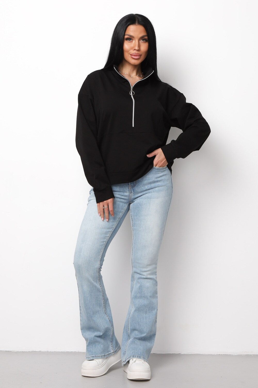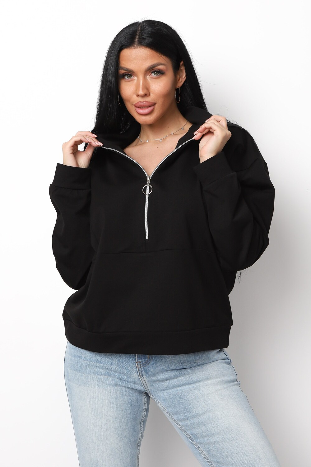 Теплая толстовка зип для женщин и подростков — универсальный выбор для школы, учебы, работы и повседневных прогулок. Изделие выполнено из приятного к телу капитония, который сохраняет тепло даже в прохладную погоду. Модный джемпер с горлом на молнии отличается свободным кроем с длинным рукавом и манжетами, что обеспечивает максимальный комфорт на каждый день. Благодаря стильному оверсайз силуэту кофта идеально смотрится на женщинах, девушках и девочках-подростках, подчеркивая актуальные тренды этого сезона.