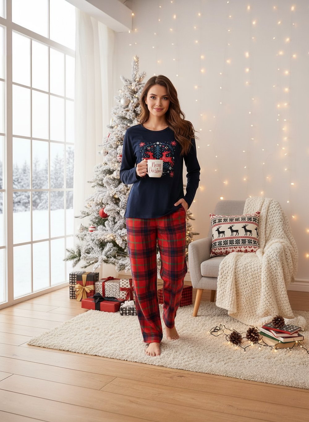 Мечтаете о волшебной новогодней ночи, полной тепла, уюта и праздничного настроения? Тогда вам просто необходима новогодняя пижама Реджи! Мы создали идеальный комплект, который подарит вам незабываемые ощущения комфорта и стиля в самый долгожданный праздник года. Комплект из 100% хлопка - идеальный выбор для тех, кто ценит свободу движений и любит выглядеть дома красиво. Комплект состоит из лонгслива и брюк свободного кроя на резинке. Пижама с новогодним принтом станет отличным подарком близким, а широкий размерный ряд позволит подобрать пижаму для обладательниц разного типа фигур.