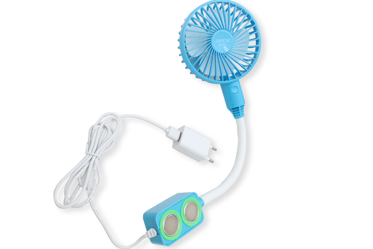 Портативный настольный вентилятор на гибкой ножке с удобным и надежным креплением на два магнита, оснащен защитной силиконовой накладкой. Имеет три режима мощности (макс. 4 Вт). Подключается к стандартной сети питания. Обеспечивает хороший обдув за счет четырех лопастей, работает тихо. На корпусе расположена механическая кнопка управления. Кабель питания оснащен USB-разъемом.