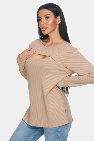 Лонгслив из мягкой лапши, созданный подчеркнуть ваш силуэт и подарить комфорт на каждый день. Эффектный вырез добавляет изюминку образу, а свободный крой обеспечивает идеальную посадку. Идеален для casual-луков и уверенного стильного настроения