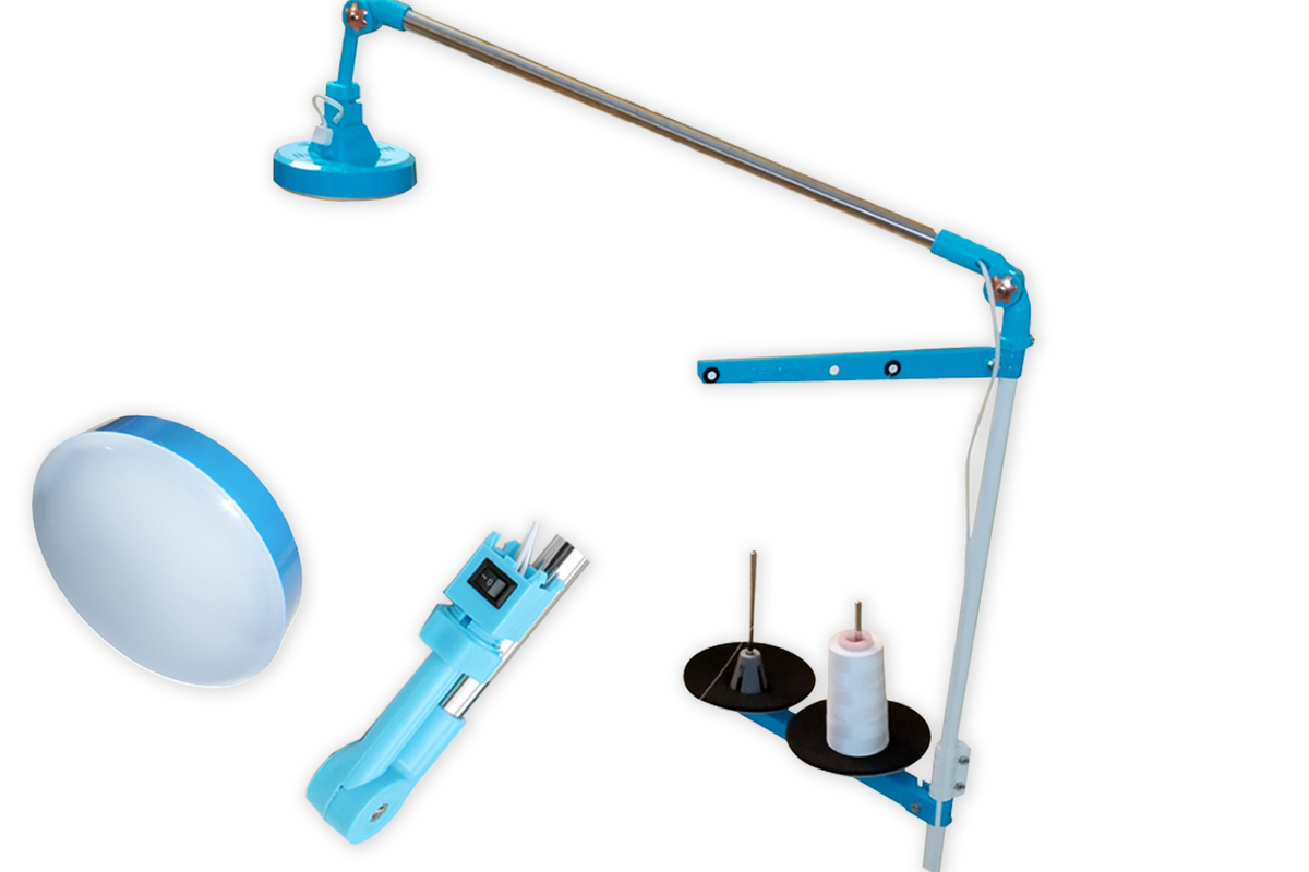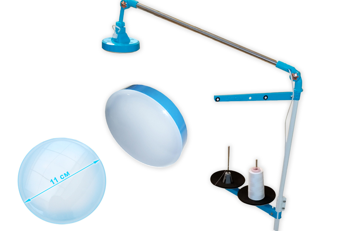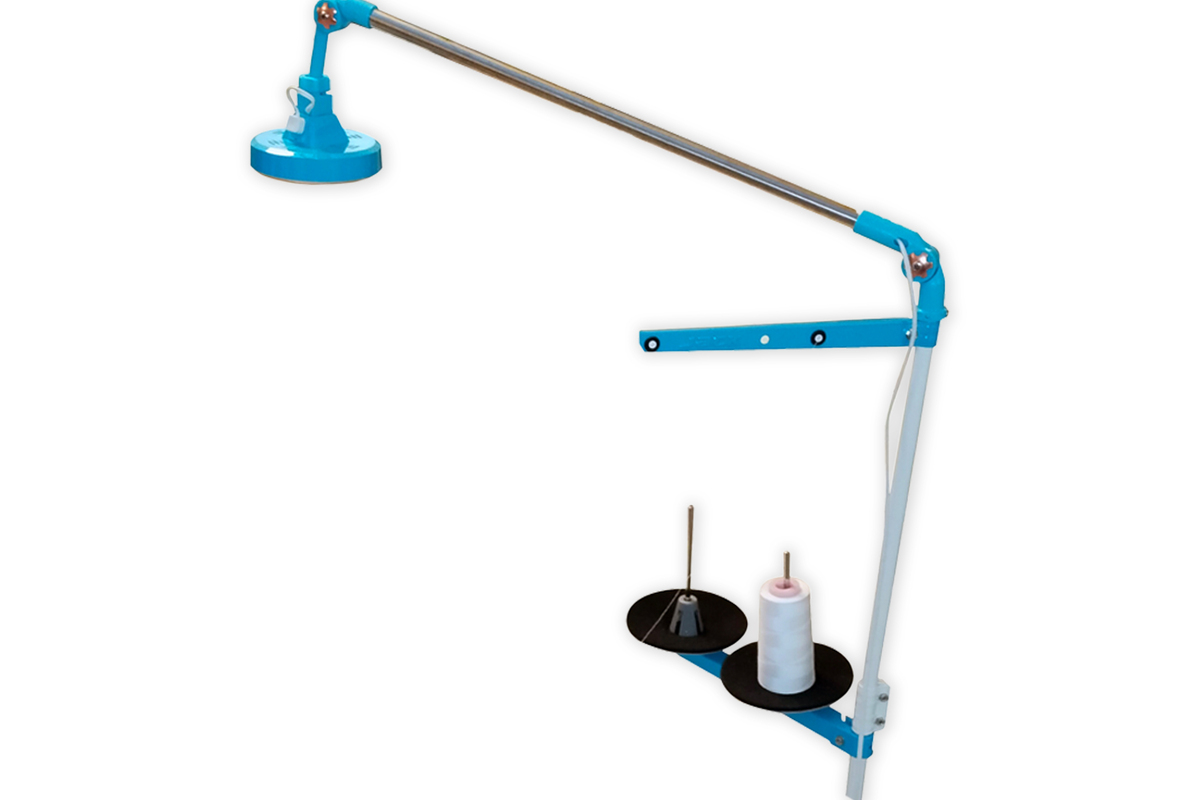 Лампа с креплением к бобиностойке, регулируемым углом наклона на 360°. Подходит для любого типа швейных машин. Кнопка включения и выключения питания находится на стойке.