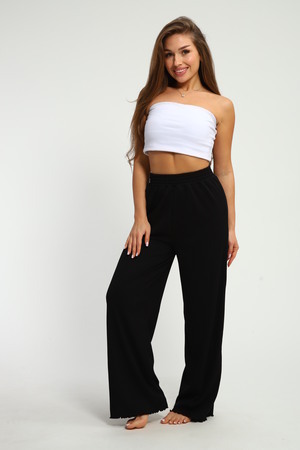 Такие брюки станут настоящим украшением гардероба, привлекая внимание окружающих своим необычным дизайном. Их можно сочетать с различными топами, создавая уникальные и стильные образы. Брюки палаццо из лапши — это идеальный выбор для тех, кто хочет выделиться из толпы и продемонстрировать свою уникальность..