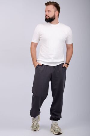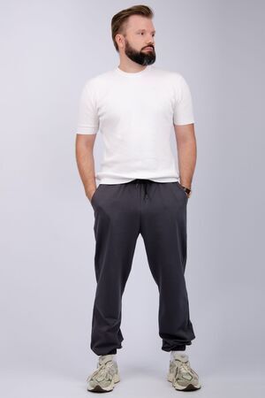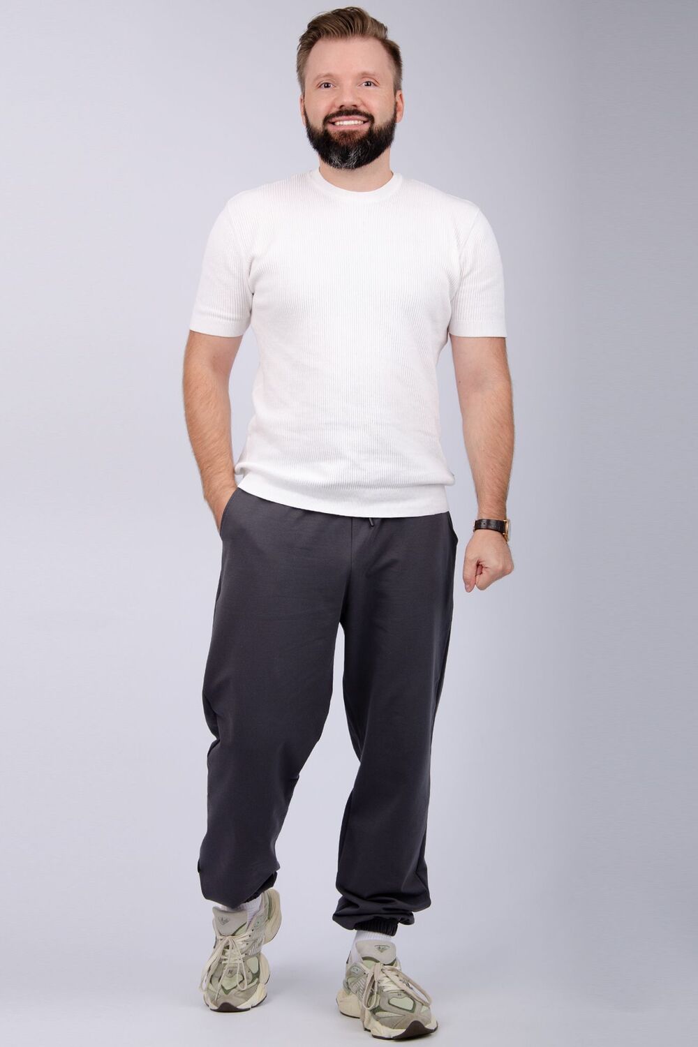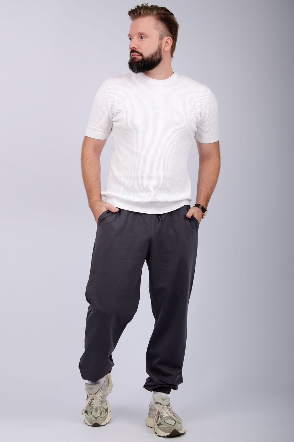 Мужские, спортивные брюки. Пояс на резинке, по бокам два кармана. Низ на манжетах. Они изготовлены из высококачественного трикотажа, за счет чего штаны не вытягиваются на месте колен и не теряют свой вид. Удобная, приятная к телу ткань и не ограничивает движения. Подойдут для спорта, отдыха и повседневной носки.