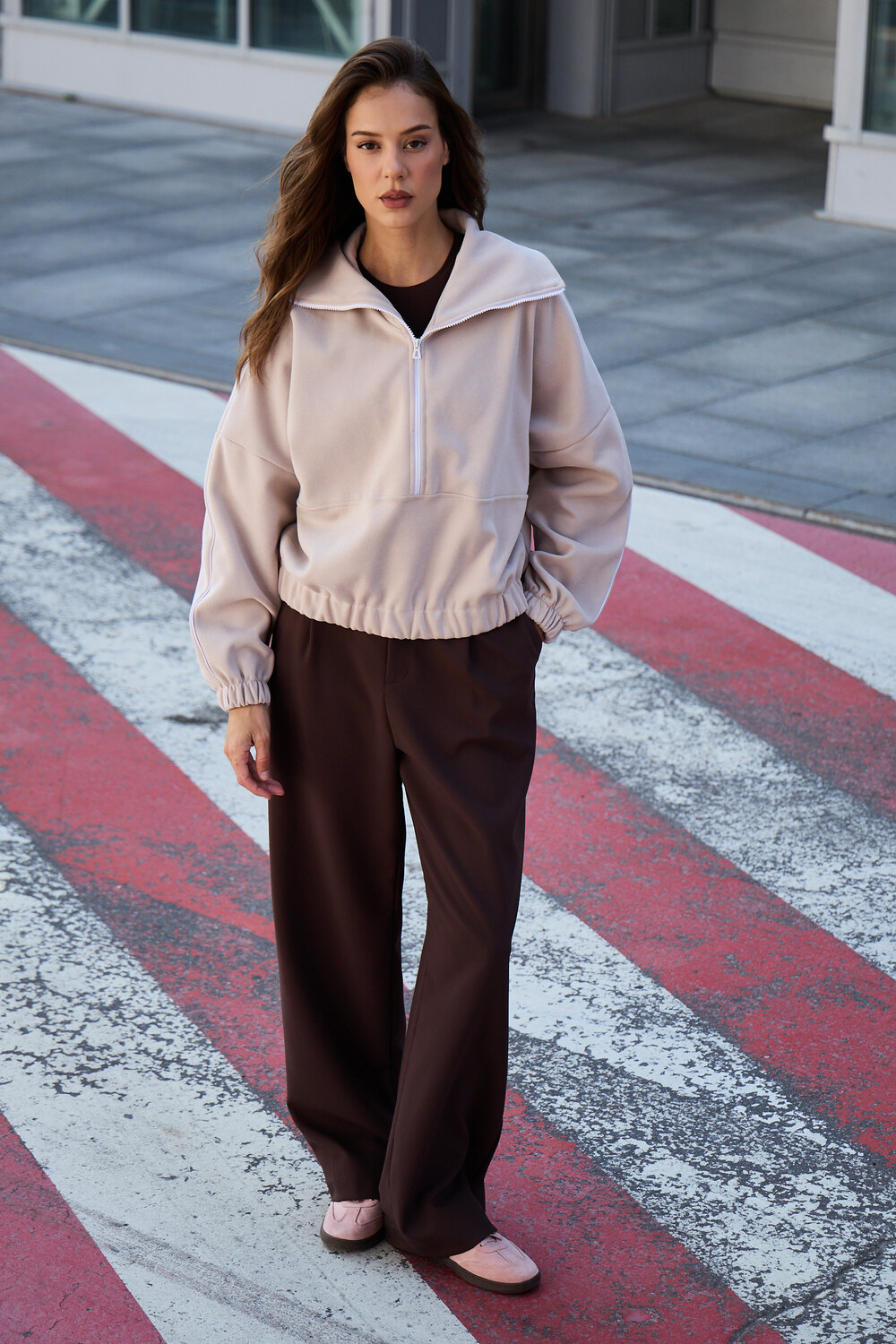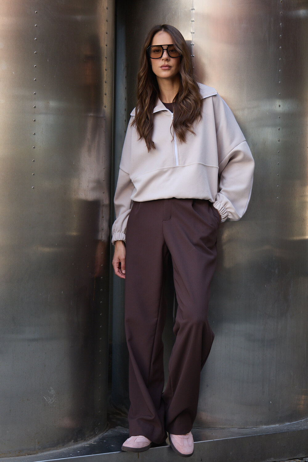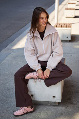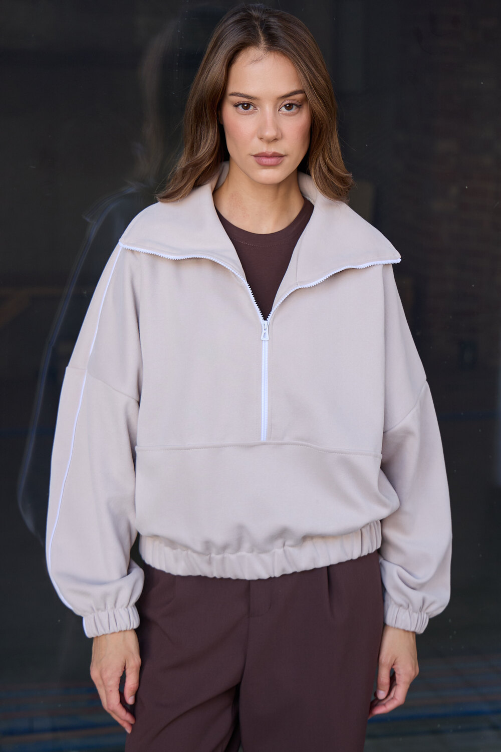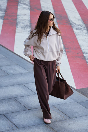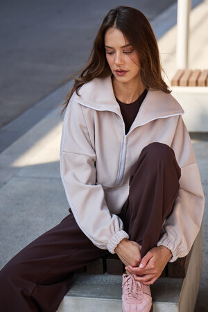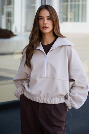 Благодаря расслабленному крою oversize, удлиненным рукавам и эластичной резинке по низу, свитшот словно создан для любой фигуры, деликатно подчеркивая достоинства и скрывая недостатки, будь то хрупкий силуэт или пышные формы.