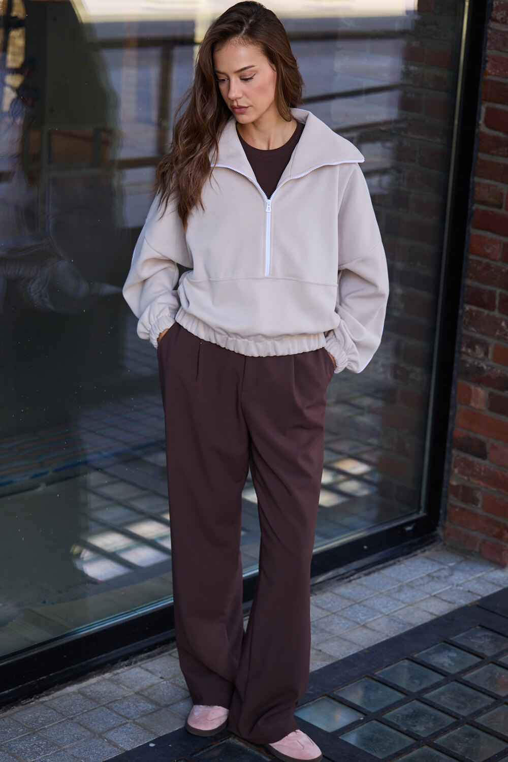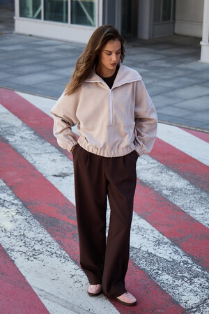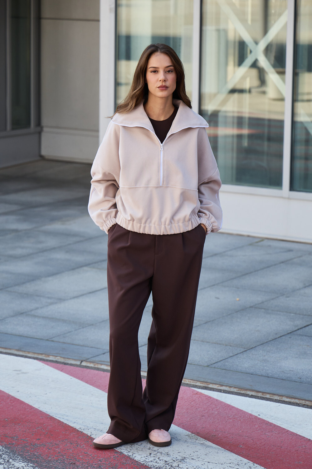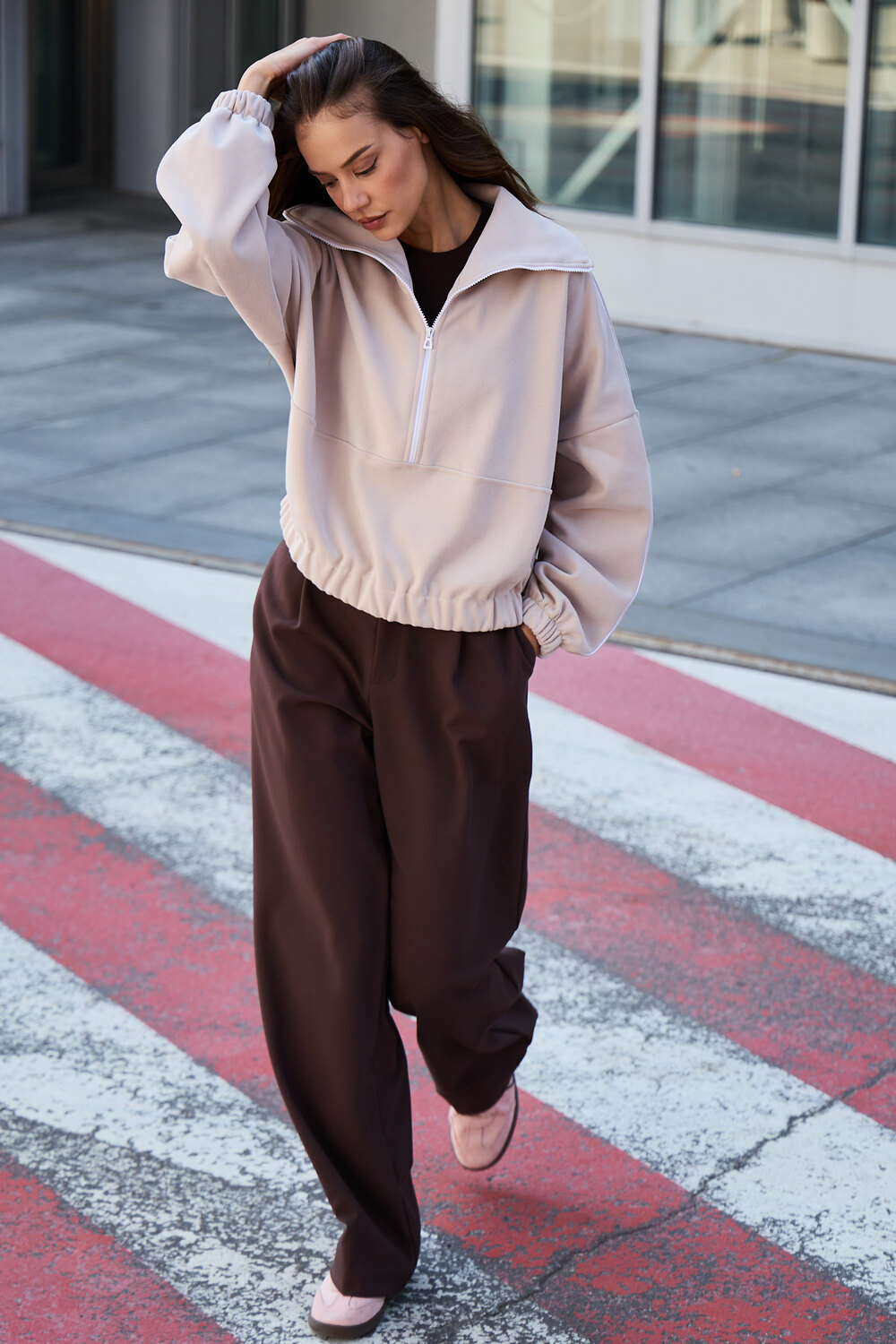 Благодаря расслабленному крою oversize, удлиненным рукавам и эластичной резинке по низу, свитшот словно создан для любой фигуры, деликатно подчеркивая достоинства и скрывая недостатки, будь то хрупкий силуэт или пышные формы.