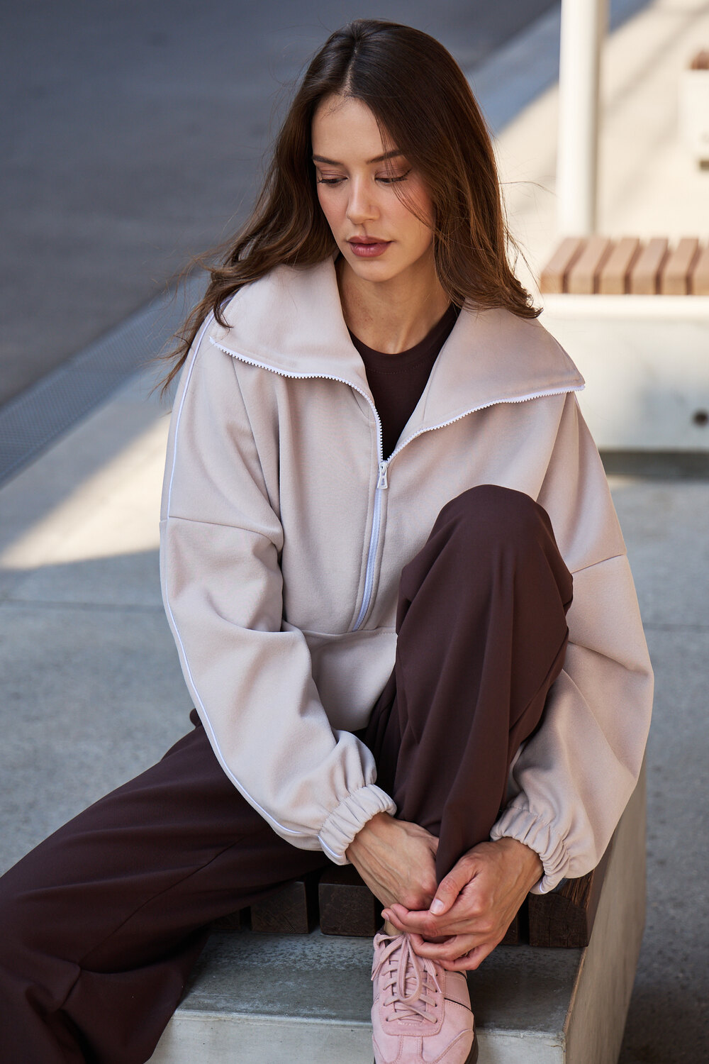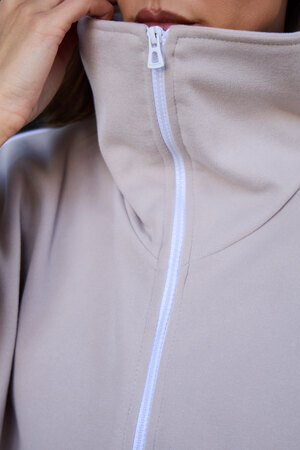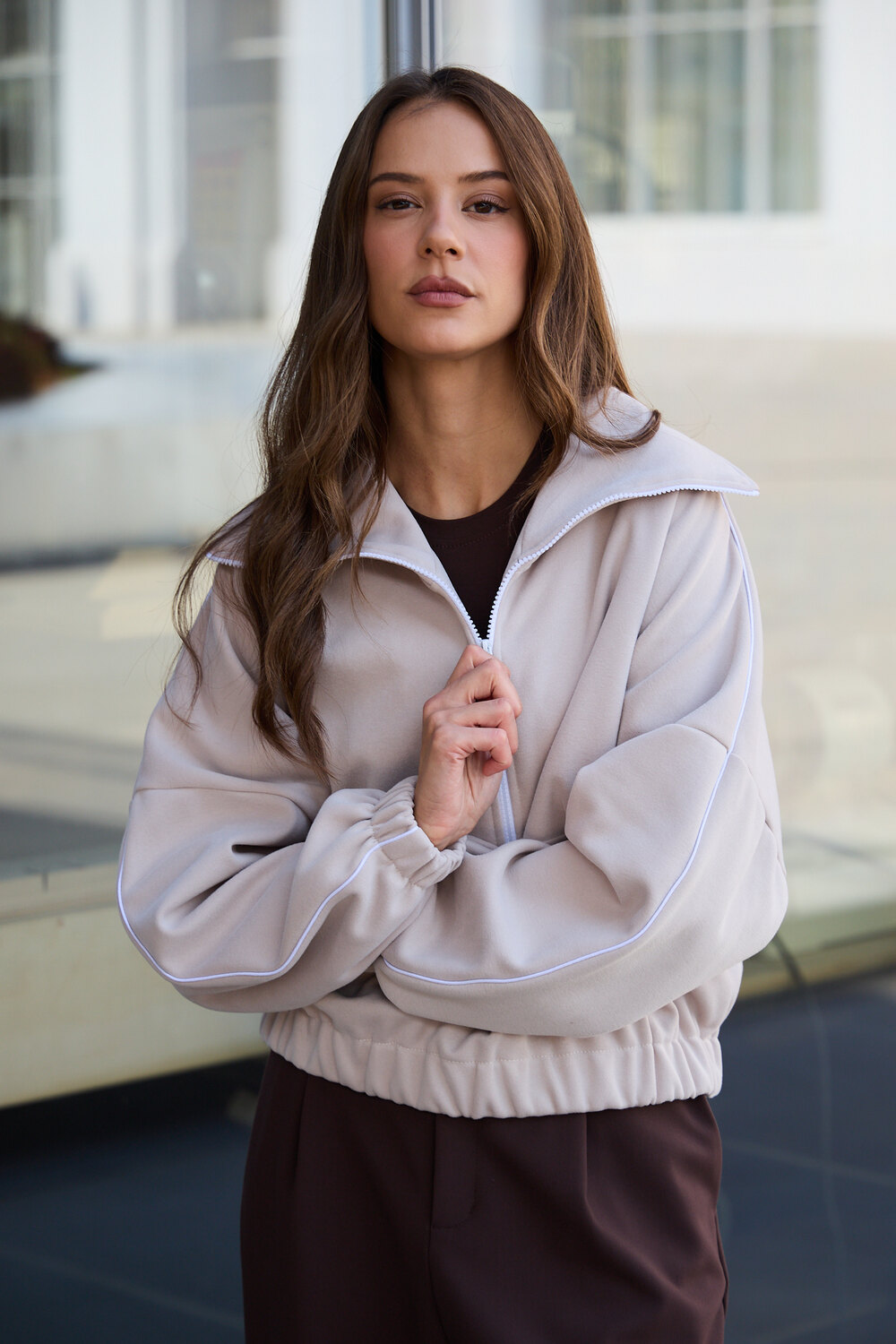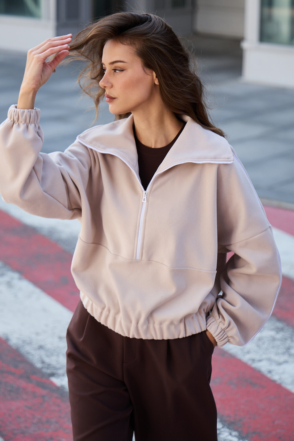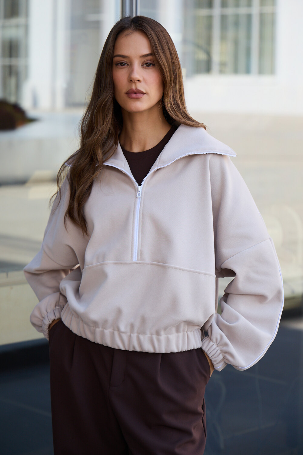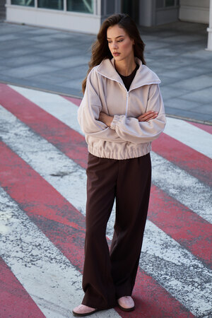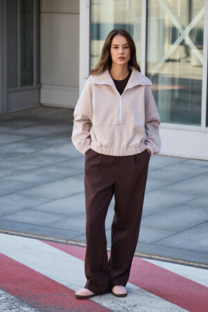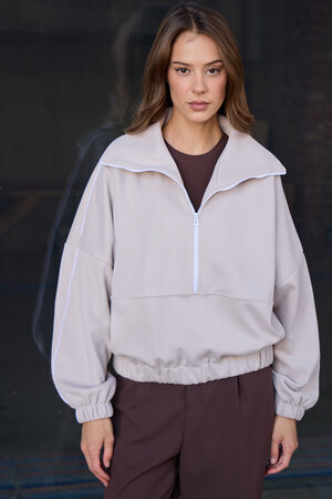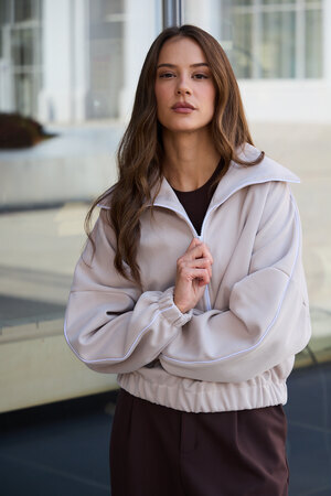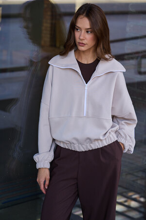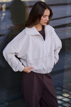 Декоративный контрастный кант и изящная полузастежка-молния превращают обыденную вещь в предмет дизайнерского искусства. Такая кофта легко вольется в ритм повседневной жизни, став незаменимой частью базового гардероба.