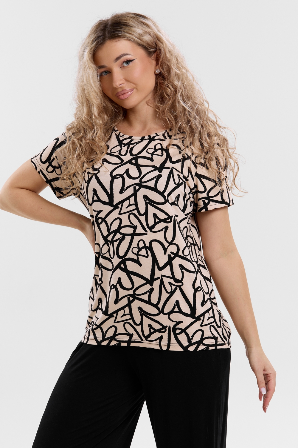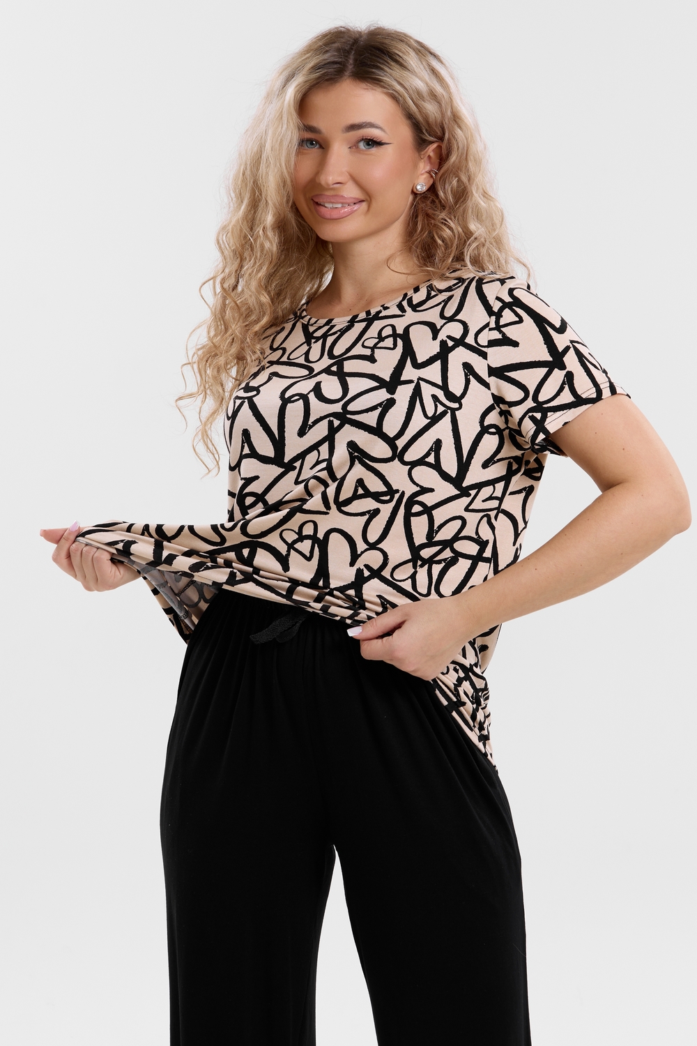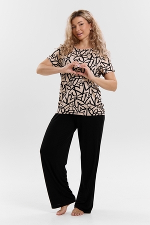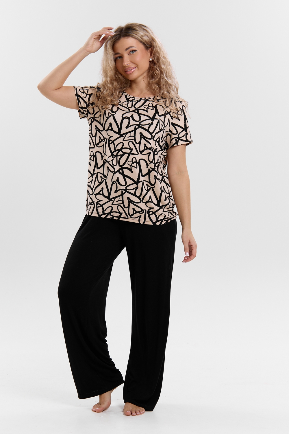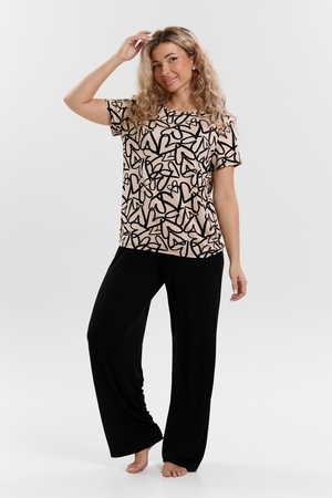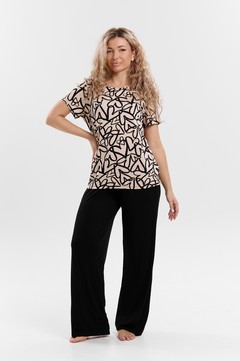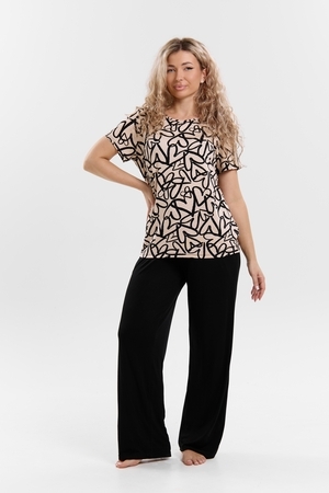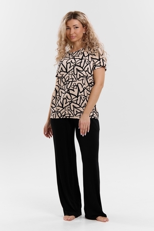 Стань воплощением уюта и стиля! Женский костюм из мягкой ткани — идеальное решение для домашнего отдыха, прогулок и даже лёгких занятий спортом. Яркий верх с оригинальным принтом добавляет настроения, а свободные однотонные брюки обеспечивают максимум комфорта. В таком костюме ты всегда будешь чувствовать себя уверенно и привлекательно — где бы ты ни была!