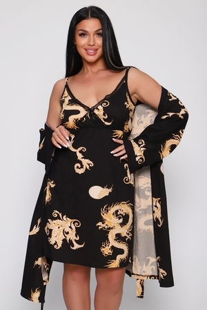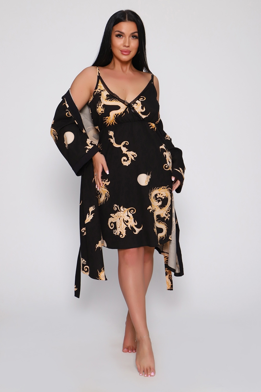 Изготовлены из легкого, приятного на ощупь натурального хлопка. Элегантный домашний наряд включает халат на запах и легкую ночную сорочку.