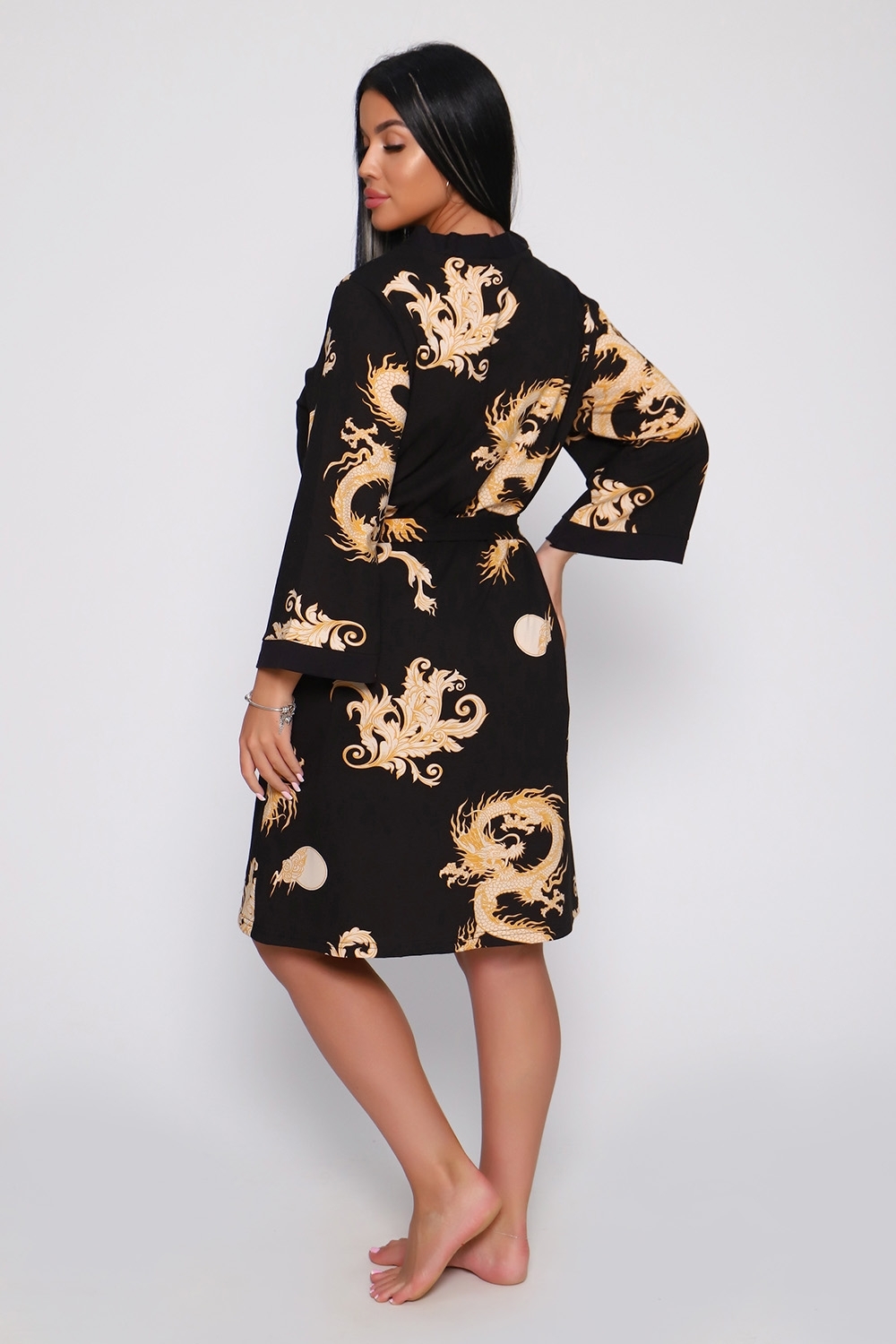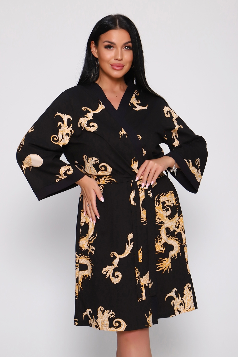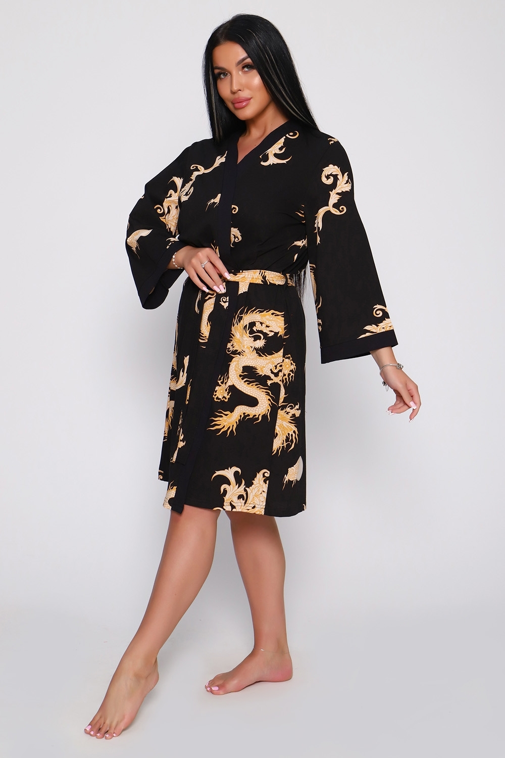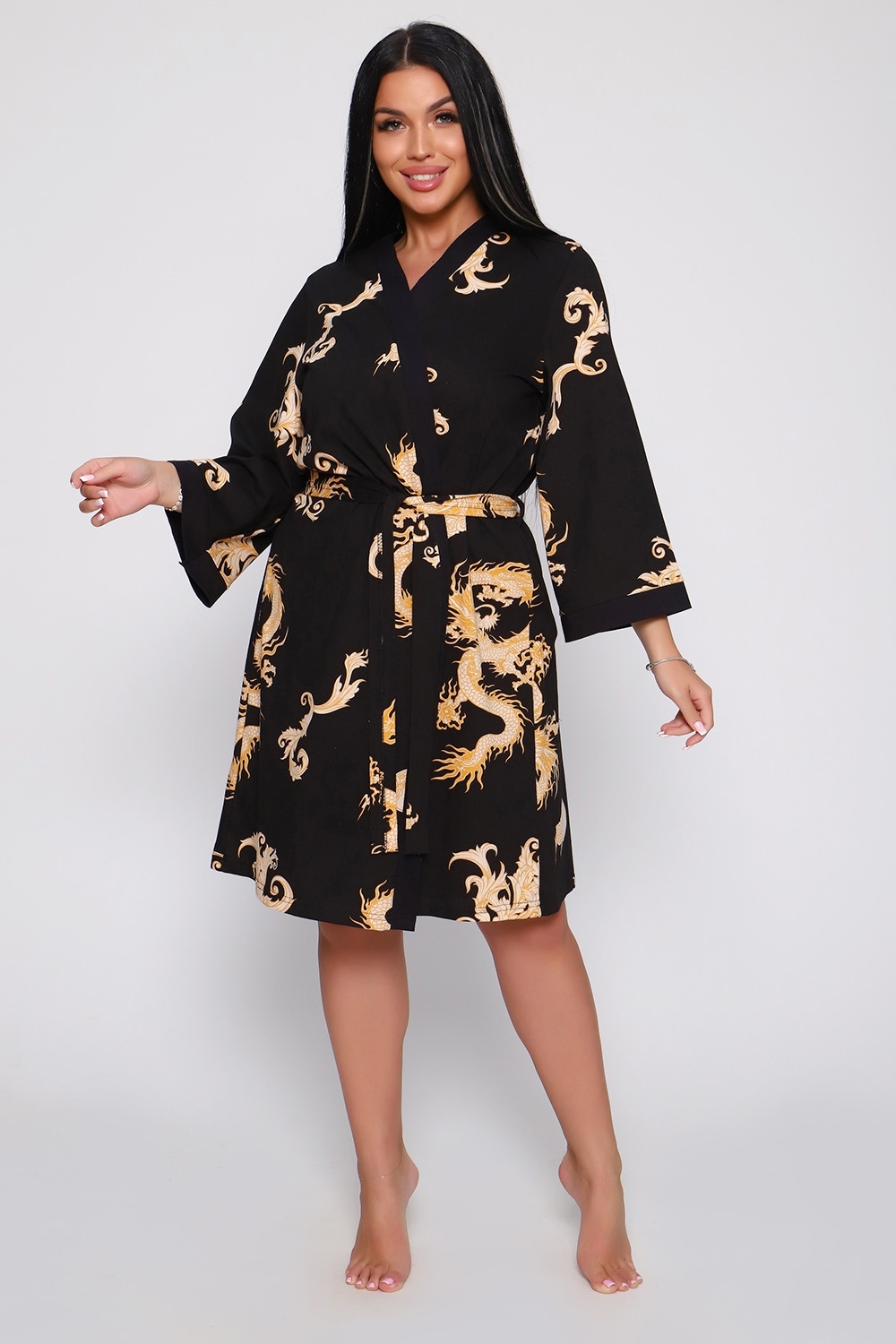 Халат свободного кроя с поясом, рукава 3/4, длина до колена — идеально для комфортных и стильных будней.