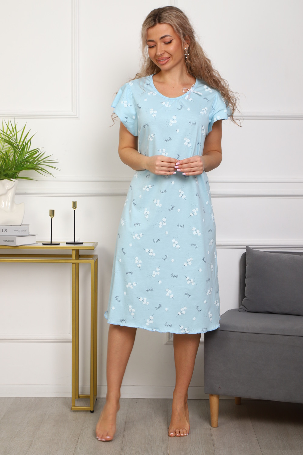 Ночная сорочка из хлопка кулирка пенье. Свободного силуэта, рукав крылышко, движения свободны, легкость и комфорт. Стирка при 30С.
