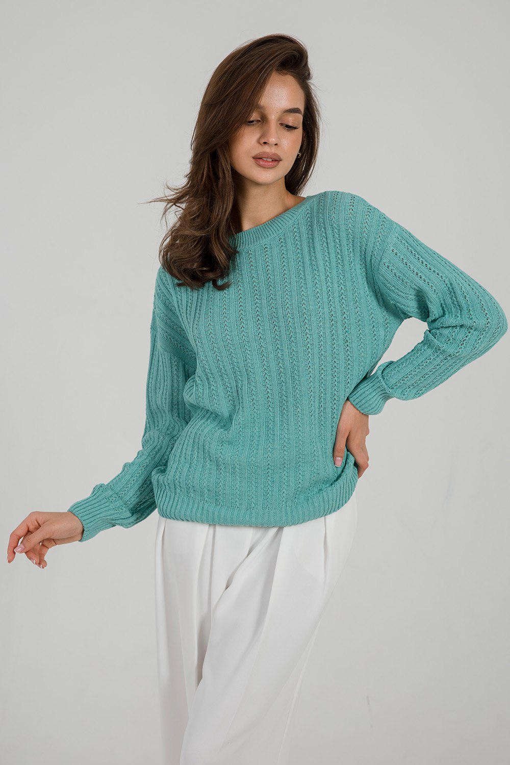 Джемпер женский из премиальной турецкой пряжи станет незаменимой частью вашего гардероба. Универсальный дизайн свитера женского идеально подходит как для офиса, так и для повседневной носки. Длинный рукав и тонкий, но теплый материал обеспечивают комфорт в прохладную погоду. Узор добавляет изделию изысканности, делая его подходящим даже для особых случаев. Создайте свой неповторимый образ с нашим базовым джемпером, в котором сочетаются комфорт и стиль в каждой детали!