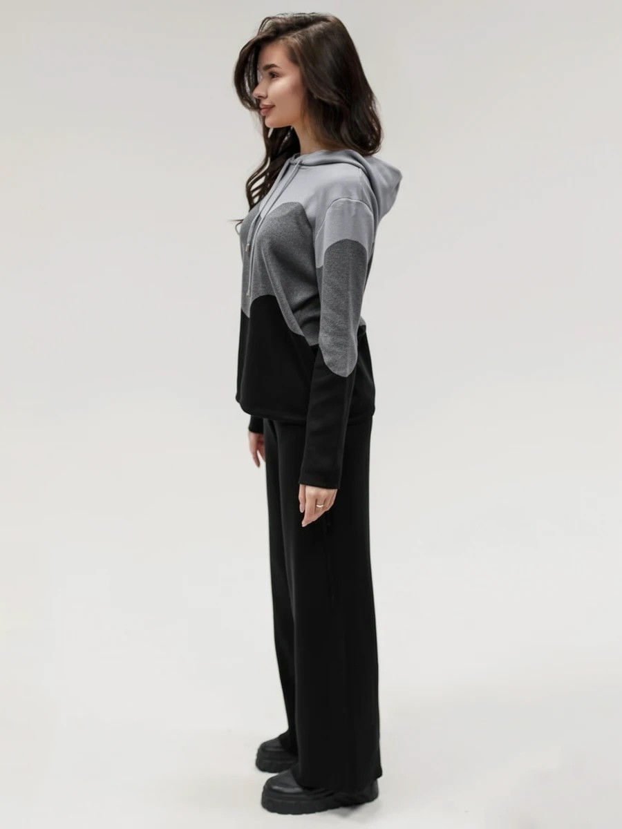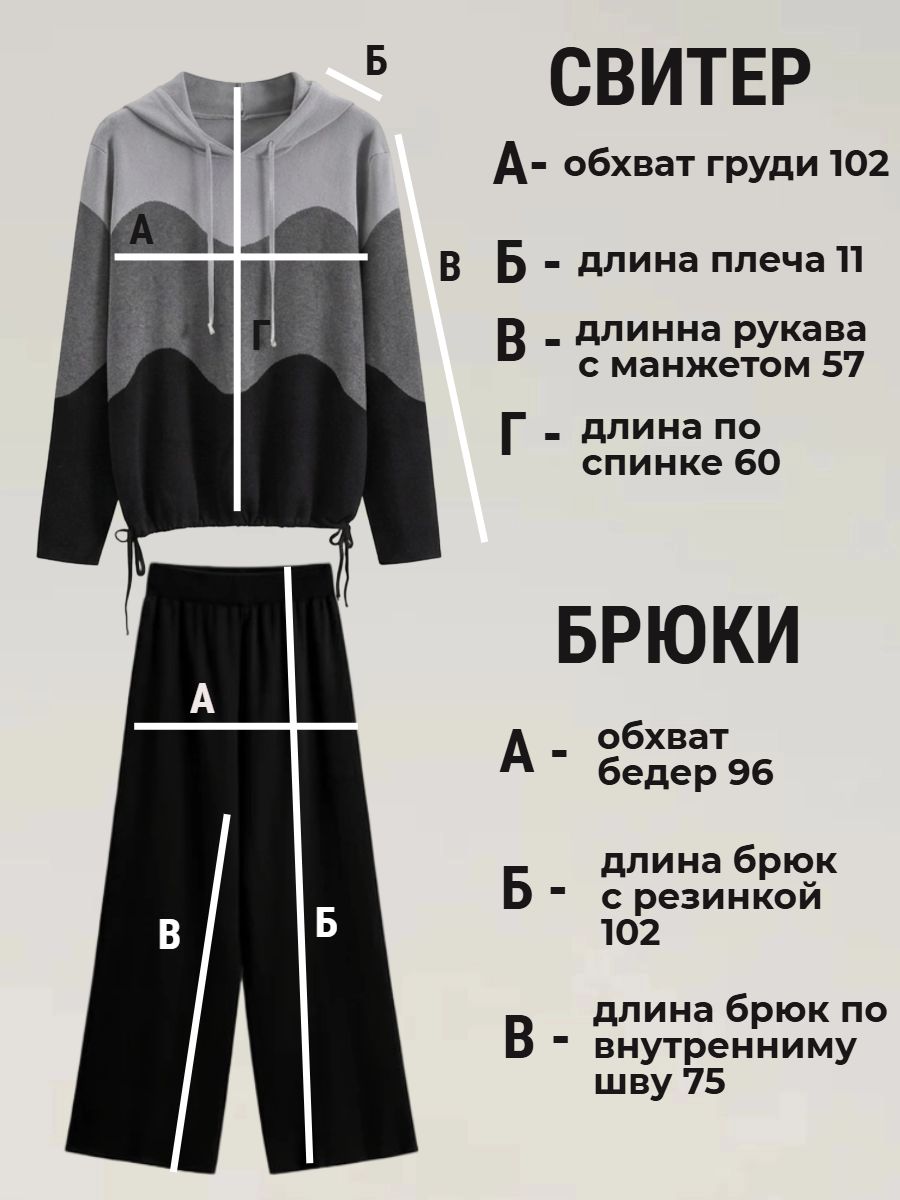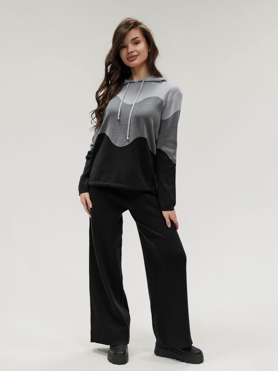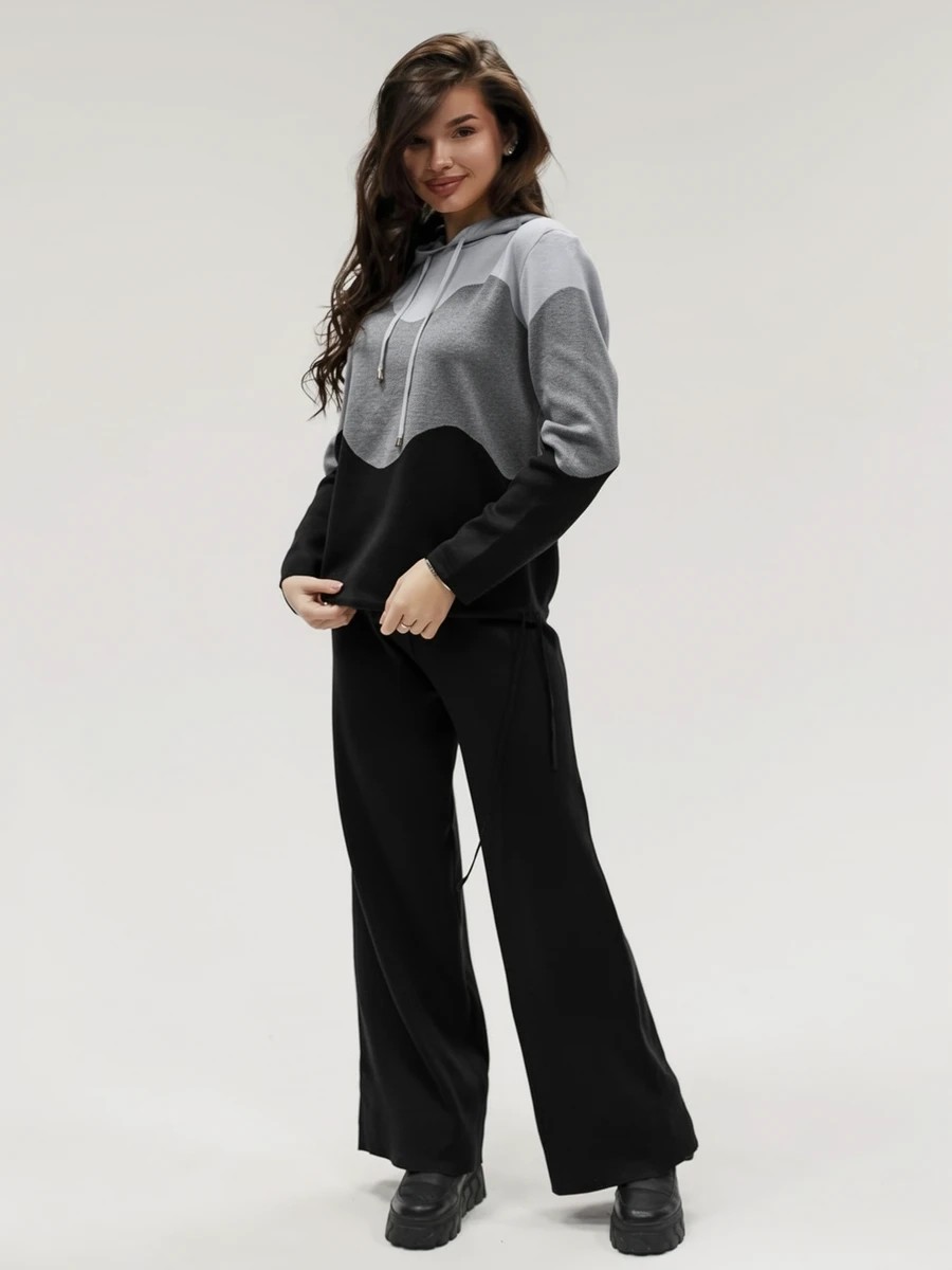 Крой кофты свободный, с капюшоном, кулиской по нижнему краю и эластичными манжетами; крой брюк прямой силуэт, средняя посадка, эластичный пояс. Особенности: кофта с регулируемым капюшоном и кулиской, брюки без карманов. Уход: деликатная стирка при температуре не выше 30∘C, сушка в расправленном виде на горизонтальной поверхности, не отбеливать, при необходимости бережная химчистка. Благодаря эластичному материалу костюм адаптируется под параметры фигуры и комфортно сидит,а лаконичный дизайн делает его универсальным он легко вписывается в разные образы и сочетается с любой обувью, от кроссовок до ботинок. Минималистичный крой и отсутствие лишних деталей подчёркивают сдержанный стиль и делают костюм практичным решением на каждый день