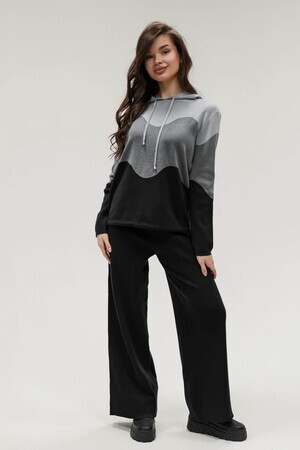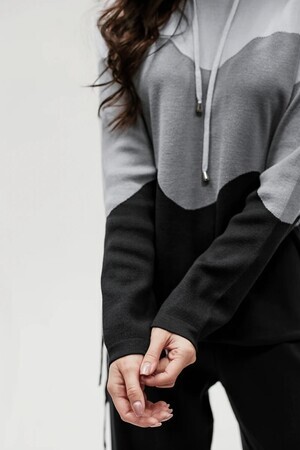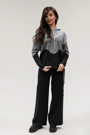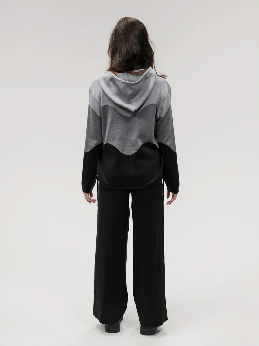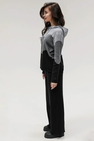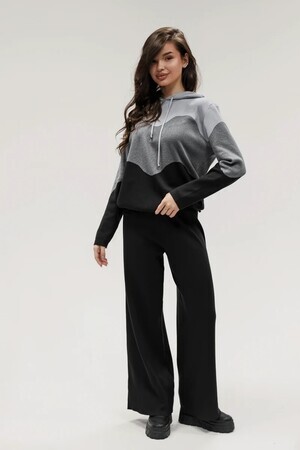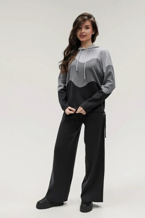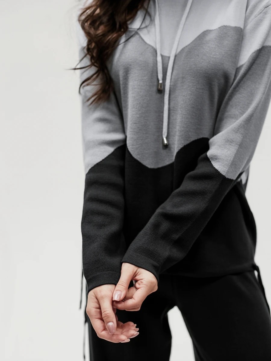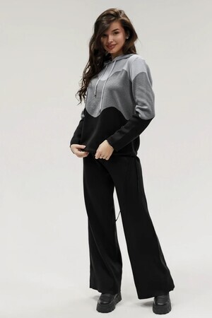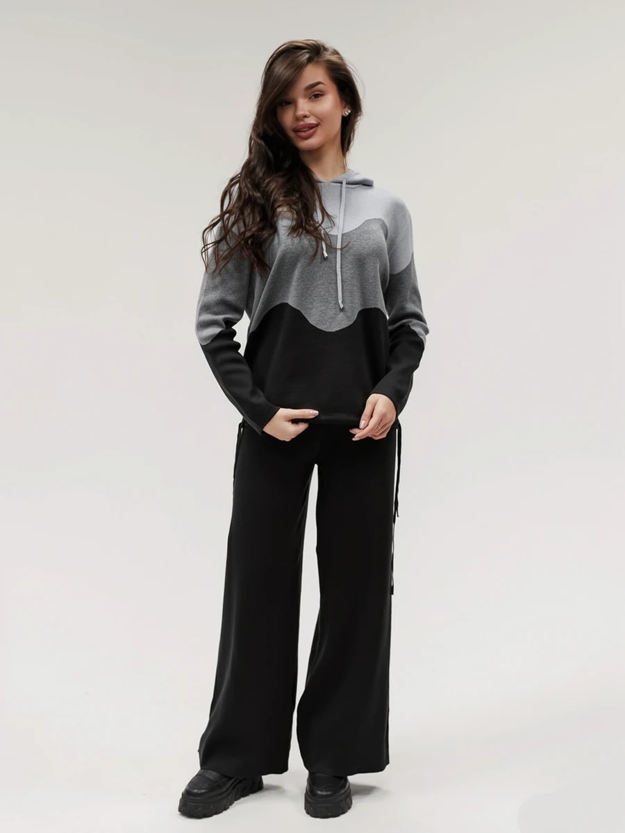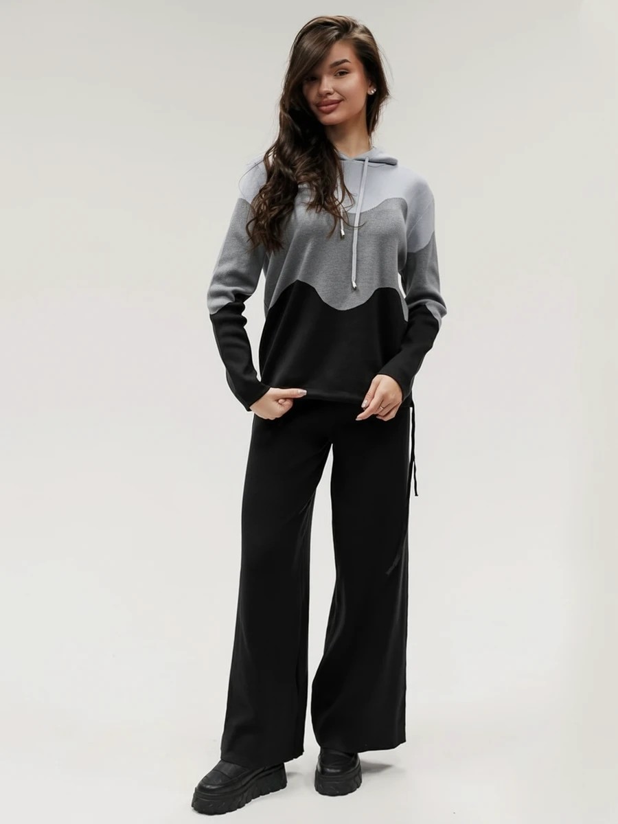 Крой кофты свободный, с капюшоном, кулиской по нижнему краю и эластичными манжетами; крой брюк прямой силуэт, средняя посадка, эластичный пояс. Особенности: кофта с регулируемым капюшоном и кулиской, брюки без карманов. Уход: деликатная стирка при температуре не выше 30∘C, сушка в расправленном виде на горизонтальной поверхности, не отбеливать, при необходимости бережная химчистка. Благодаря эластичному материалу костюм адаптируется под параметры фигуры и комфортно сидит,а лаконичный дизайн делает его универсальным он легко вписывается в разные образы и сочетается с любой обувью, от кроссовок до ботинок. Минималистичный крой и отсутствие лишних деталей подчёркивают сдержанный стиль и делают костюм практичным решением на каждый день