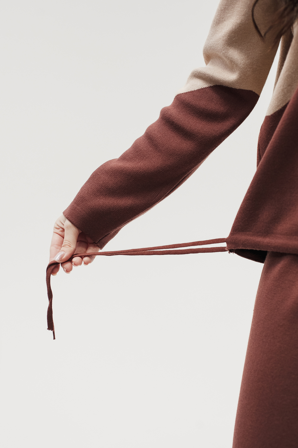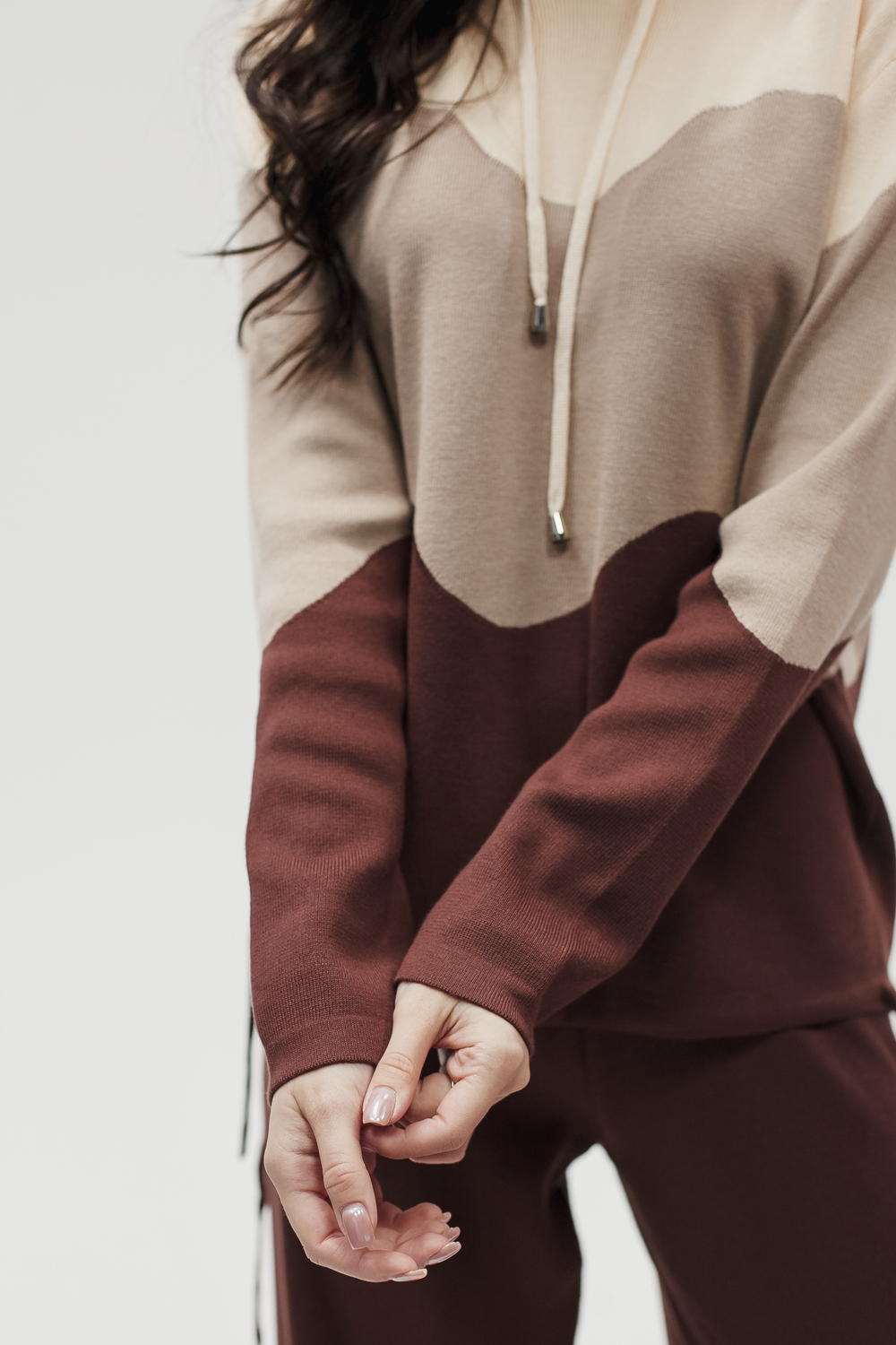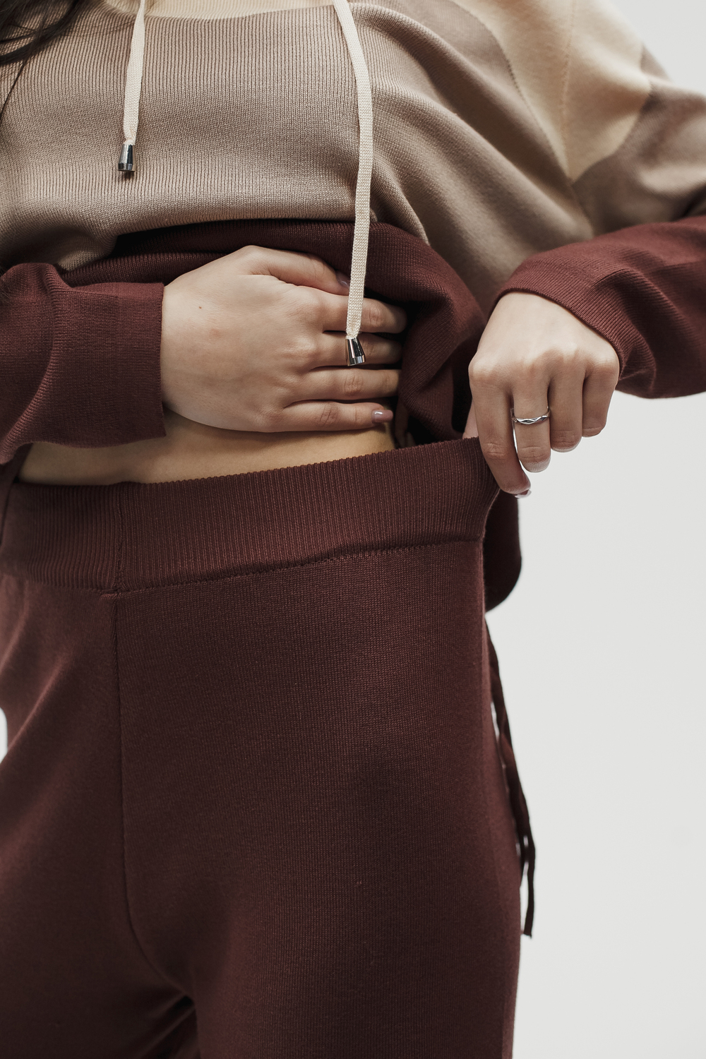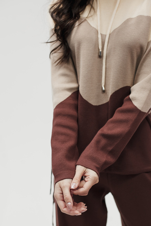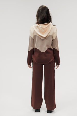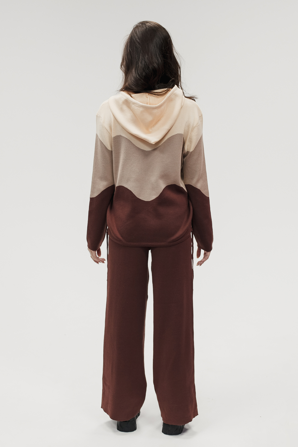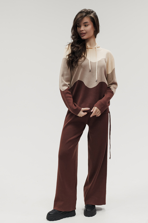Крой кофты свободный, с капюшоном, кулиской по нижнему краю и эластичными манжетами; крой брюк прямой силуэт, средняя посадка, эластичный пояс. Особенности: кофта с регулируемым капюшоном и кулиской, брюки без карманов. Уход: деликатная стирка при температуре не выше 30∘C, сушка в расправленном виде на горизонтальной поверхности, не отбеливать, при необходимости бережная химчистка. Благодаря эластичному материалу костюм адаптируется под параметры фигуры и комфортно сидит,а лаконичный дизайн делает его универсальным он легко вписывается в разные образы и сочетается с любой обувью, от кроссовок до ботинок. Минималистичный крой и отсутствие лишних деталей подчёркивают сдержанный стиль и делают костюм практичным решением на каждый день