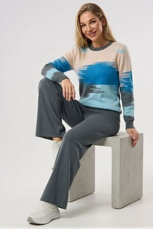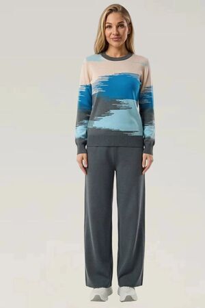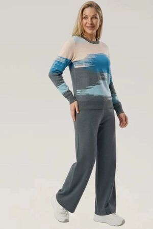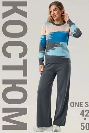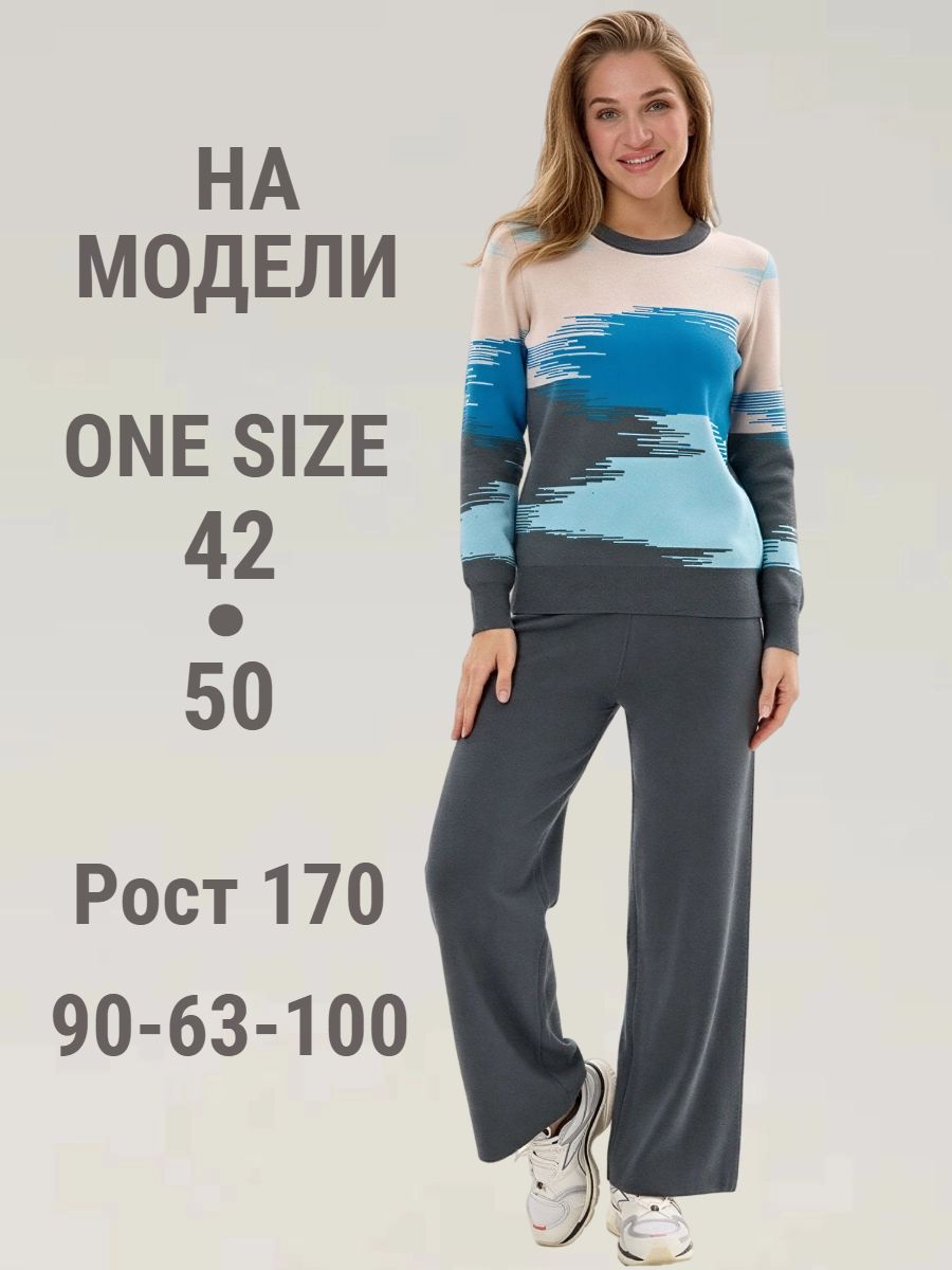 Модель: Вязаный костюм трикотажный с брюками Морской