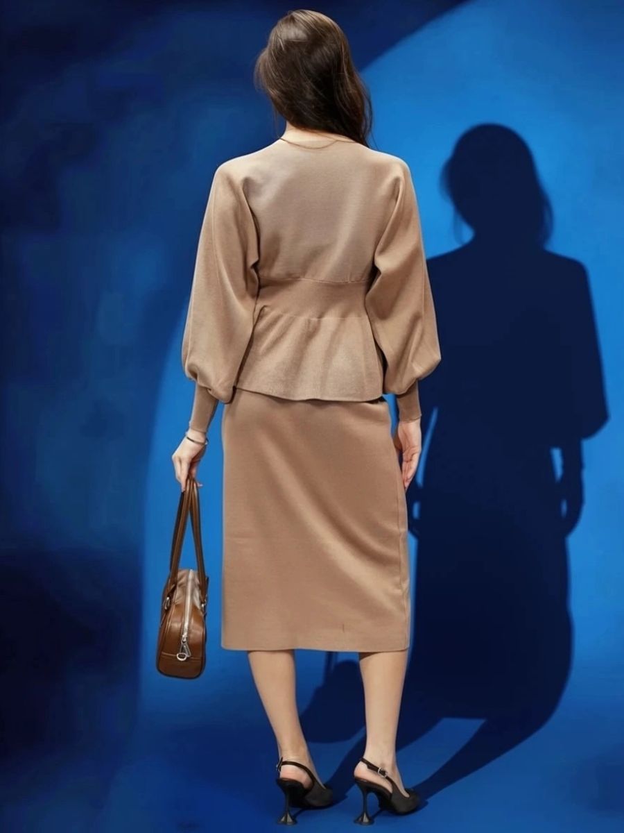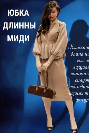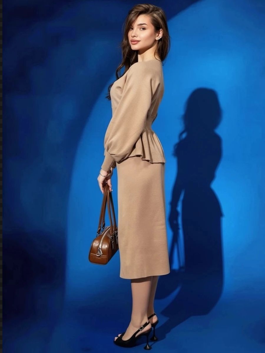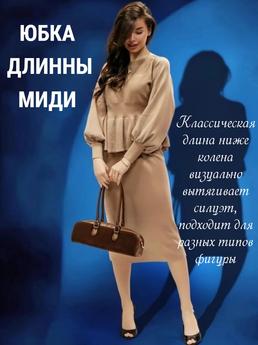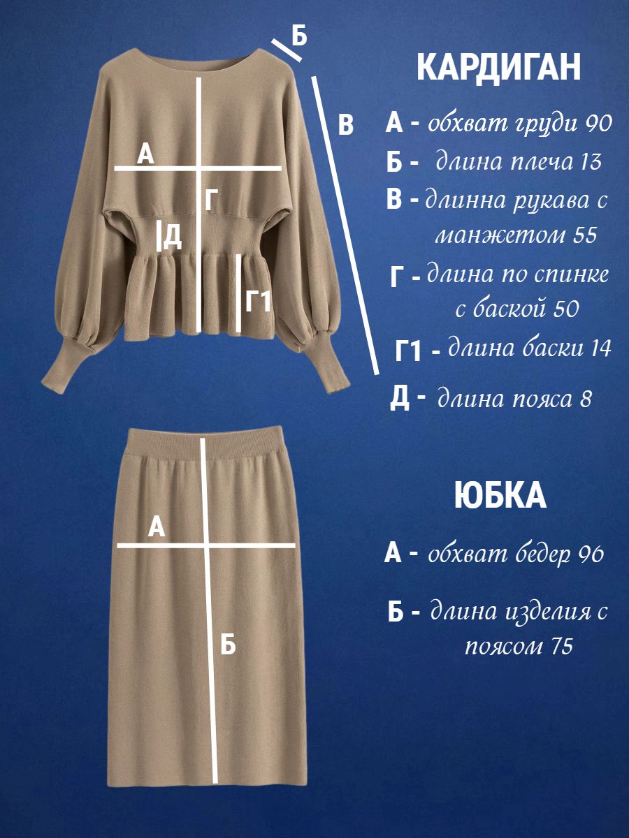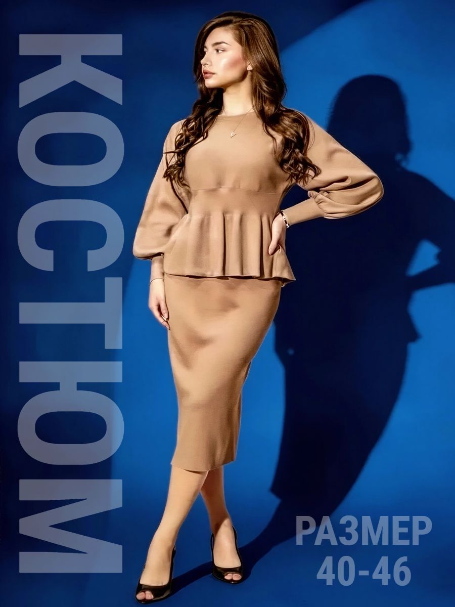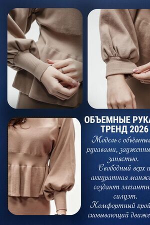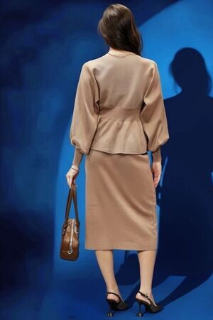 Вязаный трикотажный костюм с юбкой — воплощение женственности и комфорта в одном образе. Модель состоит из элегантного верха с баской, юбки, рукав‑фонарик. Баска изящно подчёркивает линию талии и создаёт утончённый силуэт, визуально корректируя пропорции, а рукав‑фонарик придаёт наряду романтичный и игривый акцент, не сковывая движений. Костюм выполнен из мягкого вязаного трикотажа с оптимальным составом: 30 % хлопок, 40 % вискоза, 30 % полиэстер — такая комбинация обеспечивает приятные тактильные ощущения, хорошую воздухопроницаемость, эластичность для комфортной посадки и устойчивость к образованию катышков. Материал хорошо держит форму, не мнётся и сохраняет аккуратный вид даже при длительной носке, а вязка выглядит стильно и актуально в любой сезон. Модель идеально подходит для межсезонья — осени и весны, а в сочетании с плотными колготками костюм будет уместен и в зимний период. Размеры представлены в диапазоне 40–46, что позволяет подобрать идеальный вариант для разных типов фигуры: крой продуман так, чтобы подчеркнуть достоинства и обеспечить свободу движений. Уход за изделием не потребует особых усилий: рекомендуется деликатная стирка при температуре не выше 30∘C, сушка в расправленном виде вдали от нагревательных приборов, запрещено отбеливать, при необходимости допускается бережная химчистка. Костюм легко вписать в разные образы: с балетками или лоферами получится уютный повседневный лук, с каблуками — элегантный наряд для встречи с друзьями или свидания, а сдержанные аксессуары помогут адаптировать модель даже к офисному стилю с нестрогим дресс‑кодом.