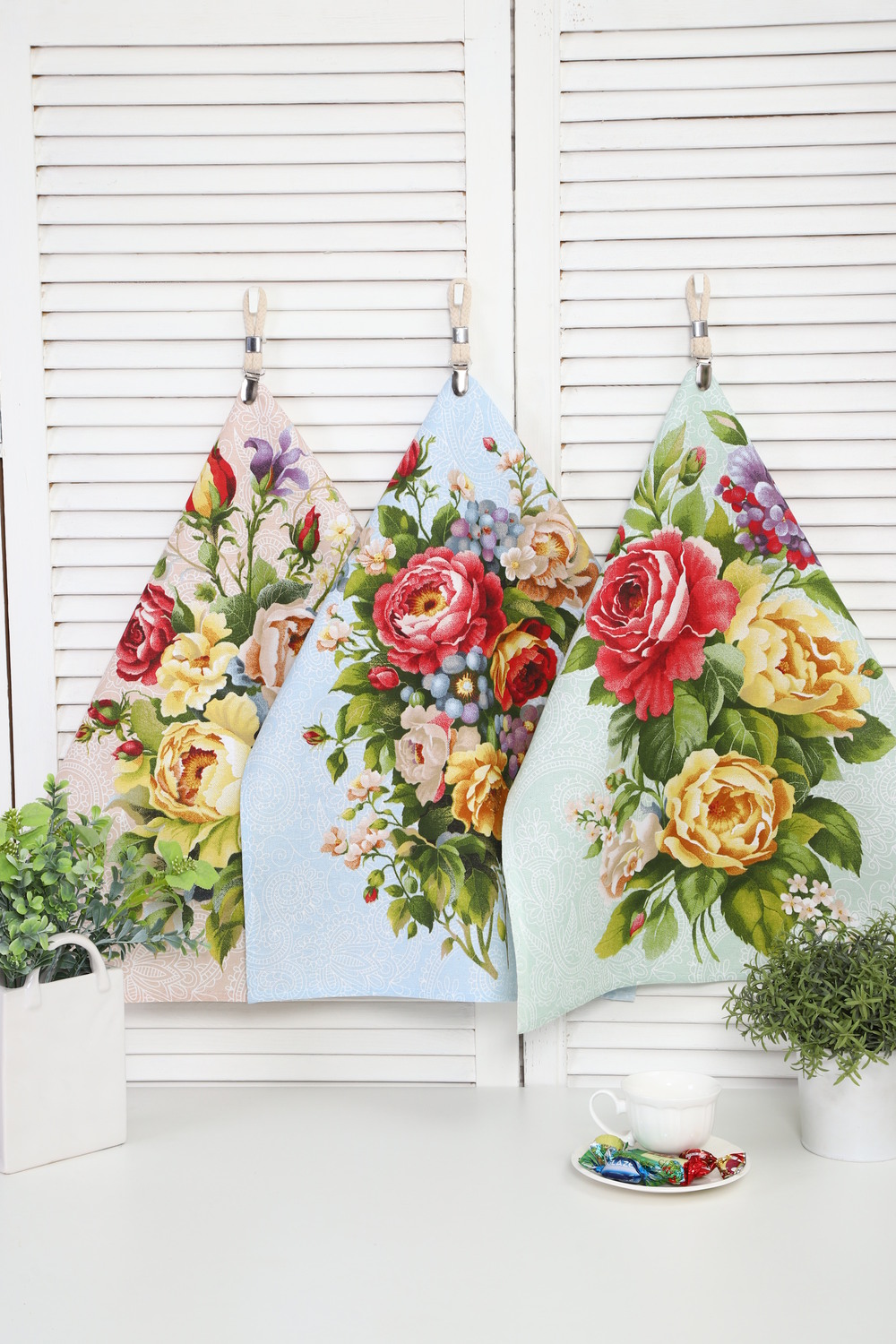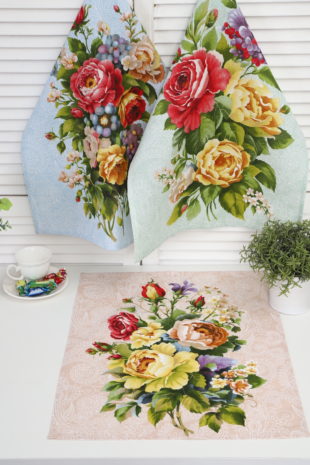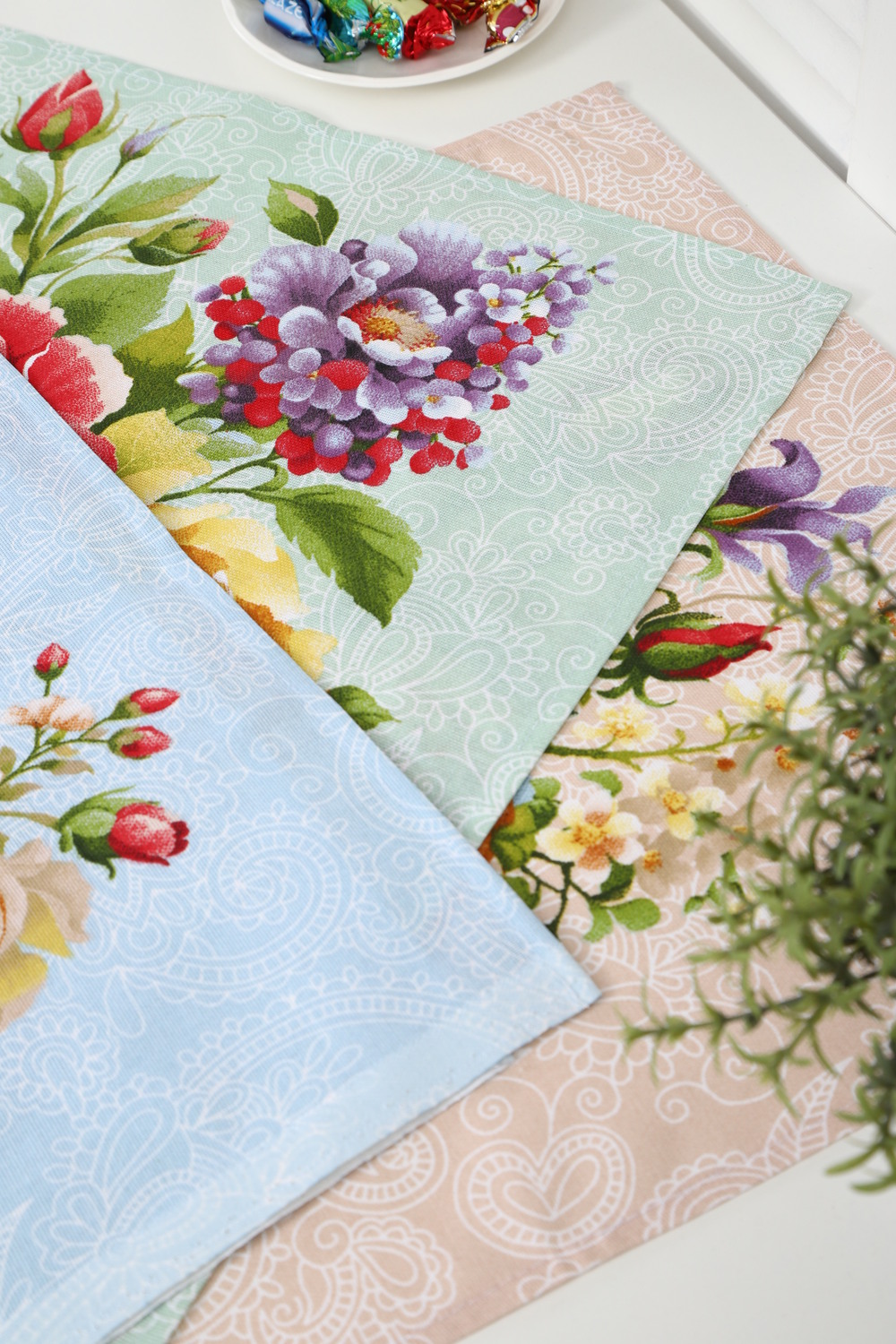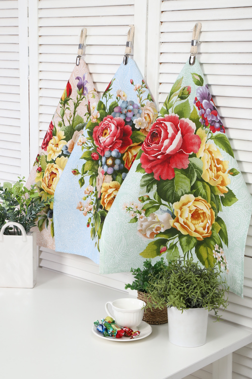 В наборе: 3 полотенца с гармоничными цветочными принтами