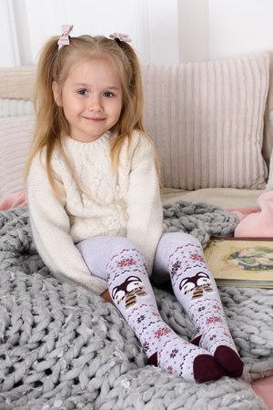 Плюшевые детские колготки с люрексом. На изделии вывязаны скандинавские узоры и лиса