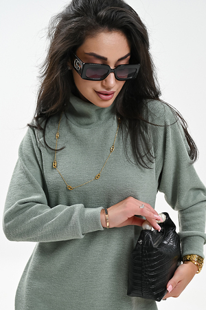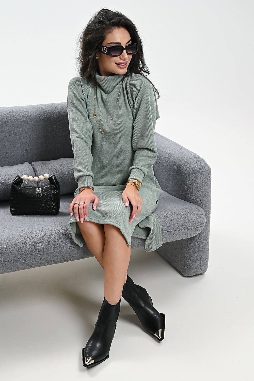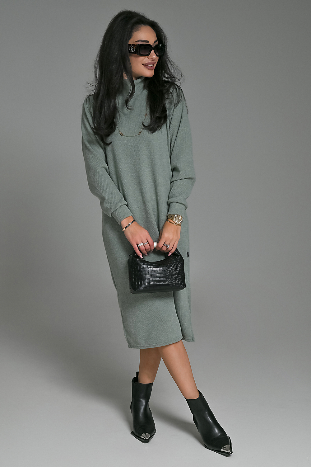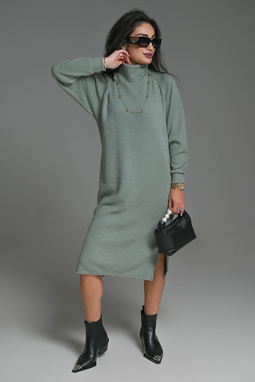 Это стильное вязаное платье черного, бежевого и белого цвета станет незаменимой вещью в вашем осенне-зимнем гардеробе. Модель прямого покроя с длинными рукавами и воротником-стойкой прекрасно подойдет для повседневной носки. Разрез на юбке добавляет образу изысканности и женственности. Платье выполнено из мягкого и приятного к телу материала с добавлением спандекса, что обеспечивает комфорт и свободу движений. Его универсальный черный цвет легко сочетается с различными аксессуарами и обувью.