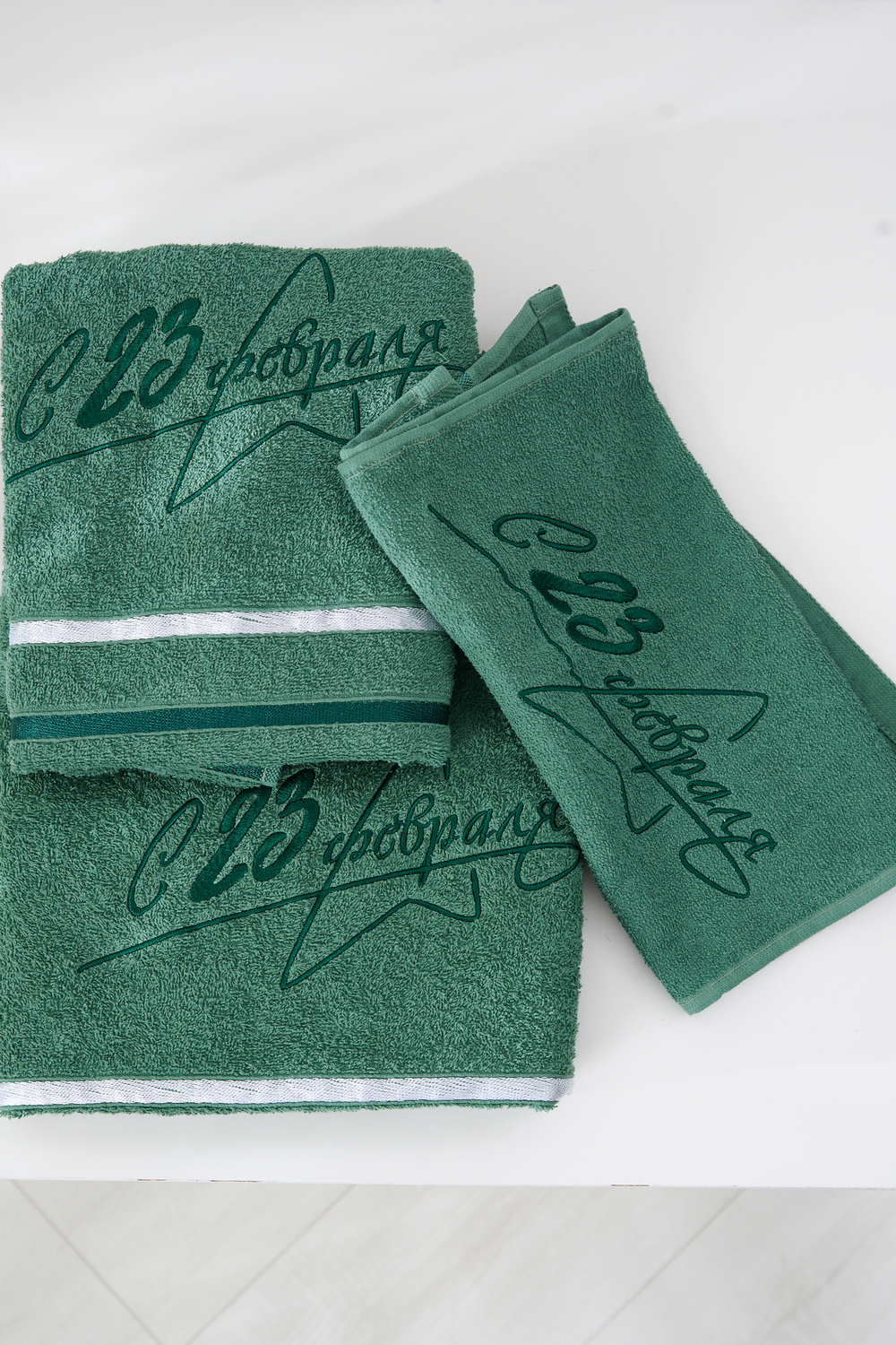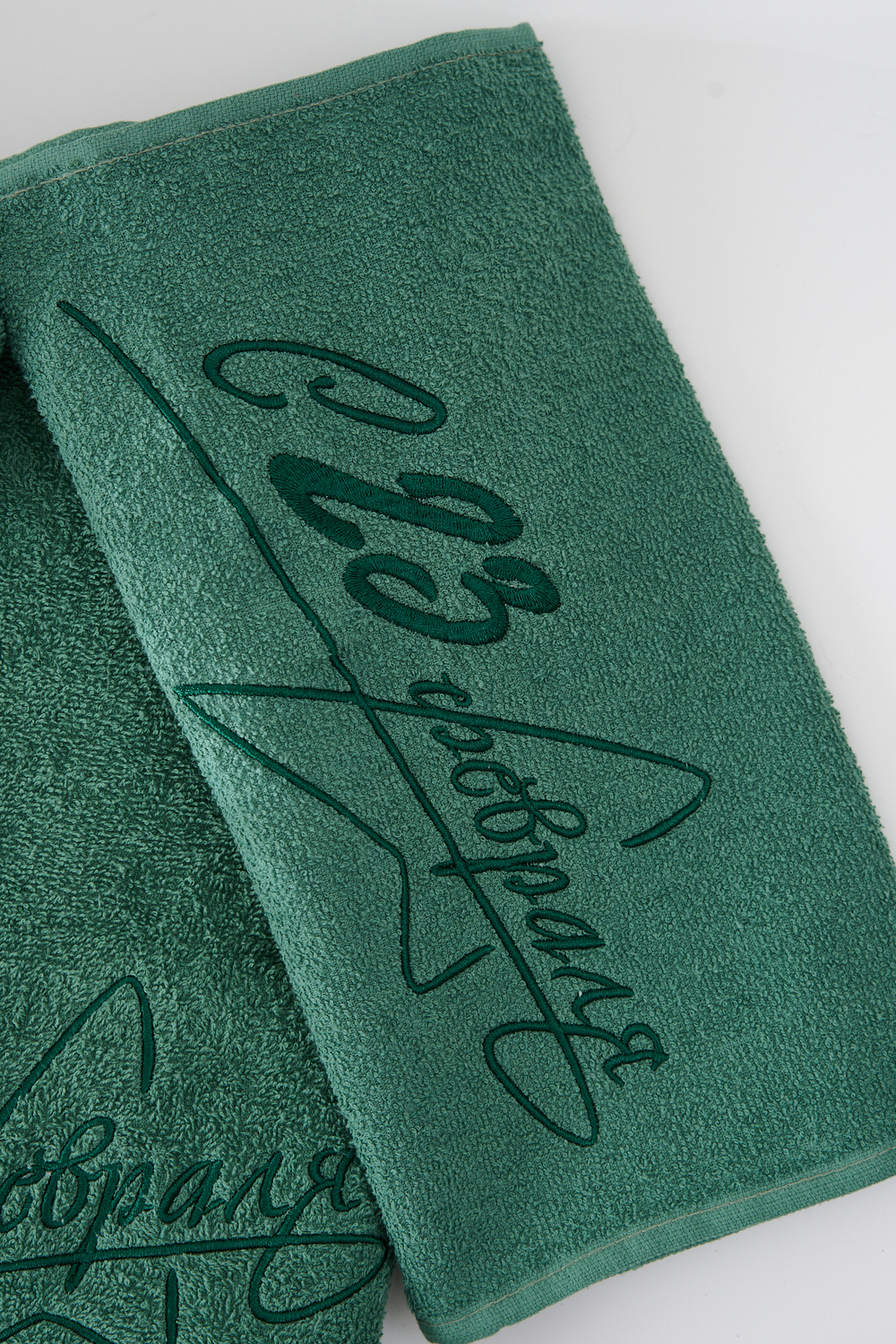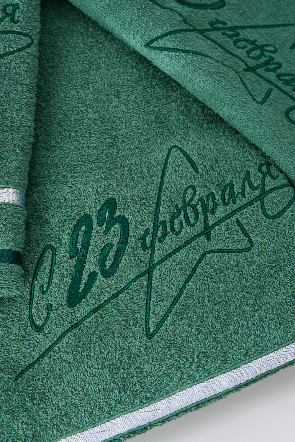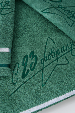 -Подарочное махровое полотенце “С 23 февраля” — это отличный сувенир для настоящих мужчин в честь Дня защитника Отечества! Глубокий зелёный цвет, тематическая вышивка со стильной надписью и звездой делают это полотенце ярким и значимым подарком. Оно изготовлено из прочного и мягкого хлопка, прекрасно впитывает влагу и быстро сохнет, обеспечивая комфорт после душа или бани. Такое полотенце подчеркнёт внимание, заботу и уважение — идеальный выбор для коллег, друзей и близких мужчин!