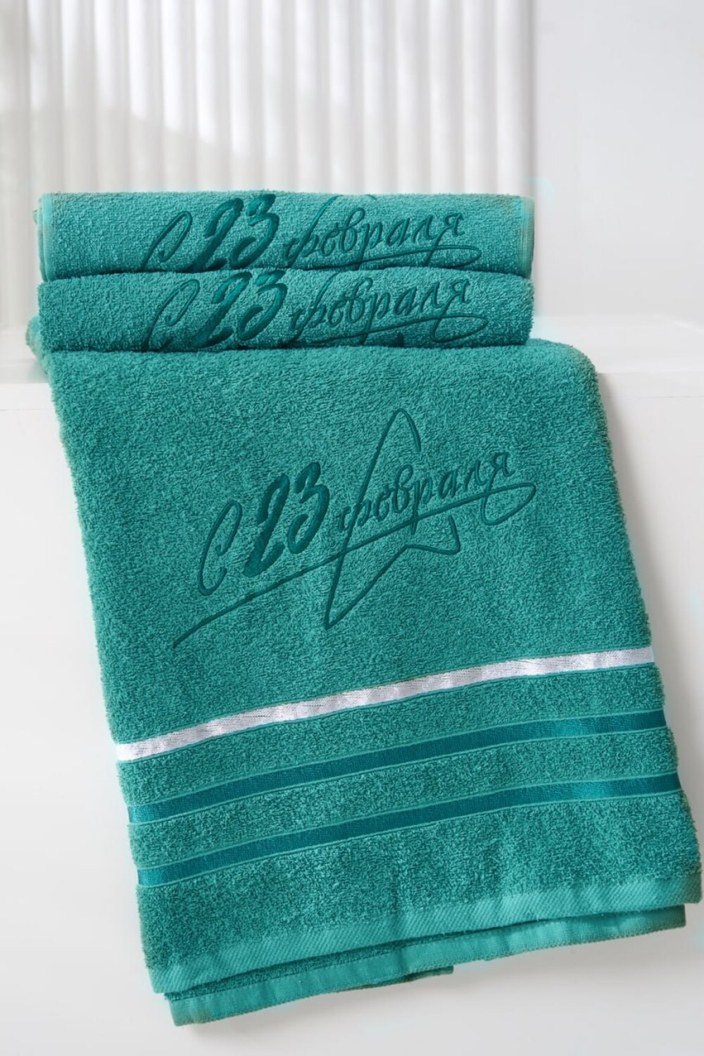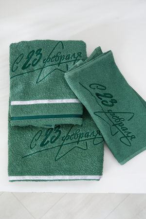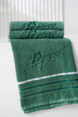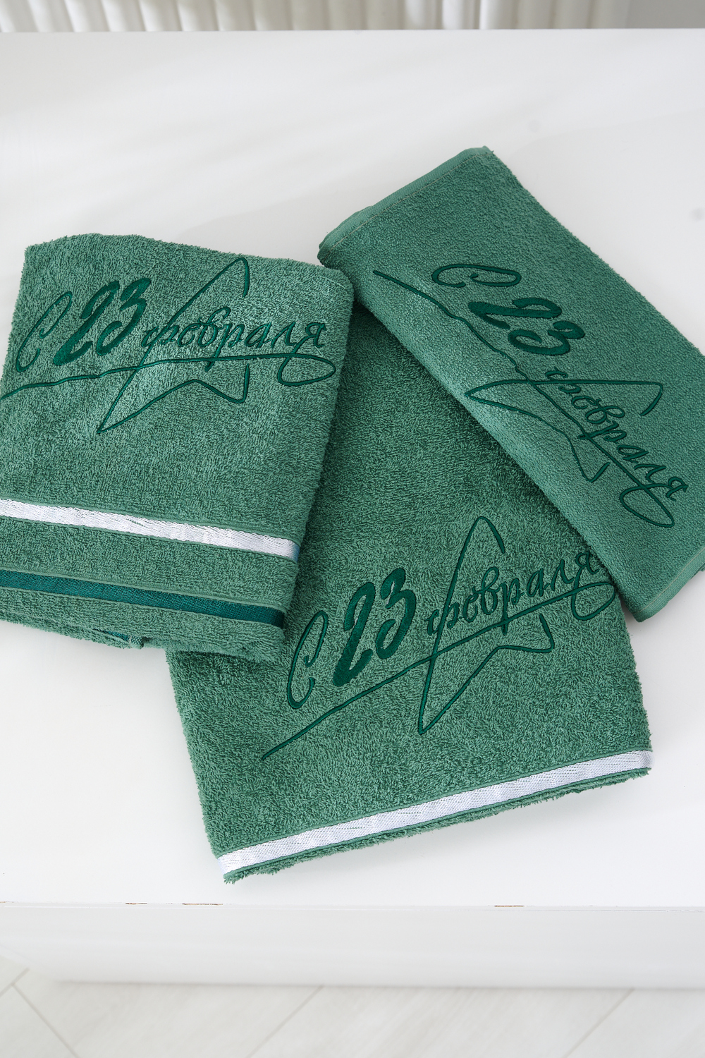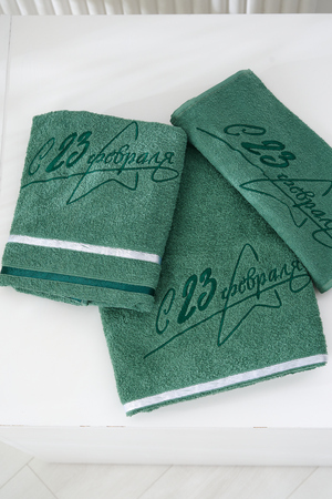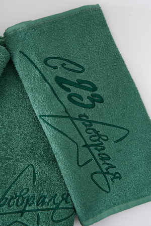 -Подарочное махровое полотенце “С 23 февраля” — это отличный сувенир для настоящих мужчин в честь Дня защитника Отечества! Глубокий зелёный цвет, тематическая вышивка со стильной надписью и звездой делают это полотенце ярким и значимым подарком. Оно изготовлено из прочного и мягкого хлопка, прекрасно впитывает влагу и быстро сохнет, обеспечивая комфорт после душа или бани. Такое полотенце подчеркнёт внимание, заботу и уважение — идеальный выбор для коллег, друзей и близких мужчин!