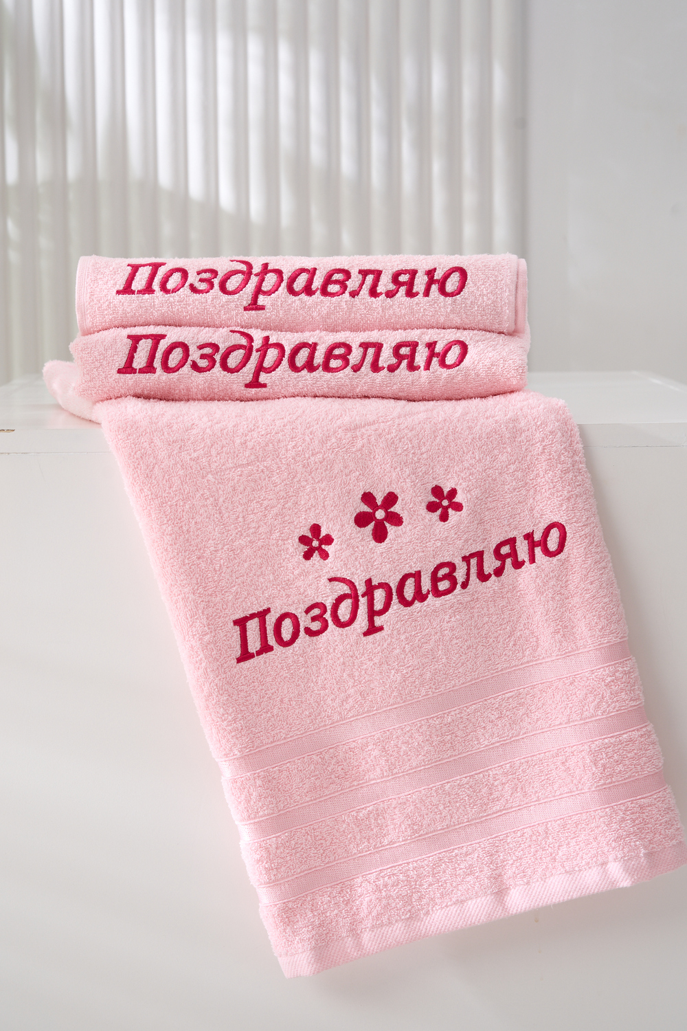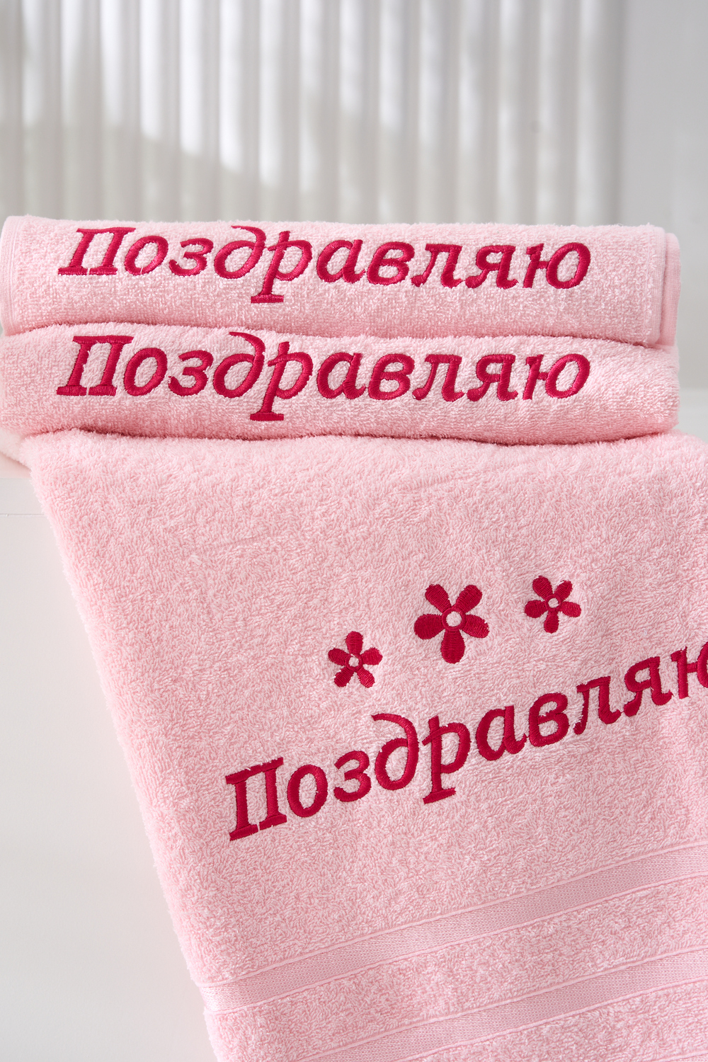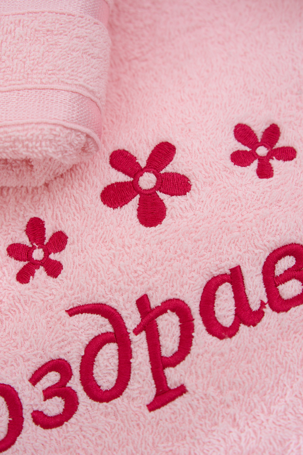 Подарочное махровое полотенце “Поздравляю” — это идеальный способ порадовать близких и выразить самые тёплые пожелания! Нежный розовый цвет, стильная вышивка цветов и яркая поздравительная надпись делают это полотенце не только практичным, но и оригинальным подарком для любого праздника. Мягкая хлопковая ткань отлично впитывает влагу, дарит комфорт и уют после водных процедур. Прекрасно подойдёт для подарка на день рождения, 8 Марта или любой другой приятный повод!