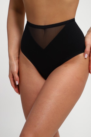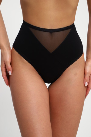 Трусики женские с высокой посадкой, выполнены из приятной и мягкой ткани с вставочкой из трикотажной сеточки. Смотрятся, очень женственно и изящно. Комфортные и удобные. Резиночки мягкие.