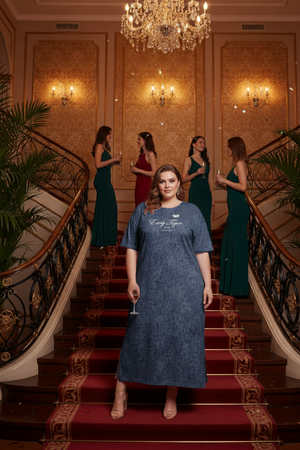 Платье - футболка для дома больших размеров из 100% хлопка. Приятная к телу дышащая ткань из которой сшиты наши туники в форме удлиненной футболки свободного кроя - идеальная версия домашней одежды. Приятный принт , не потускнеет от многократных стирок. Платье синего цвета выглядит наиболее выигрышно, а рисунок на нем смотрится особенно ярко и насыщенно. На средний рост длина платья будет ниже колена, на высоких девушках оно сядет чуть короче.