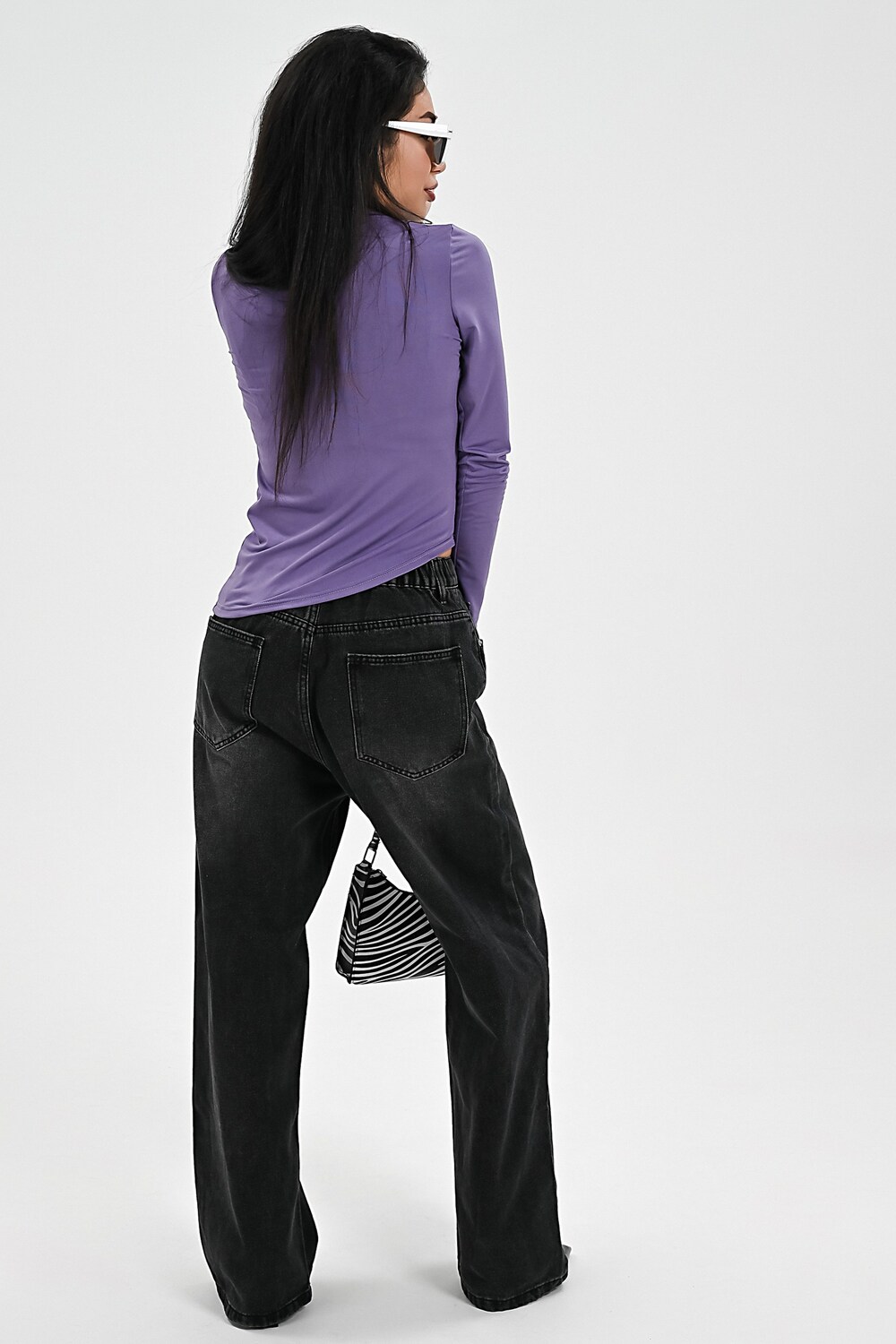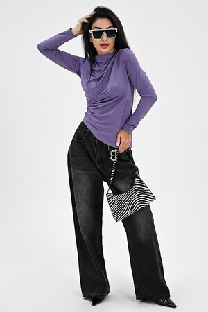 Лонгслив с драпировкой полуприталенный , стрейтч (ткань тянется).