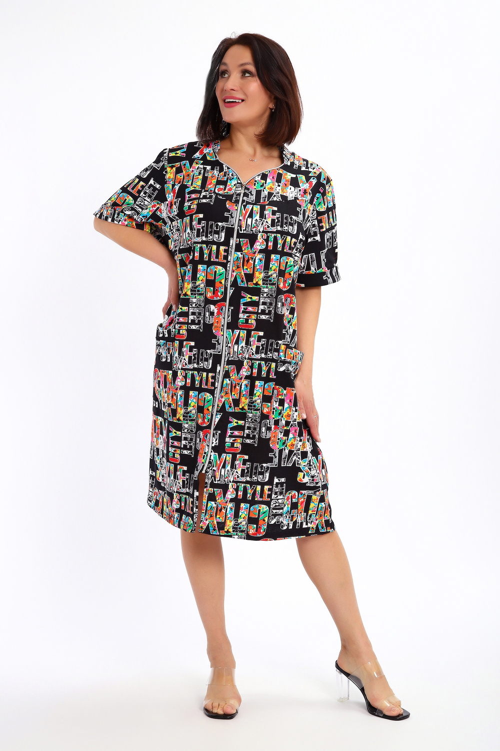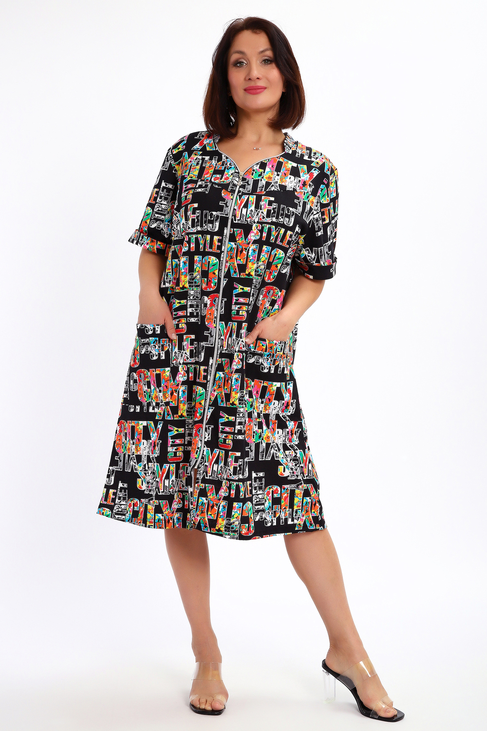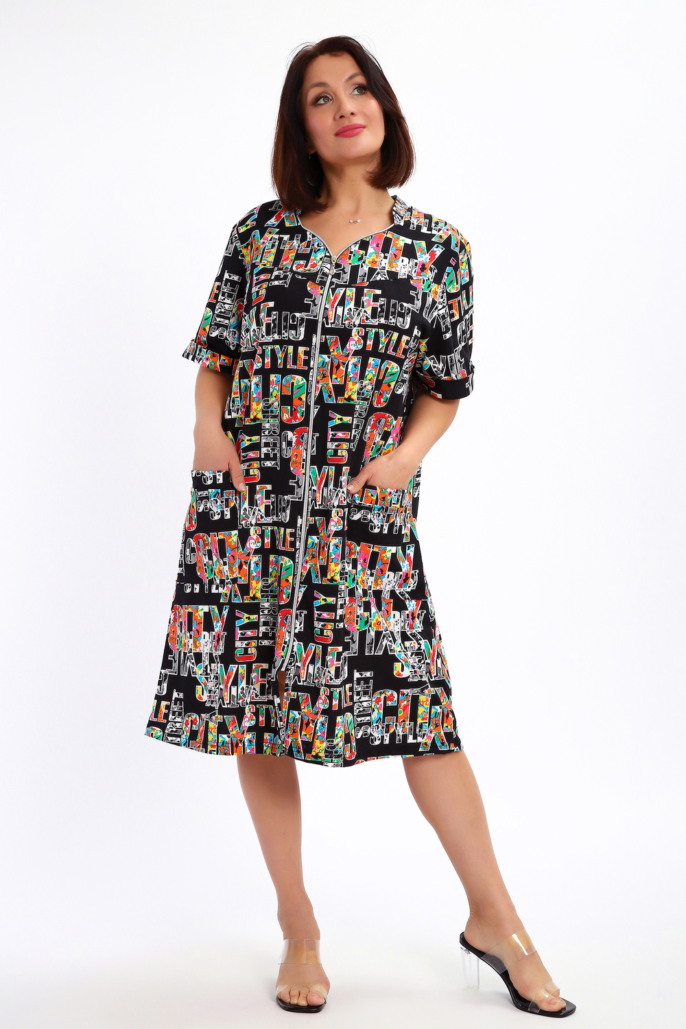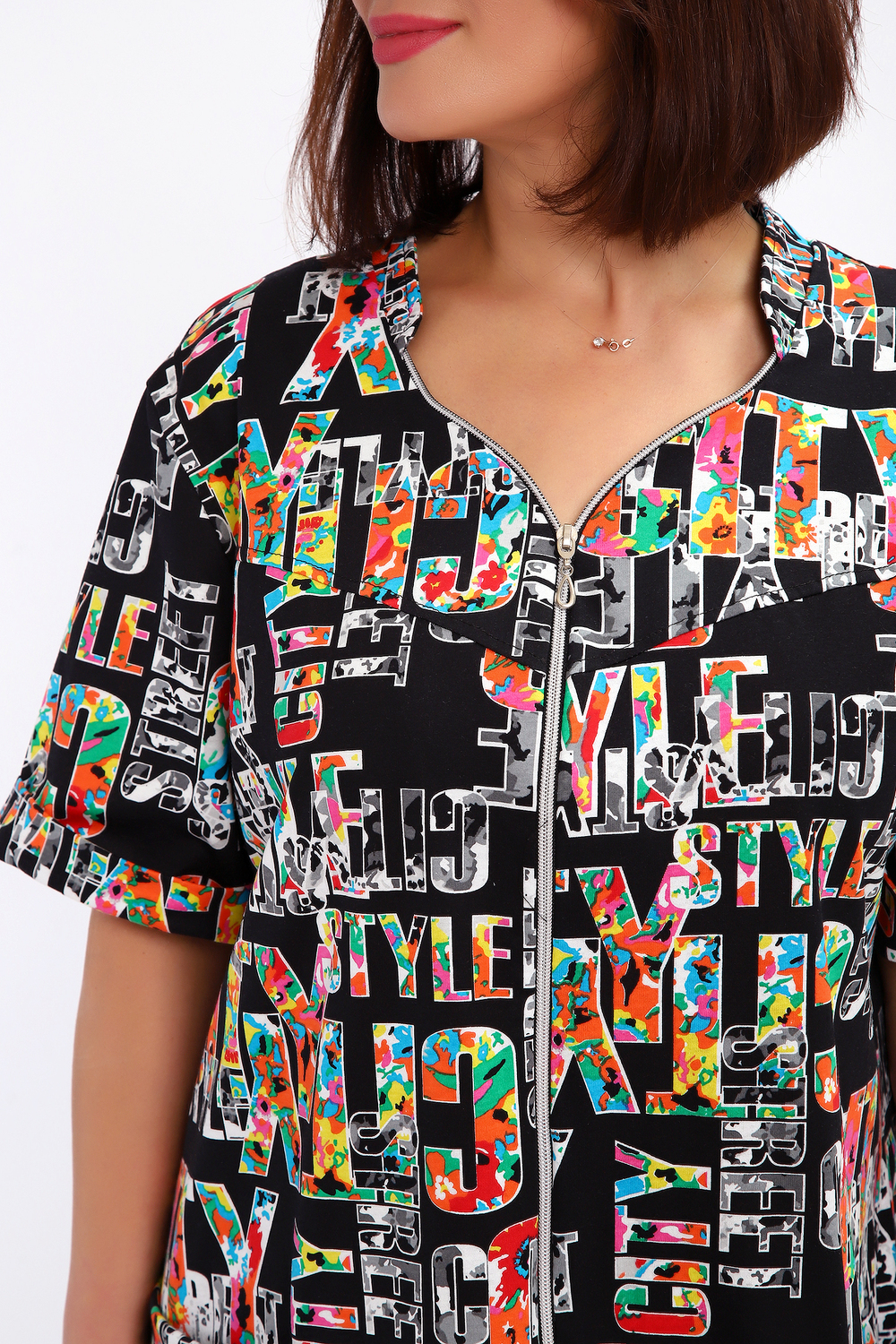 Халат женский на молнии с коротким рукавом. Данная модель выполнена из трикотажного полотна кулирка (хлопок 100%). Горловина фигурная со стойкой, на полочке по бокам присутствуют накладные карманы. На рукавах пришиты манжеты. Отличная модель порадует вас своей изящностью и комфортом.