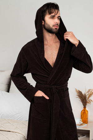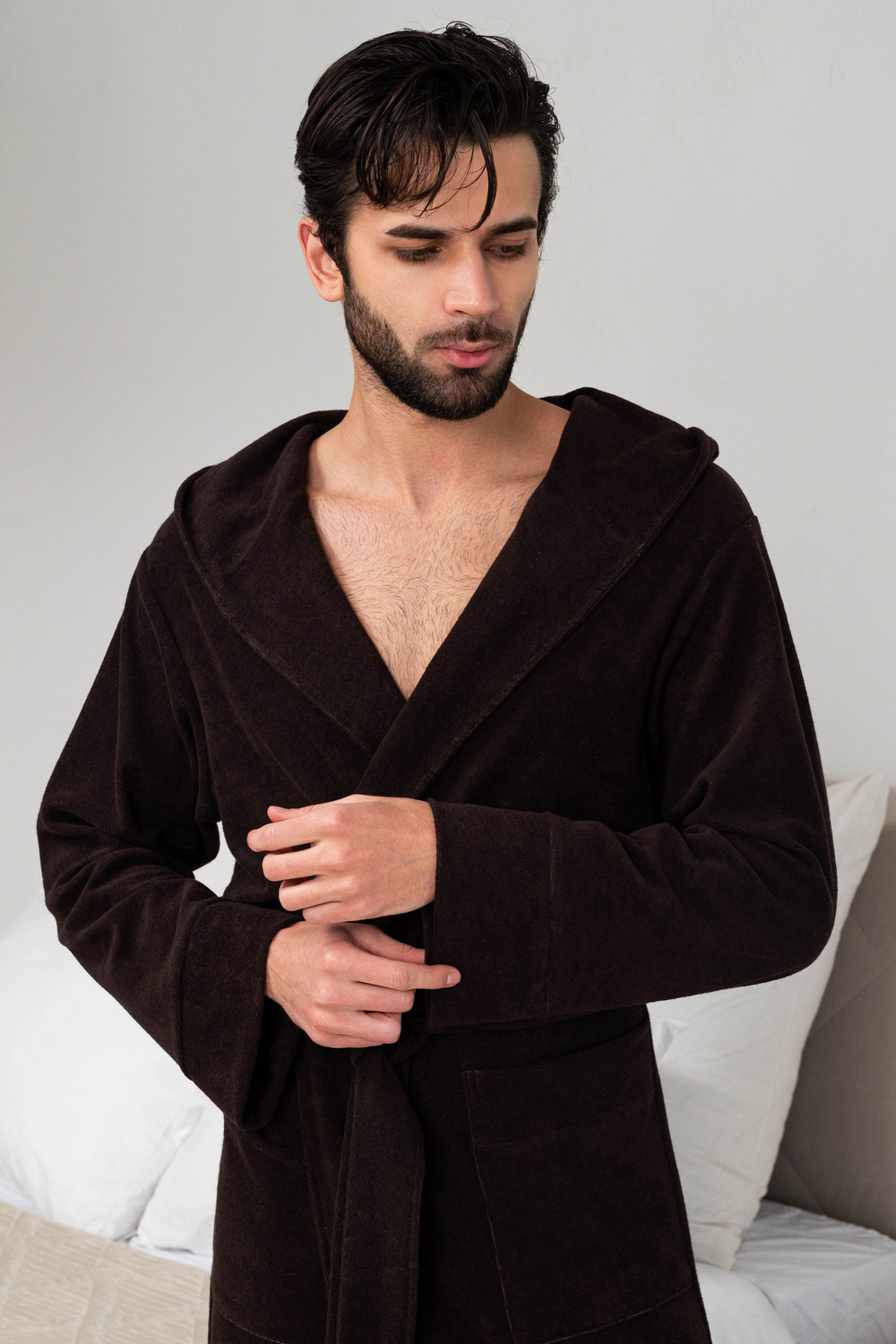 Халат мужской из облегченной махры (плотность 220грамм). Халат на запах с поясом. Карманы накладные, рукав манжет, шлевка 2 уровня.