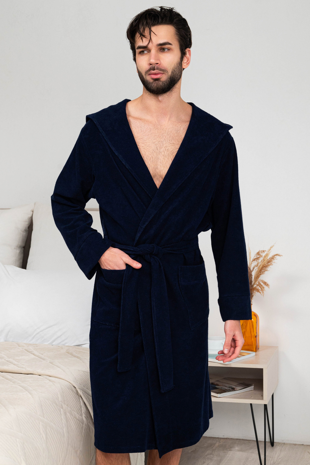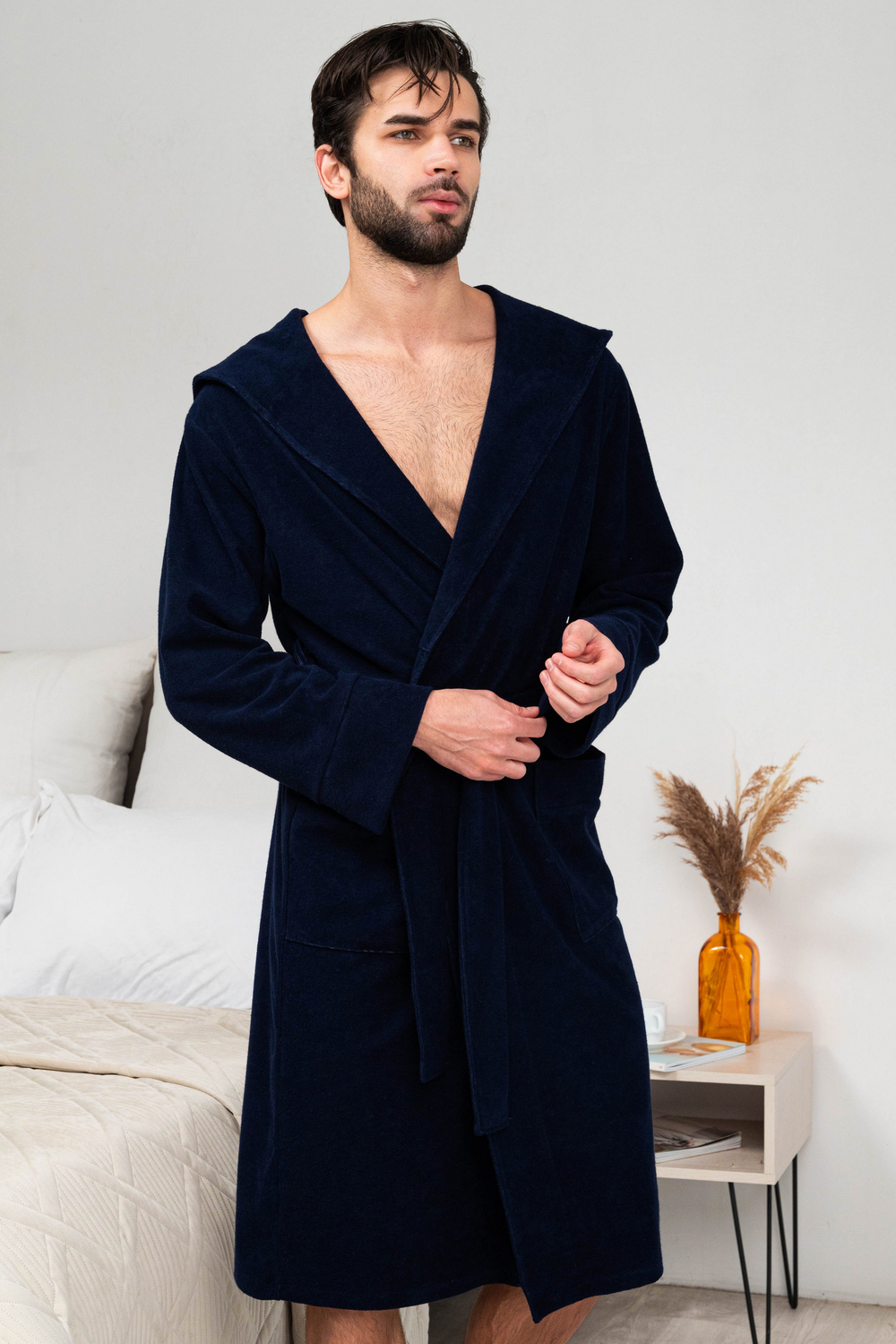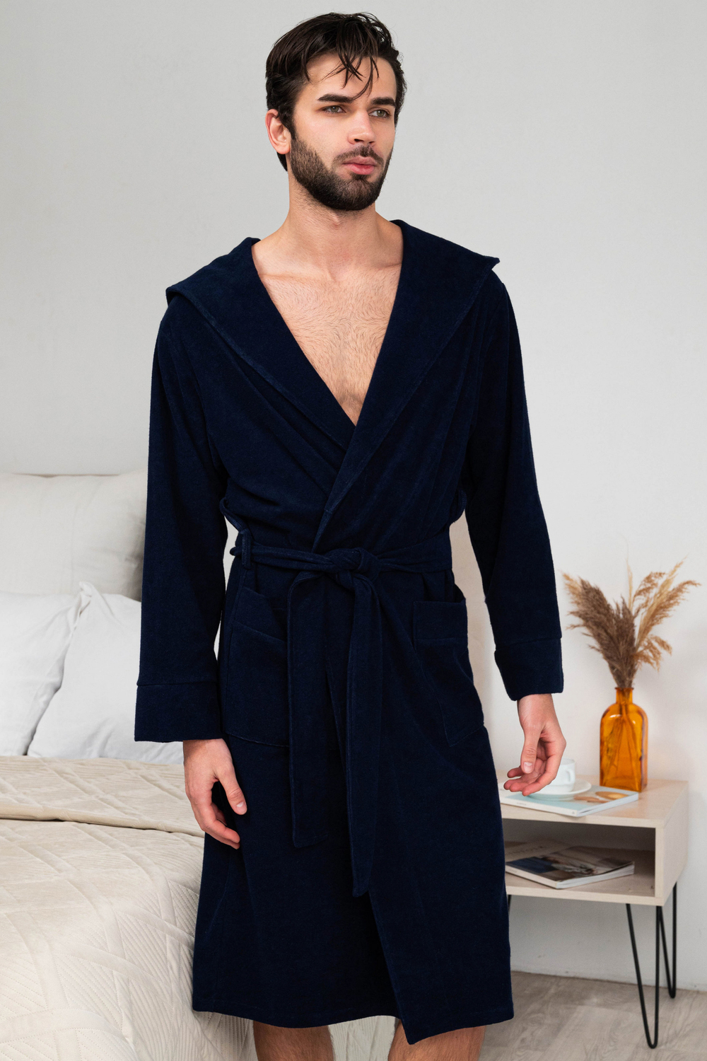 Халат мужской из облегченной махры (плотность 220грамм). Халат на запах с поясом. Карманы накладные, рукав манжет, шлевка 2 уровня.