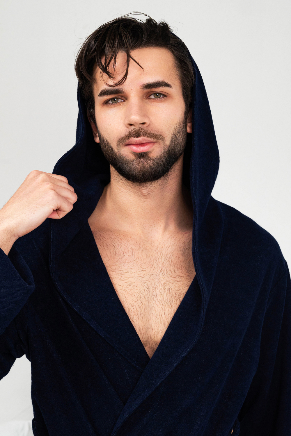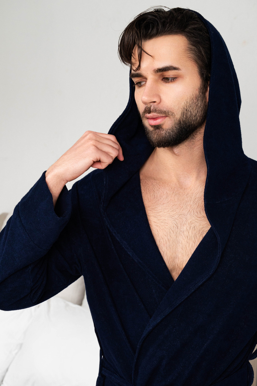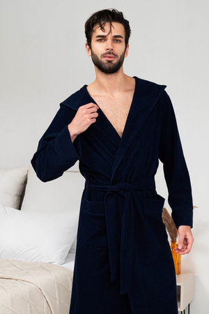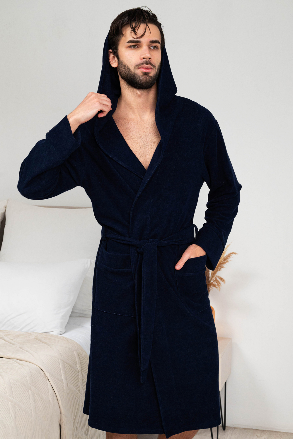 Халат мужской из облегченной махры (плотность 220грамм). Халат на запах с поясом. Карманы накладные, рукав манжет, шлевка 2 уровня.