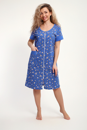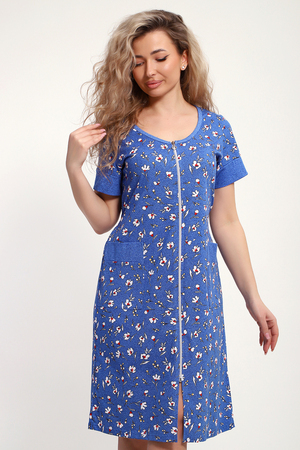 Женский халатик на молнии – самая распространенная и универсальная одежда для домашнего отдыха и хозяйственных хлопот. После трудного рабочего дня, приходя домой, первым делом хочется переодеться. И данная модель это идеальный вариант среди представительниц прекрасной половины человечества. Модель выполнена из 100% хлопчатобумажной ткани. Халат так же дополняет яркая отделка по рукавам и карманам. А пояс на линии талии поможет легко смоделировать женственный силуэт и при этом Вы будете чувствовать себя легко и непринуждённо. Данная модель прекрасно подойдёт для дома, дачи и отдыха, создавая по-настоящему яркий образ и хорошее настроение! Рост модели на фото 165см.